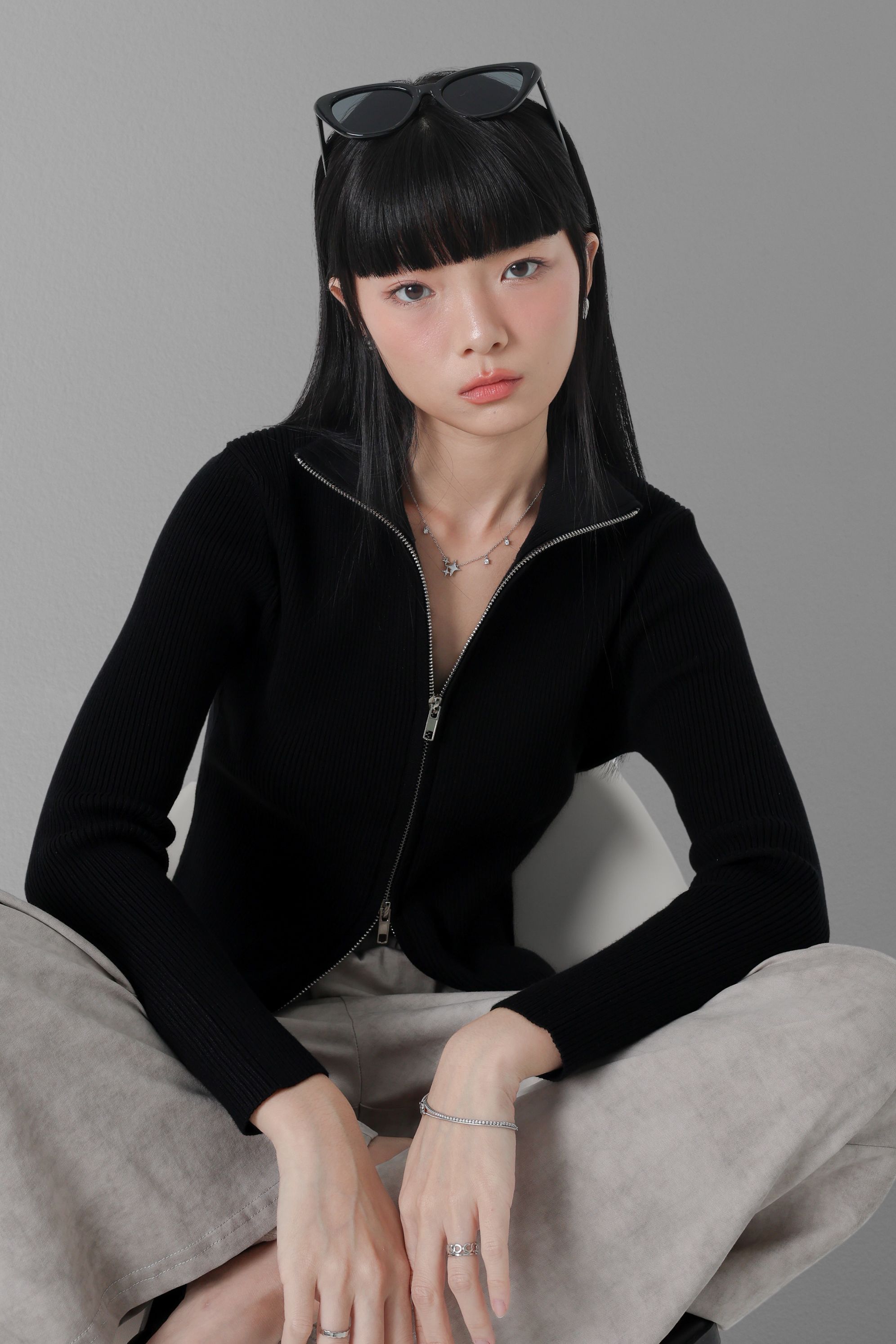 *TPZ* CRUSH DOUBLE ZIPPER CARDIGAN TOP IN BLACK