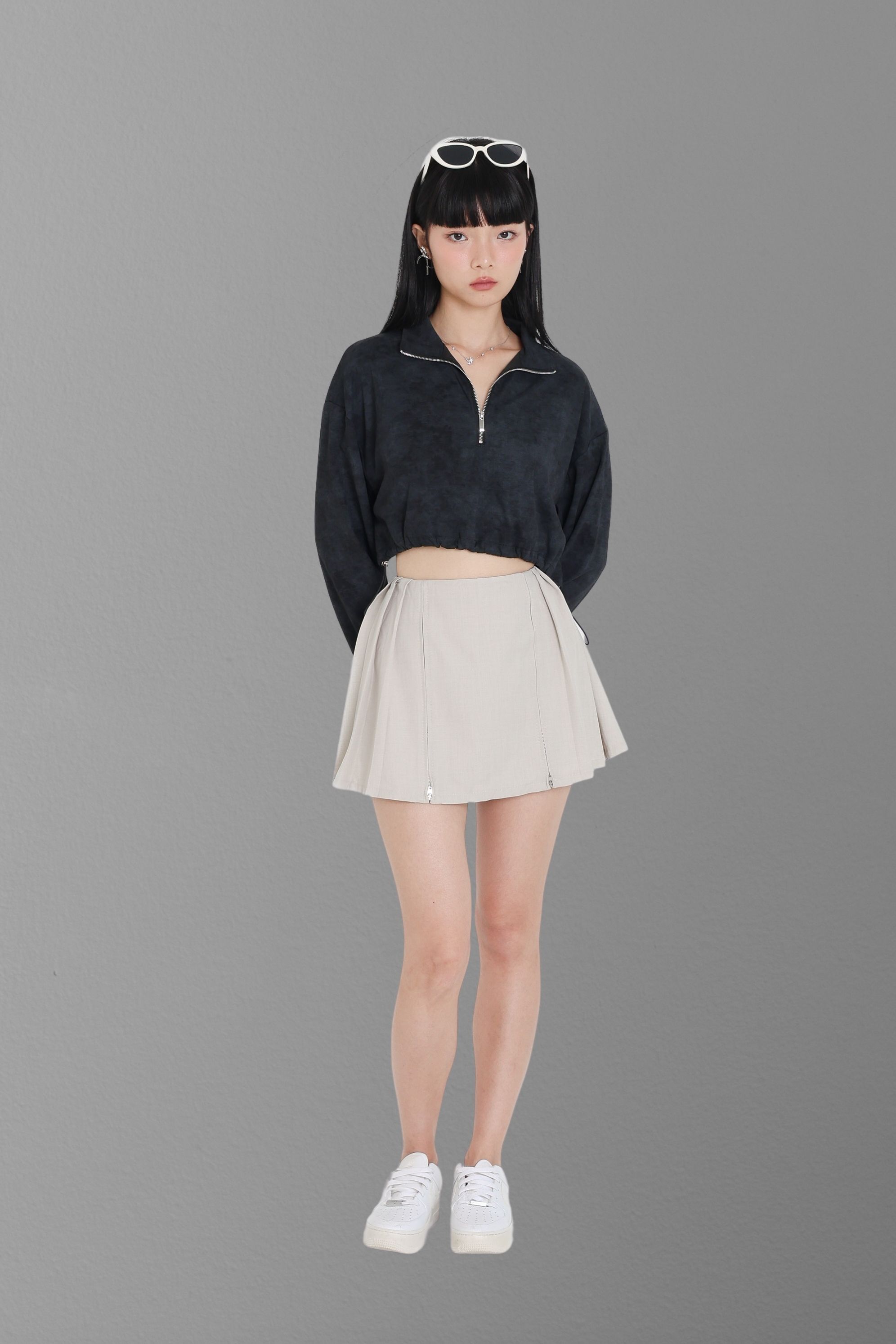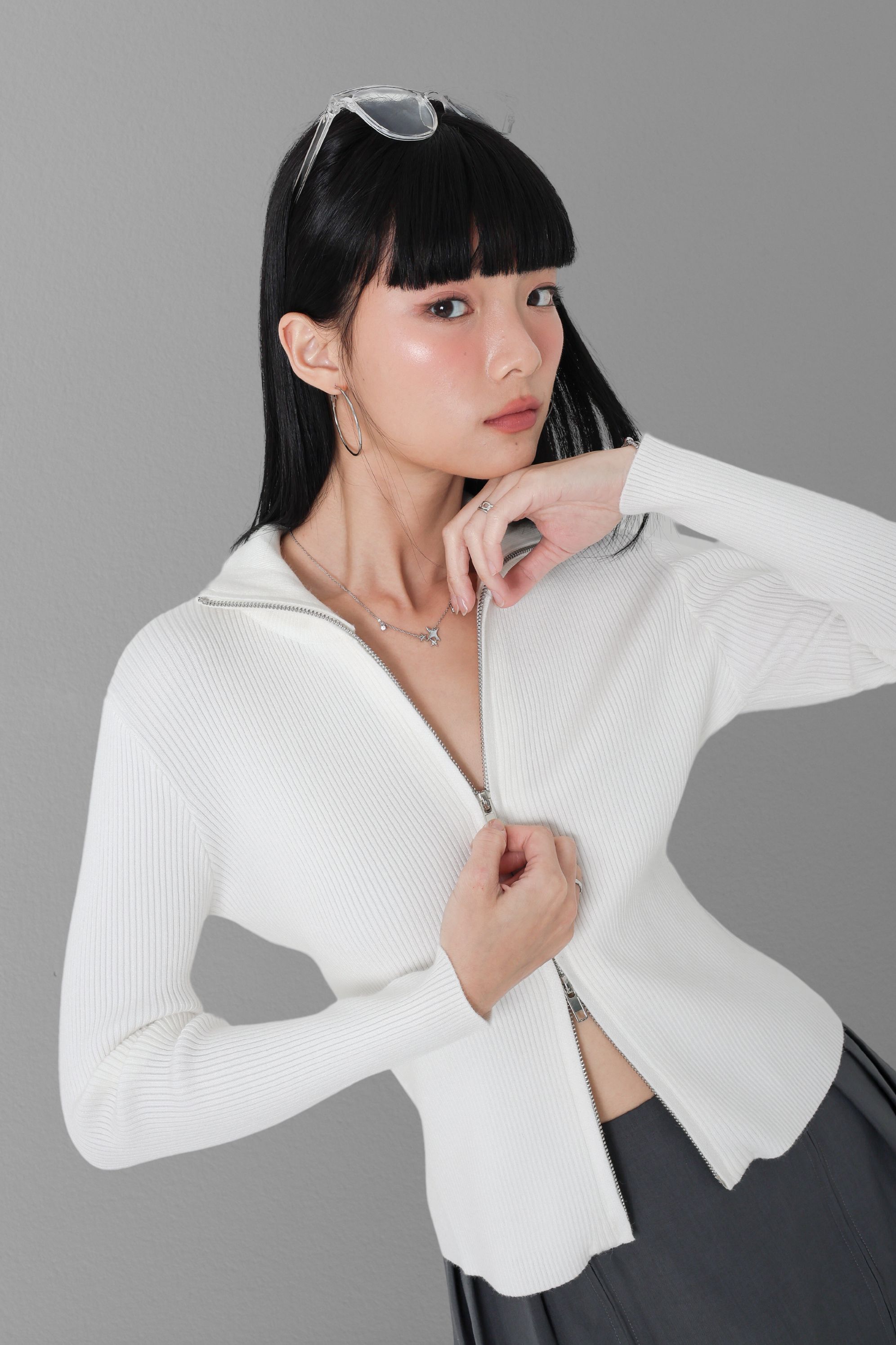*TPZ* CRUSH DOUBLE ZIPPER CARDIGAN TOP IN WHITE