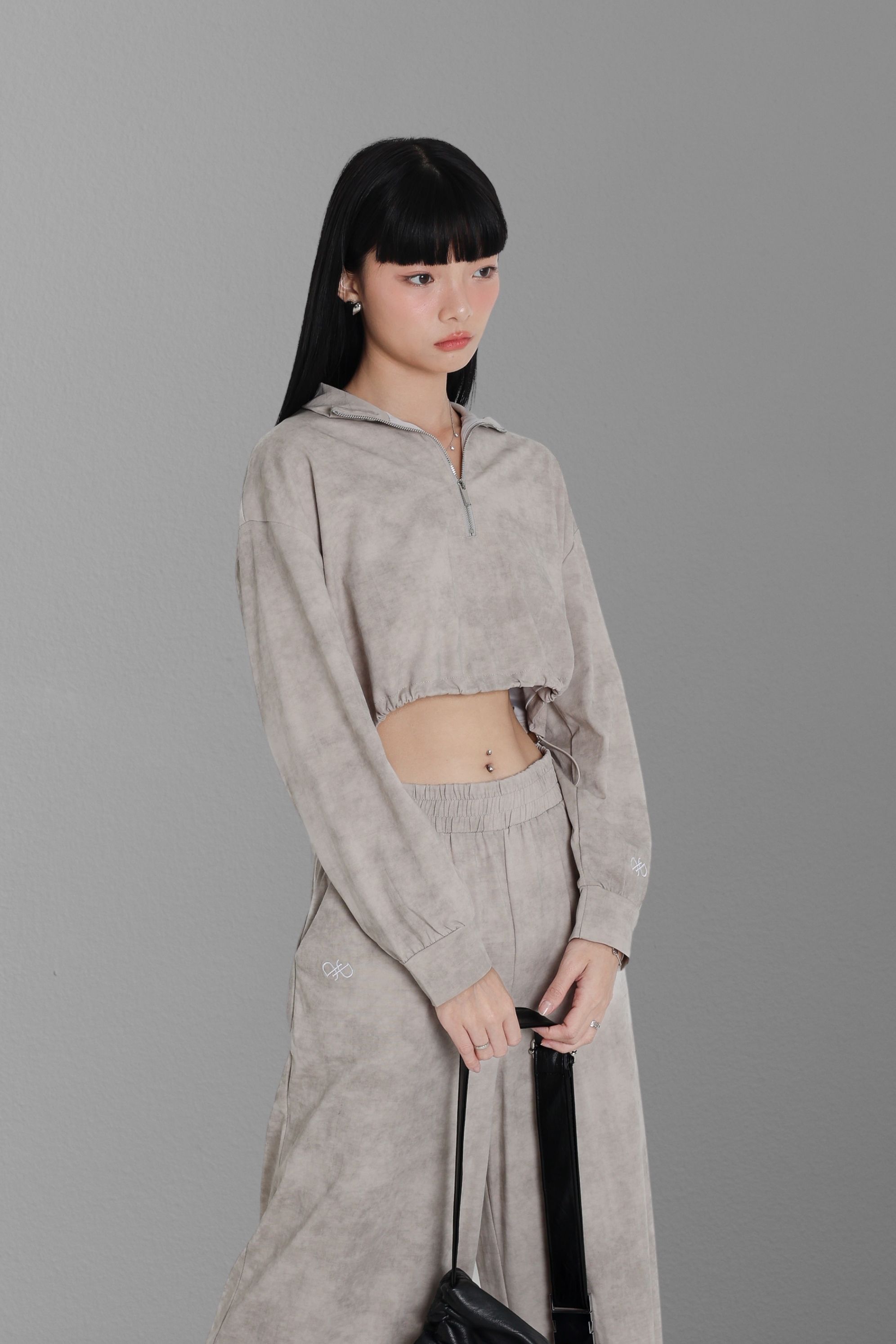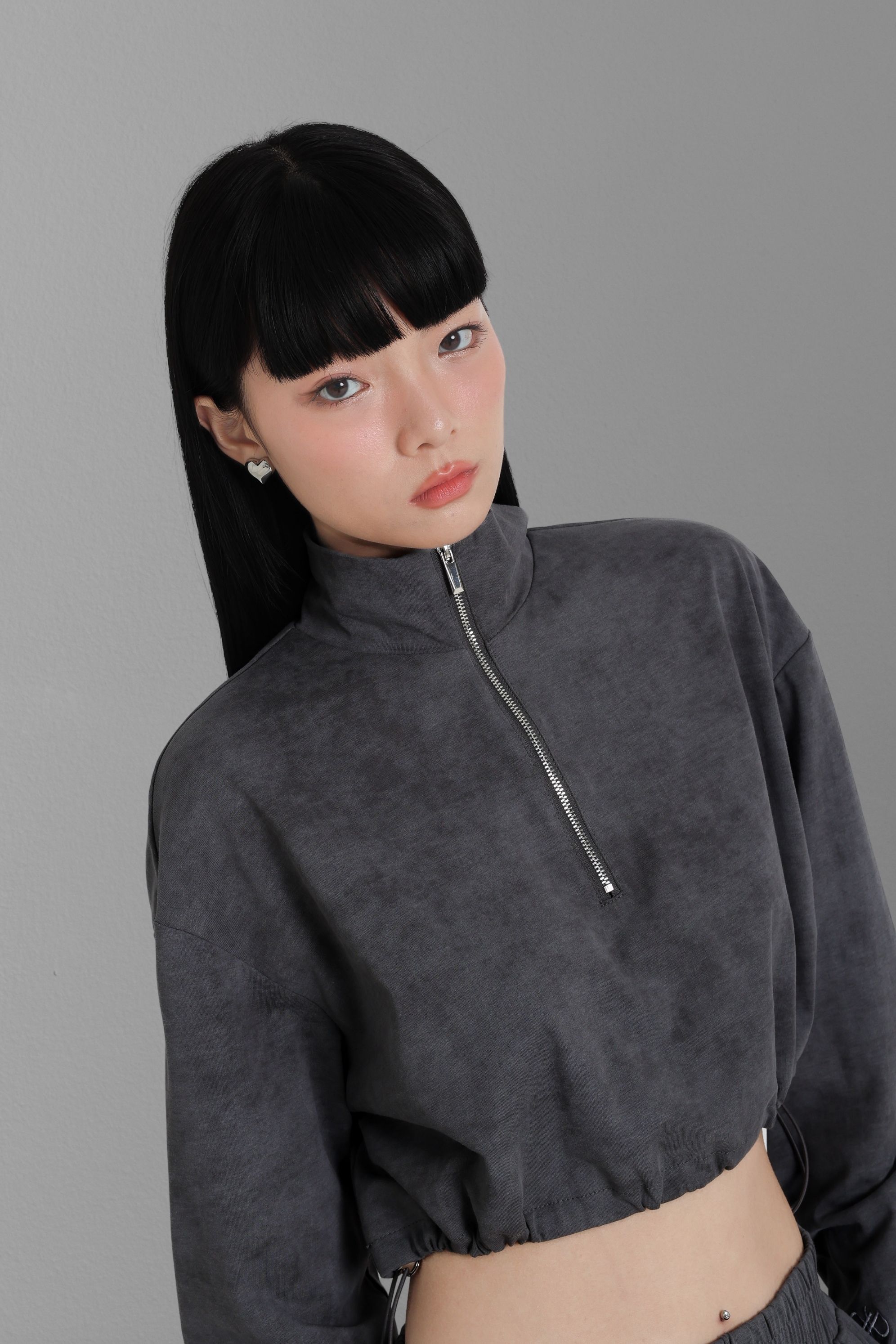*TPZ* CRUSH DOUBLE ZIPPER CARDIGAN TOP IN TITANIUM GREY
