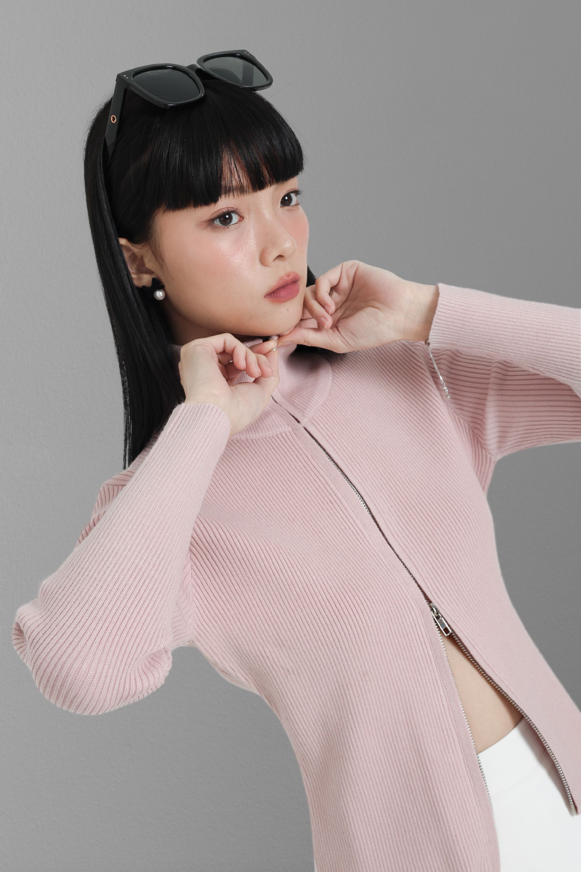*TPZ* CRUSH DOUBLE ZIPPER CARDIGAN TOP IN BABY PINK
