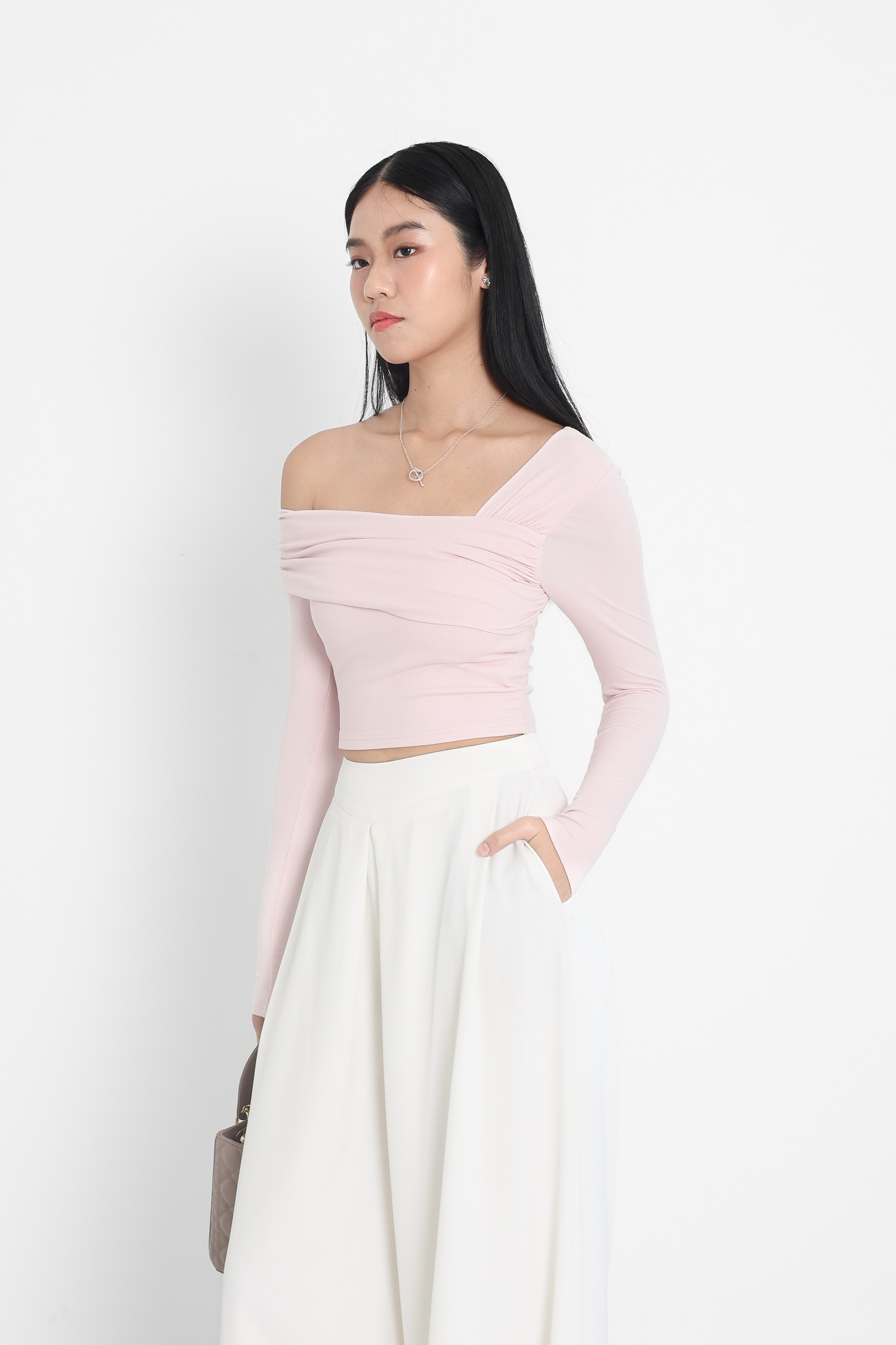 *TPZ* PERFECT ON SHOULDER LONG SLEEVES TOP IN ICE PINK