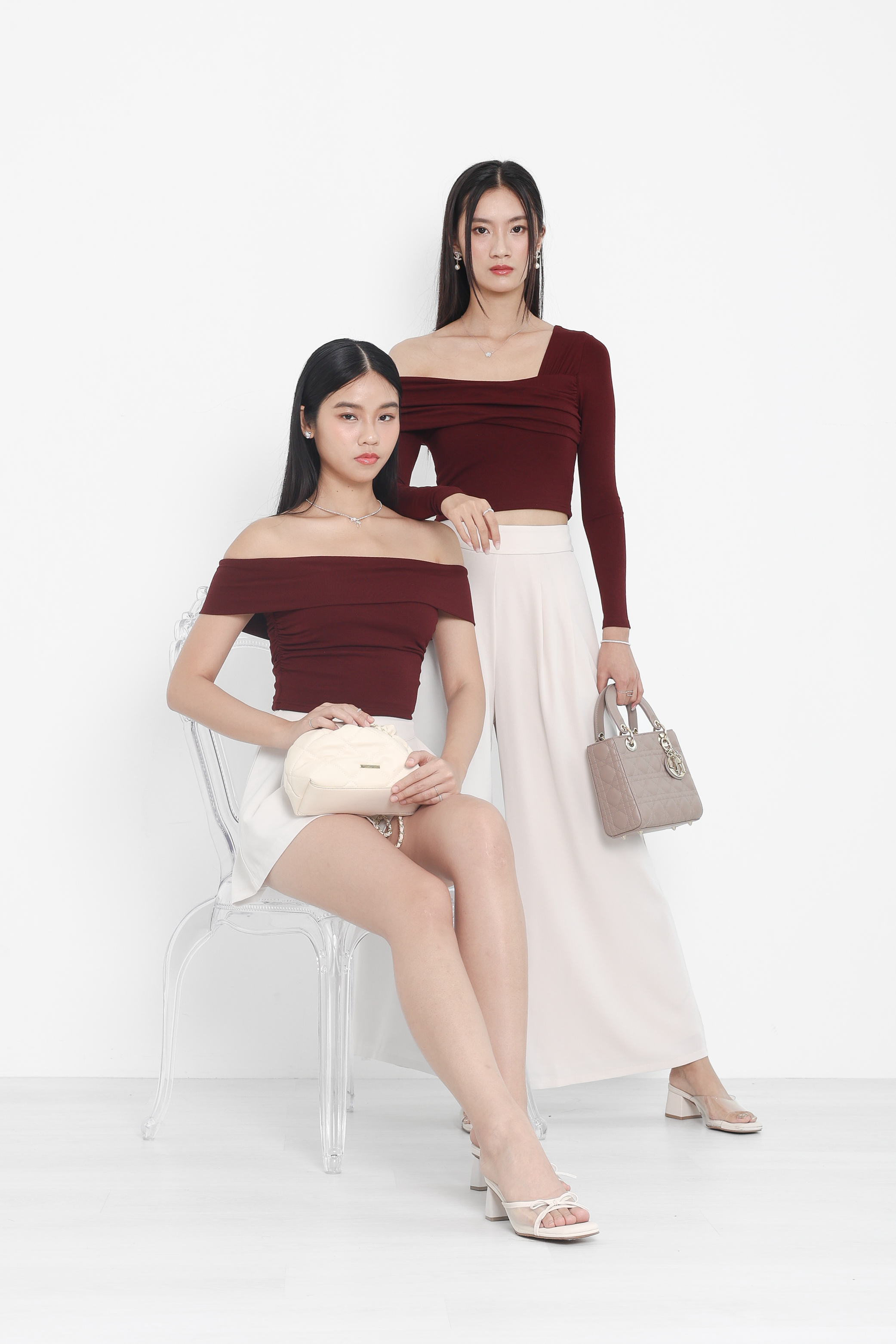 *TPZ* PERFECT ON SHOULDER LONG SLEEVES TOP IN BURGUNDY