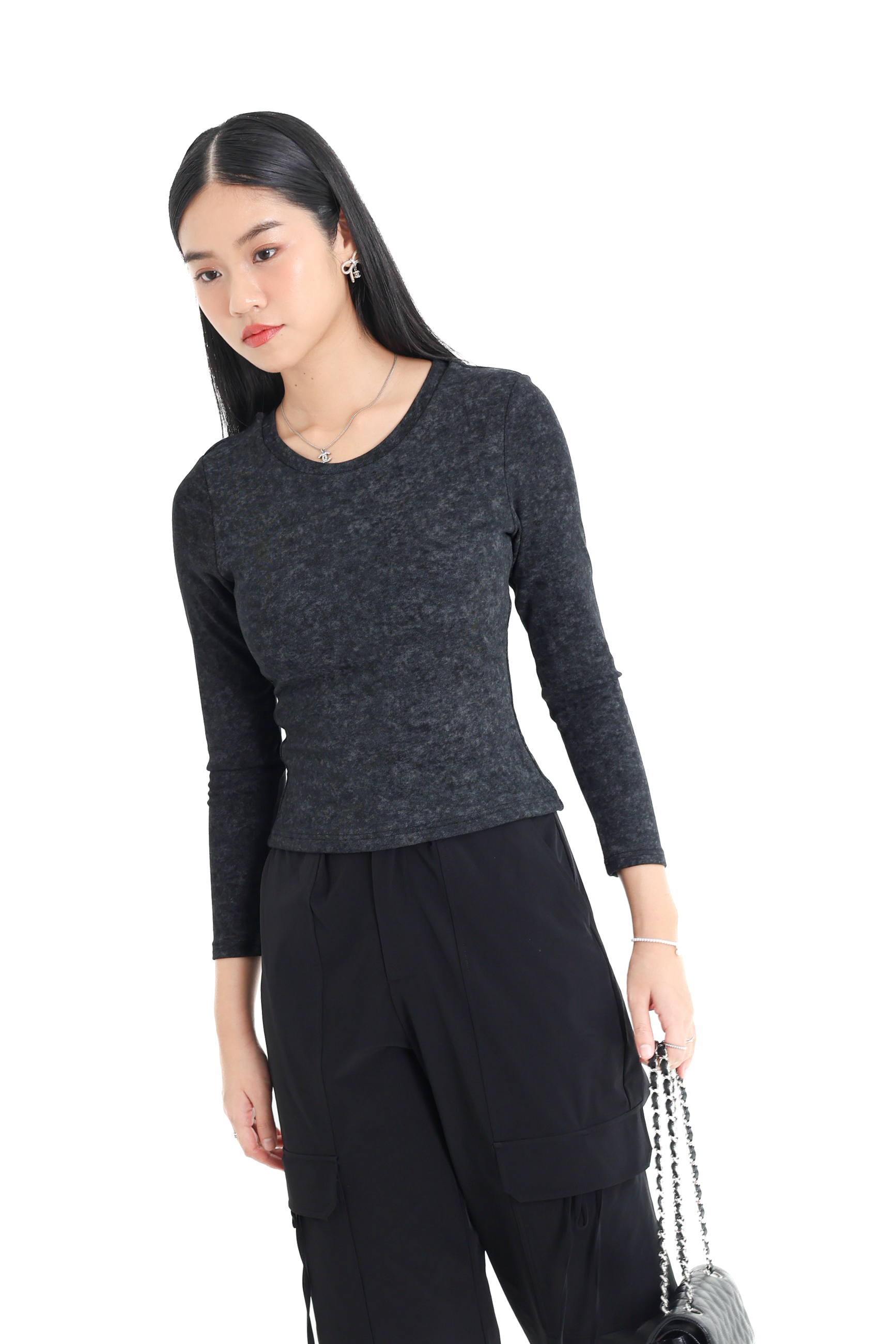 *TPZ* PERFECT BASIC LONG SLEEVES TOP (REGULAR) IN GALAXY BLACK ACID