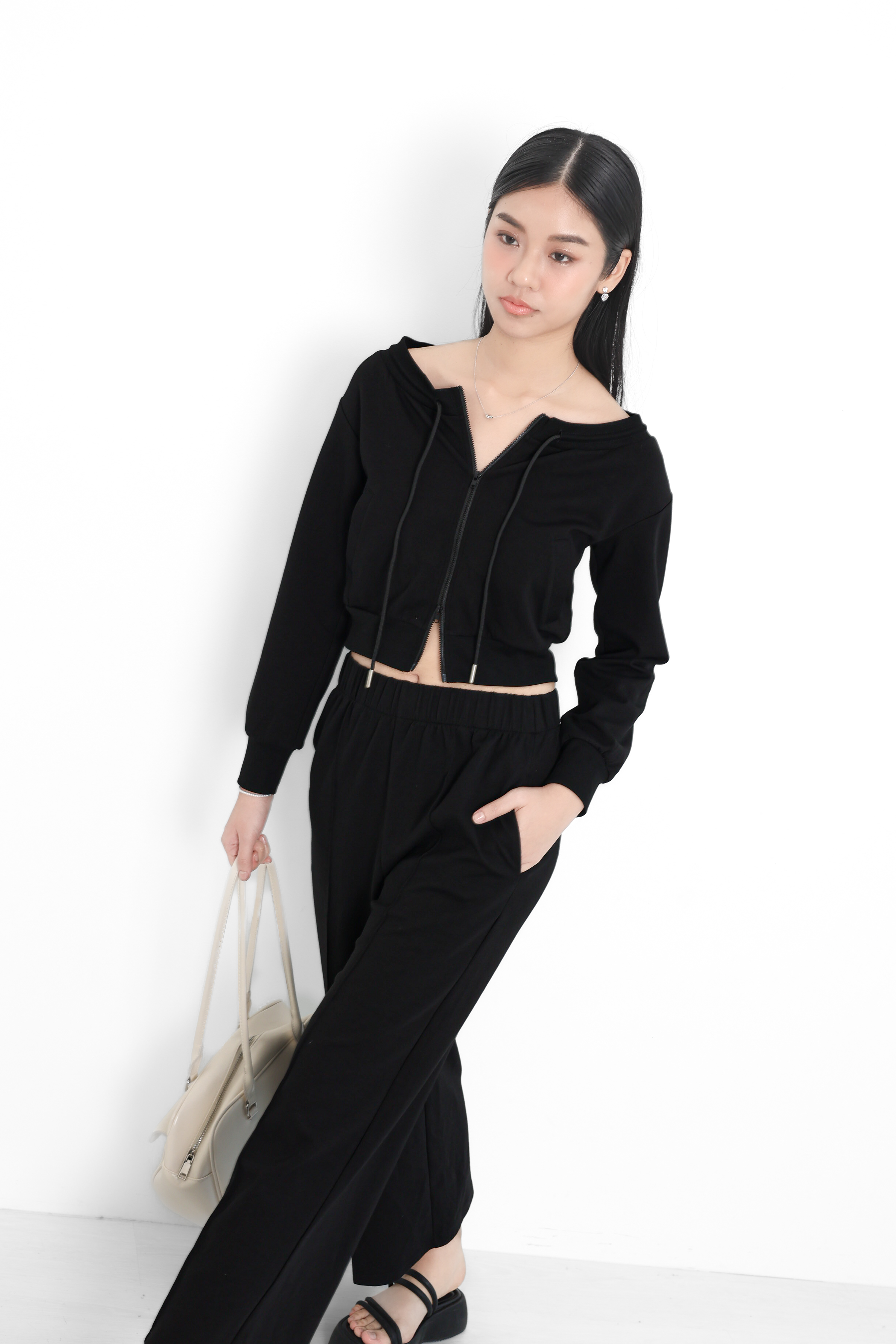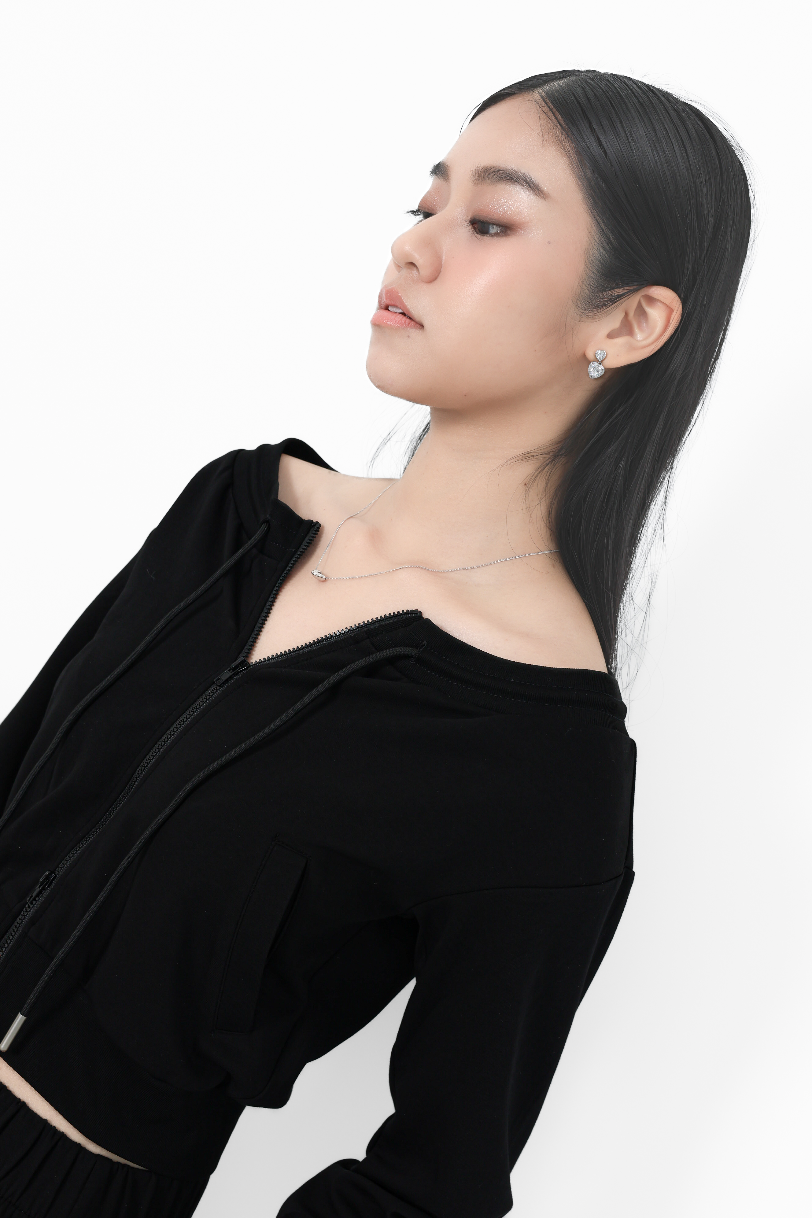 *TPZ* BIZ LOUNGE DOUBLE ZIPPER TOP/ JACKET IN BLACK