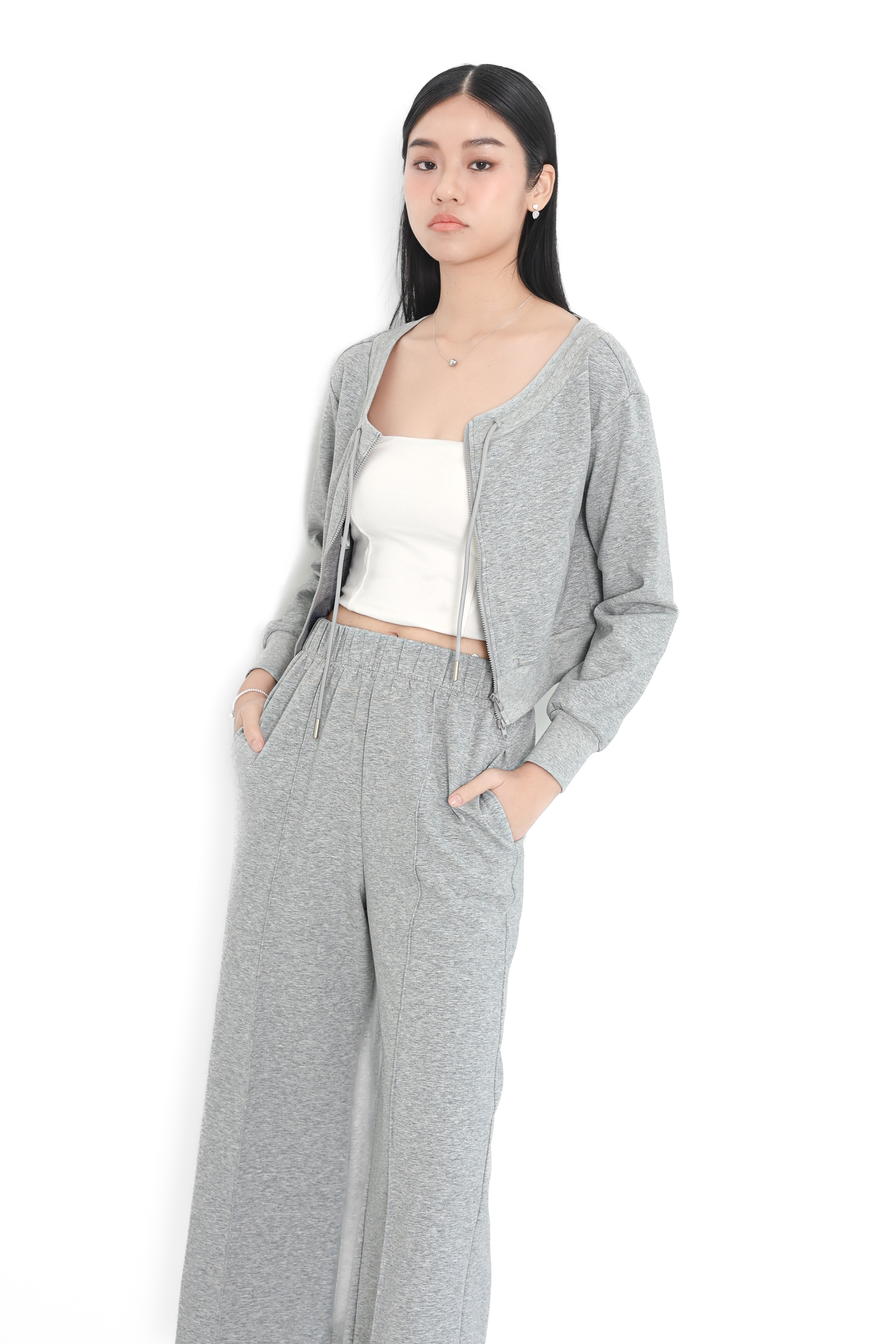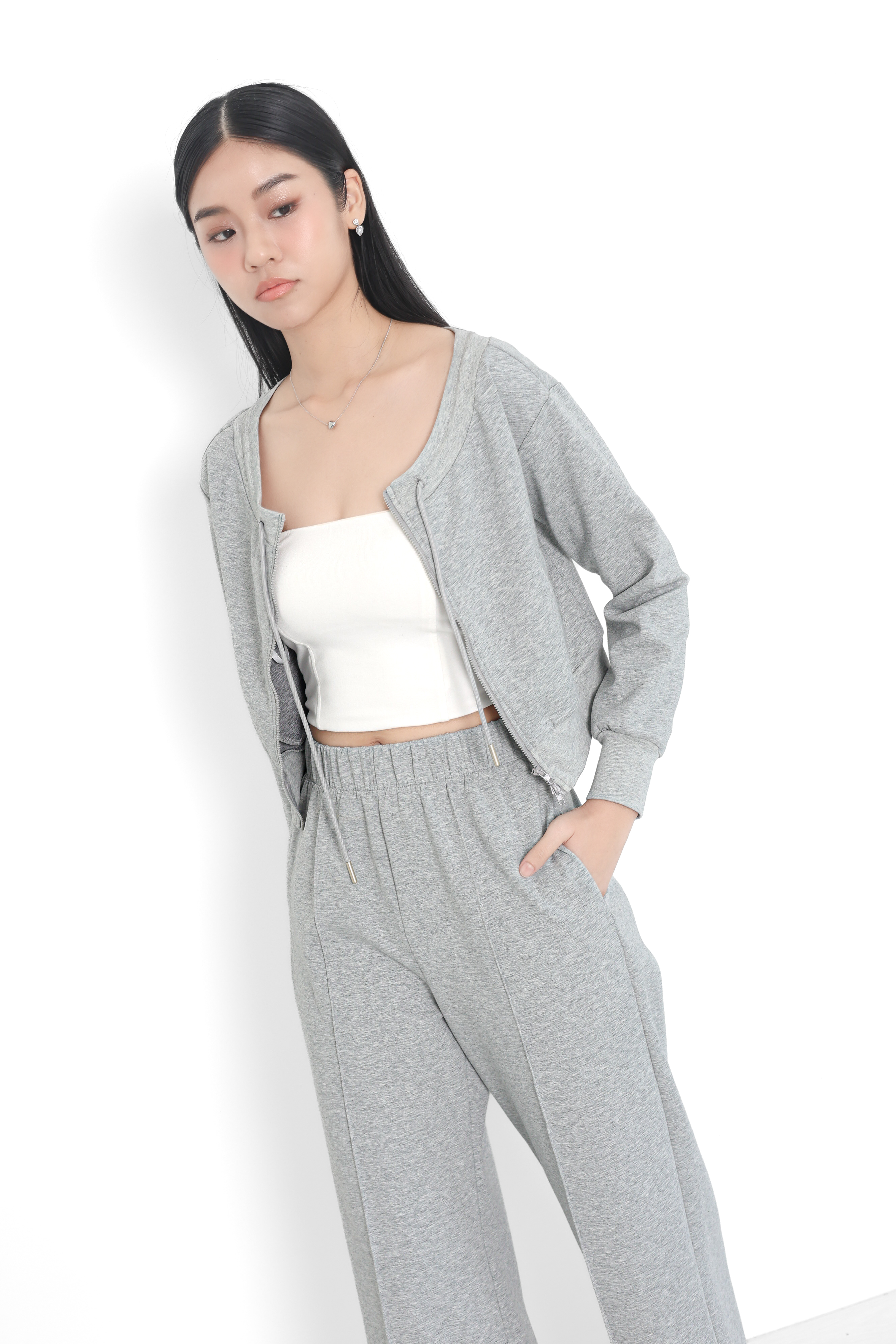 *TPZ* BIZ LOUNGE DOUBLE ZIPPER TOP/JACKET IN HEATHER GREY