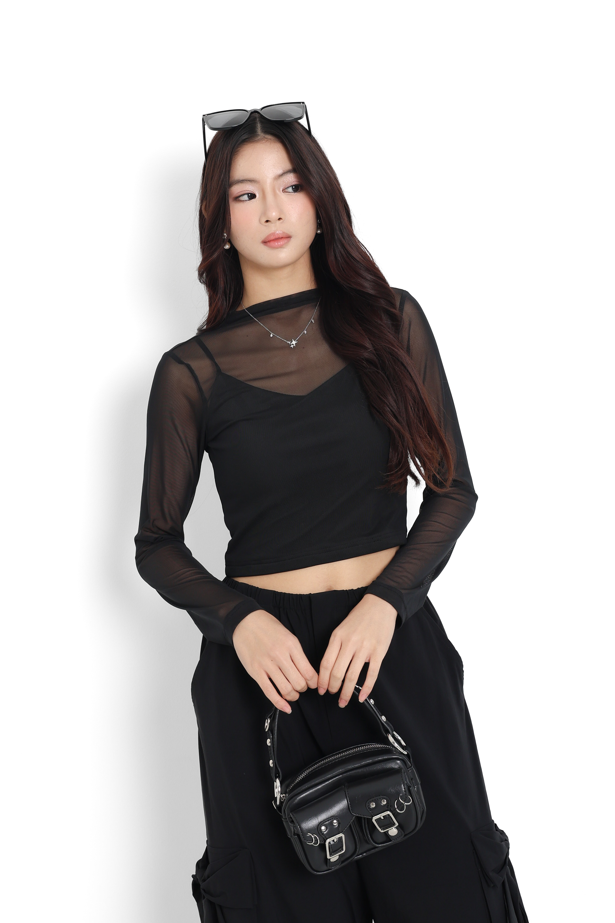 *TPZ LUXE MESH* VELL MESH LONG SLEEVES TOP IN BLACK
