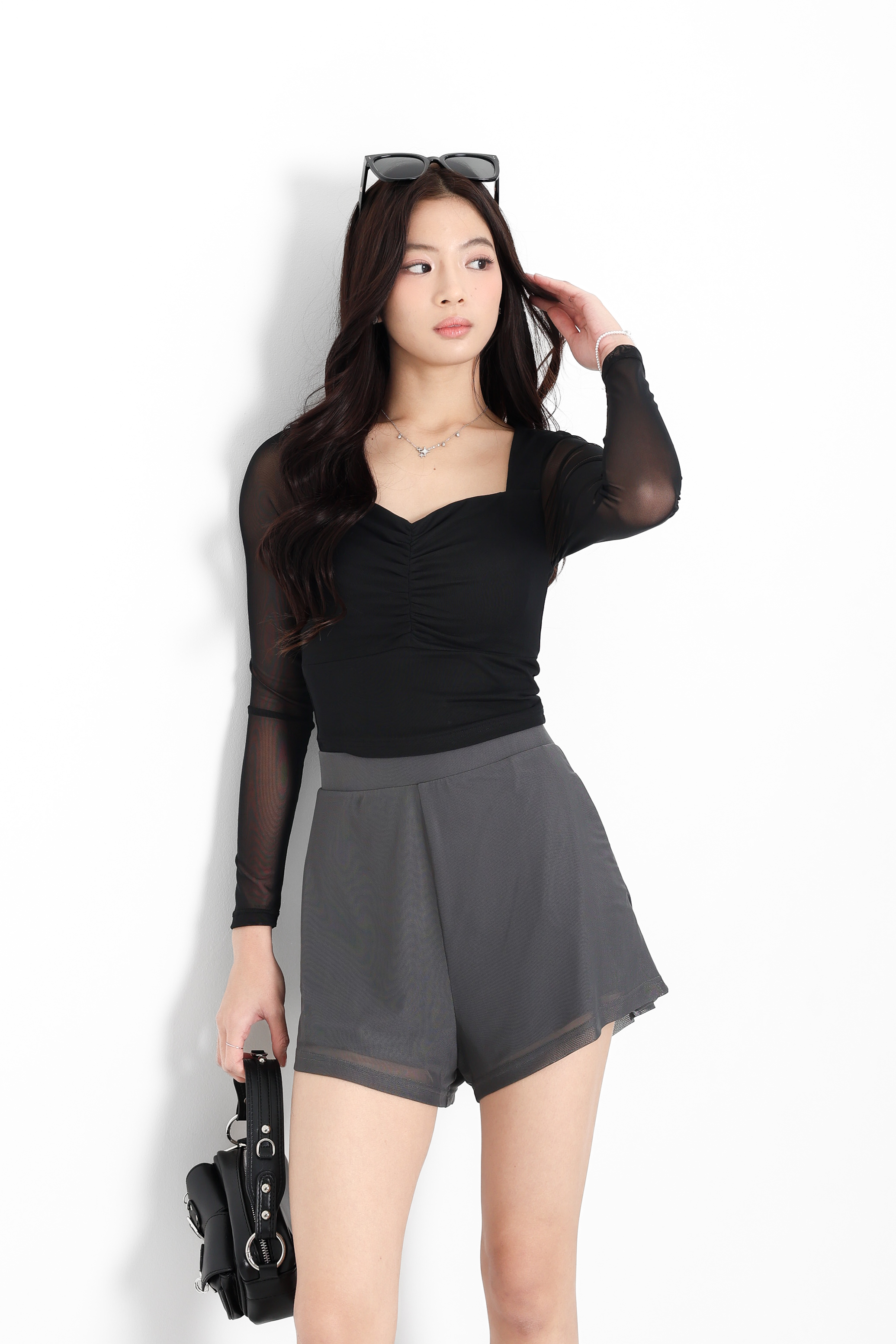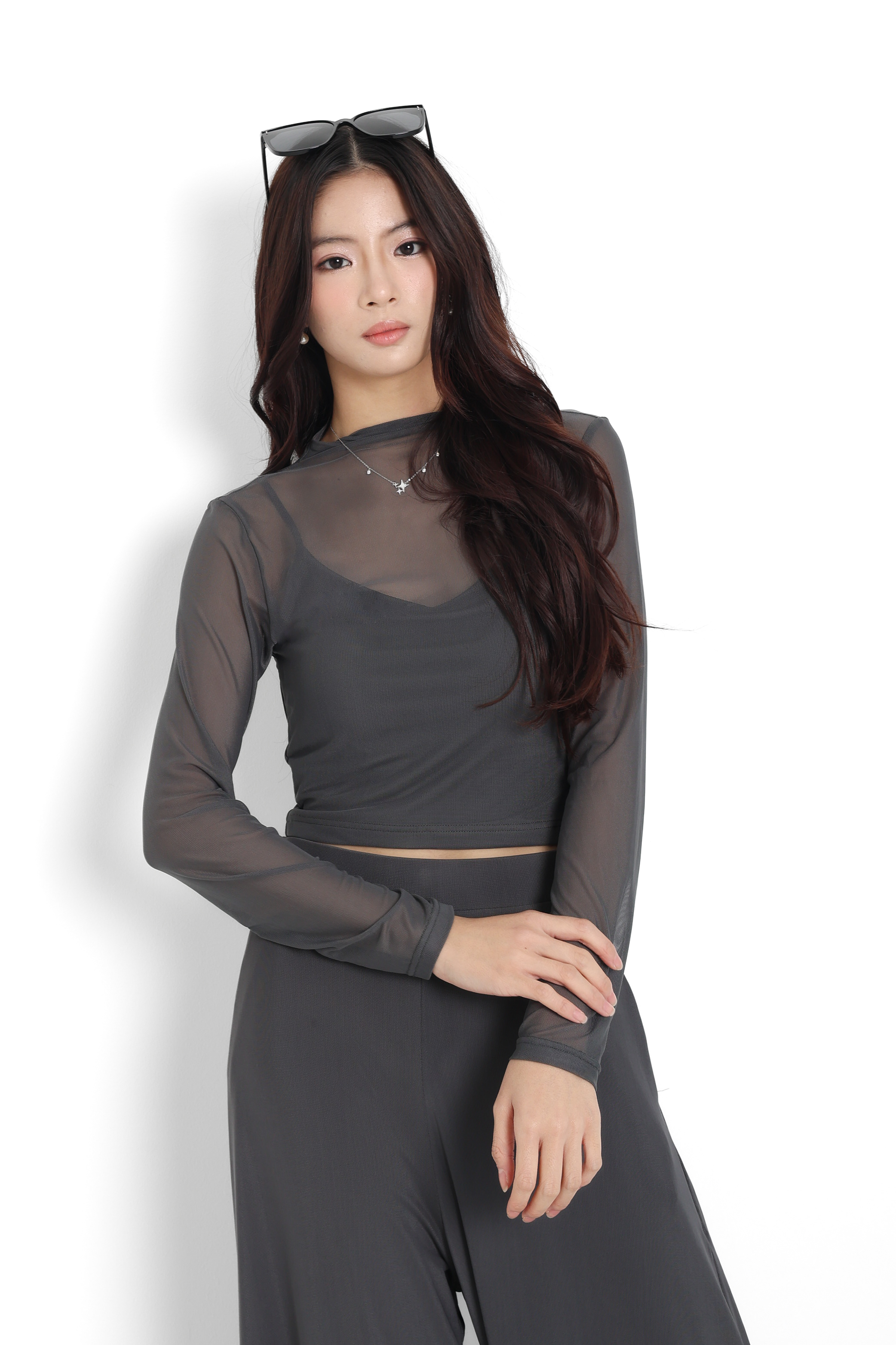*TPZ LUXE MESH* VELL MESH LONG SLEEVES TOP IN DARK GREY