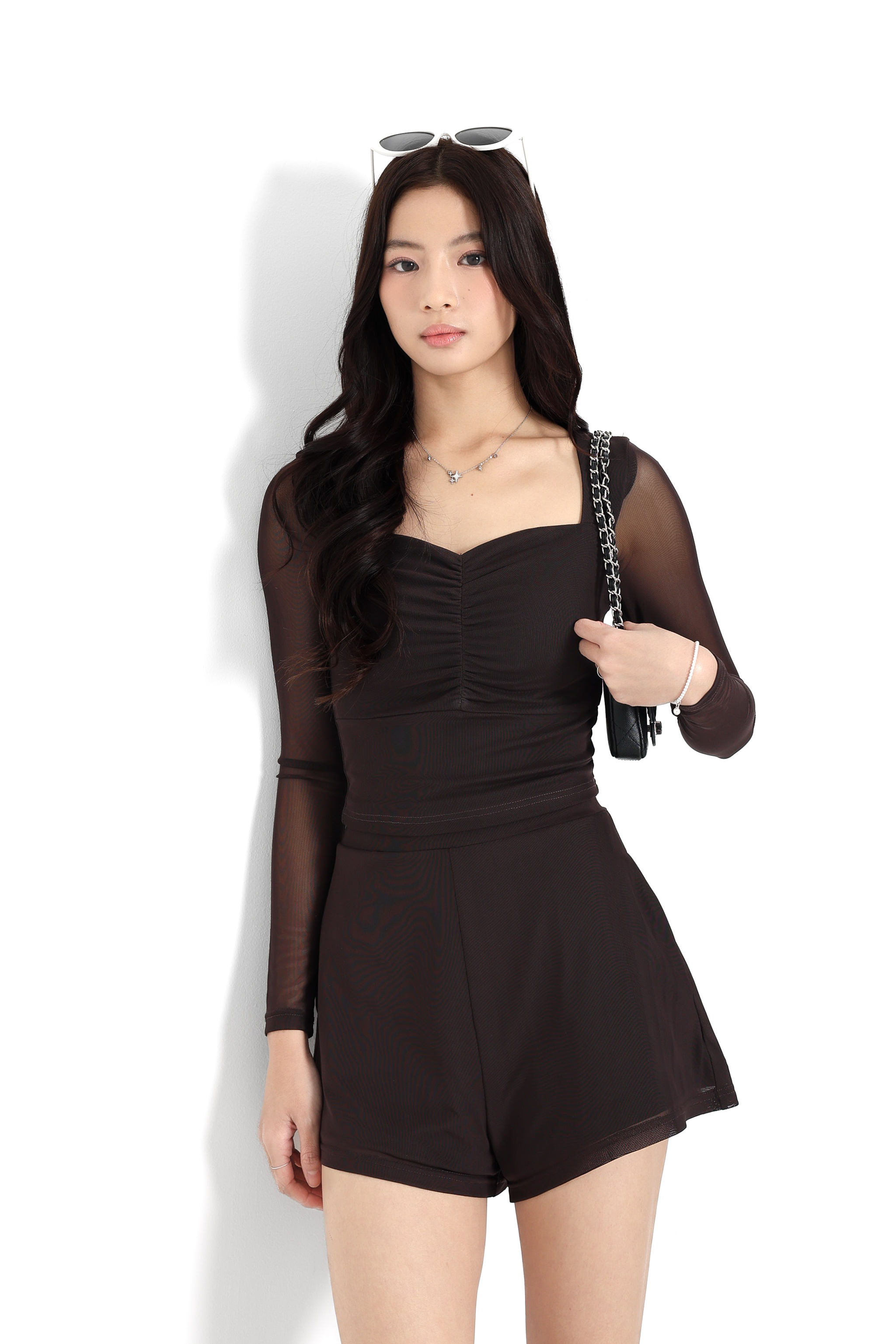 *TPZ LUXE MESH* DYNASTY LONG SLEEVES TOP IN BLACK