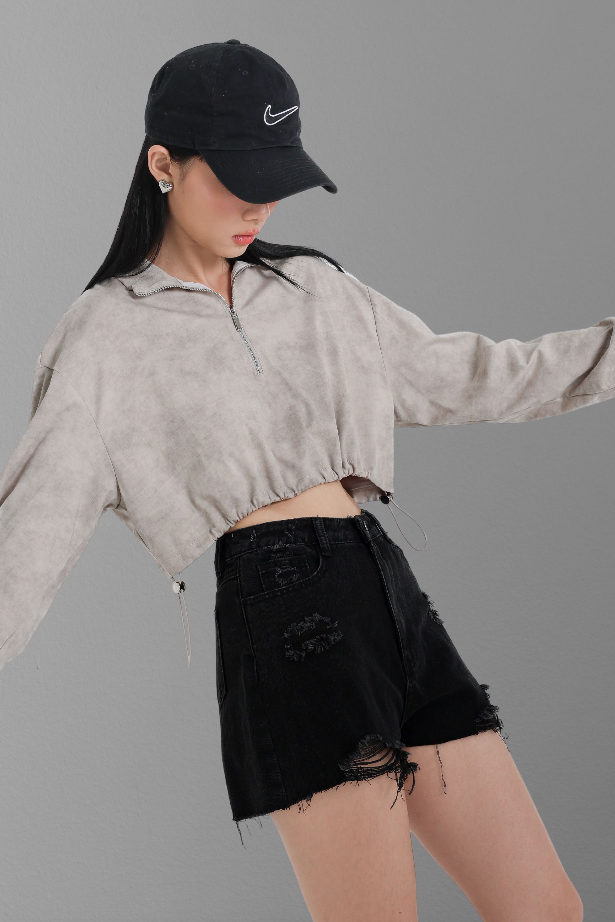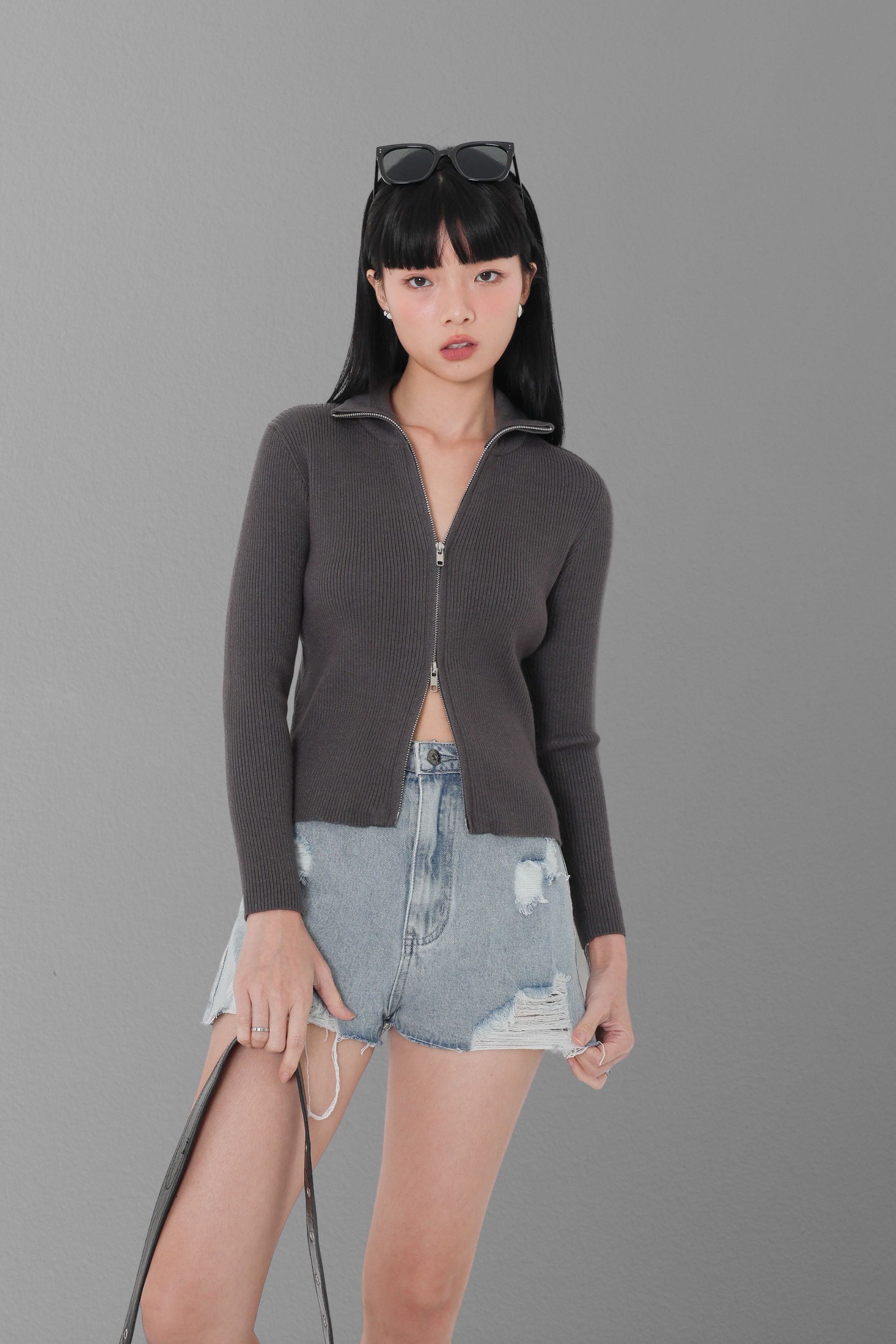 *TPZ* THE DENIM RIPPED SHORTS 2.0 IN GREY BLACK WASH