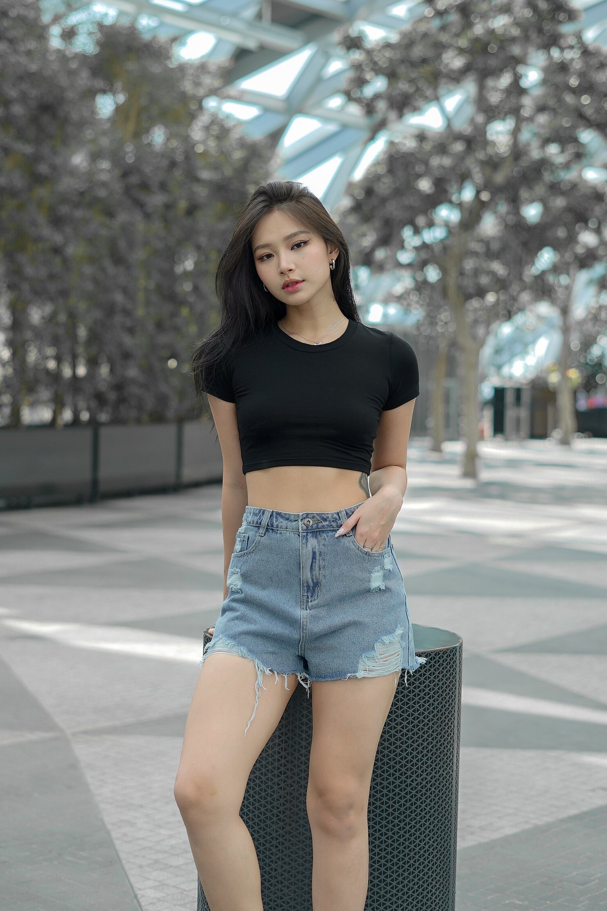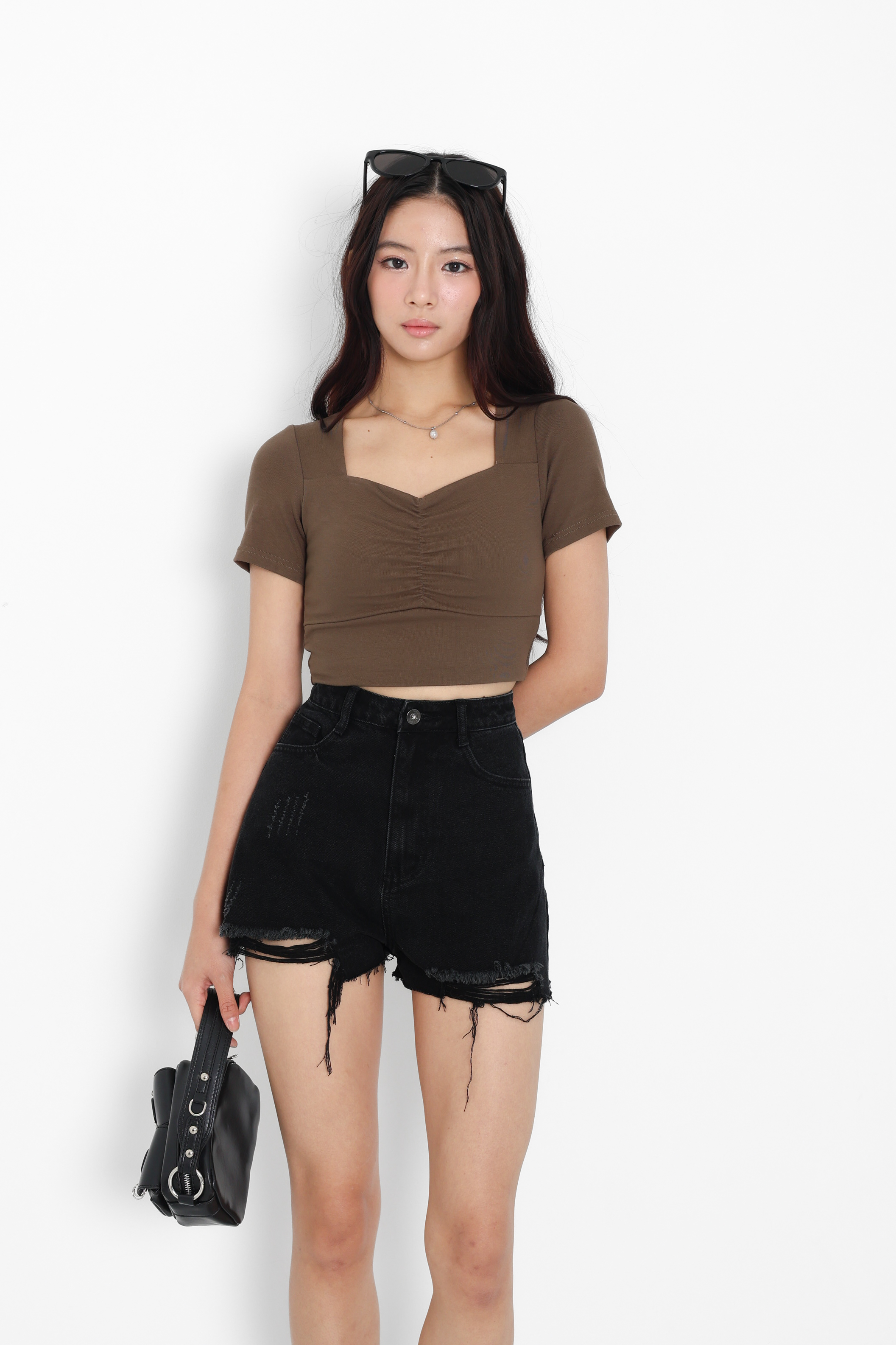 *TPZ* ON REPEAT RIPPED DENIM SHORTS 2.0 IN BLACK WASH