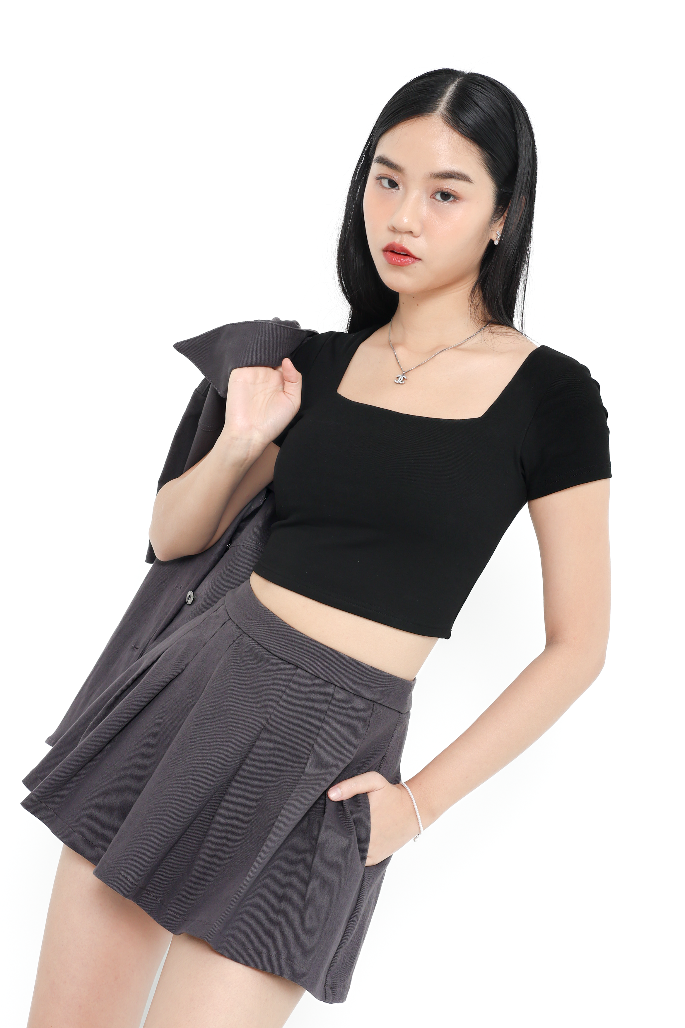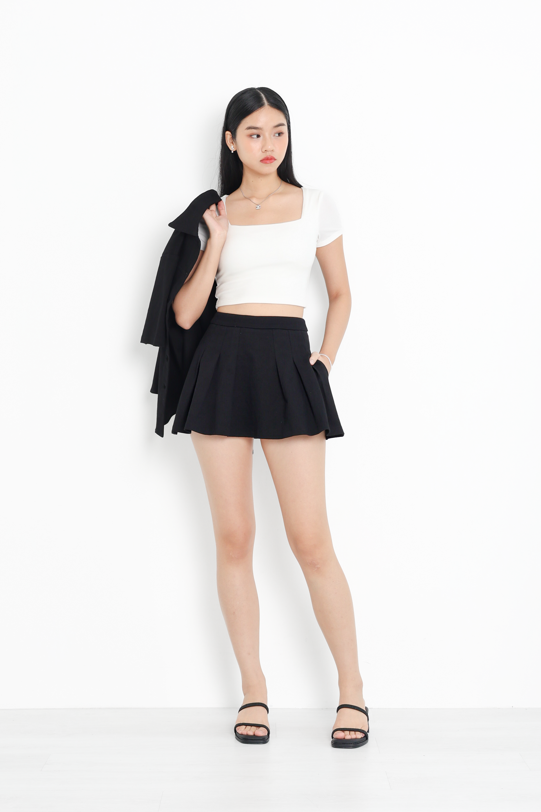 *TPZ* REVIVE DENIM PLEATED SKORTS IN BLACK