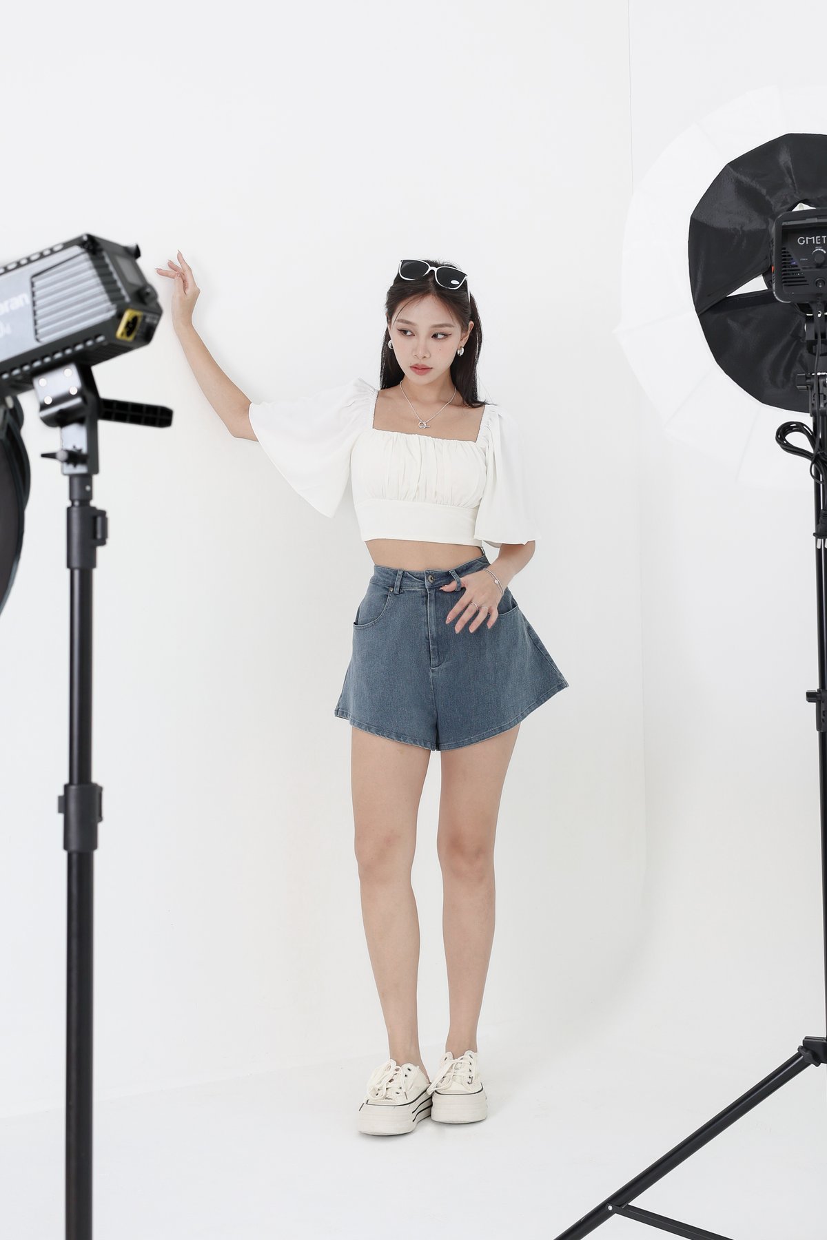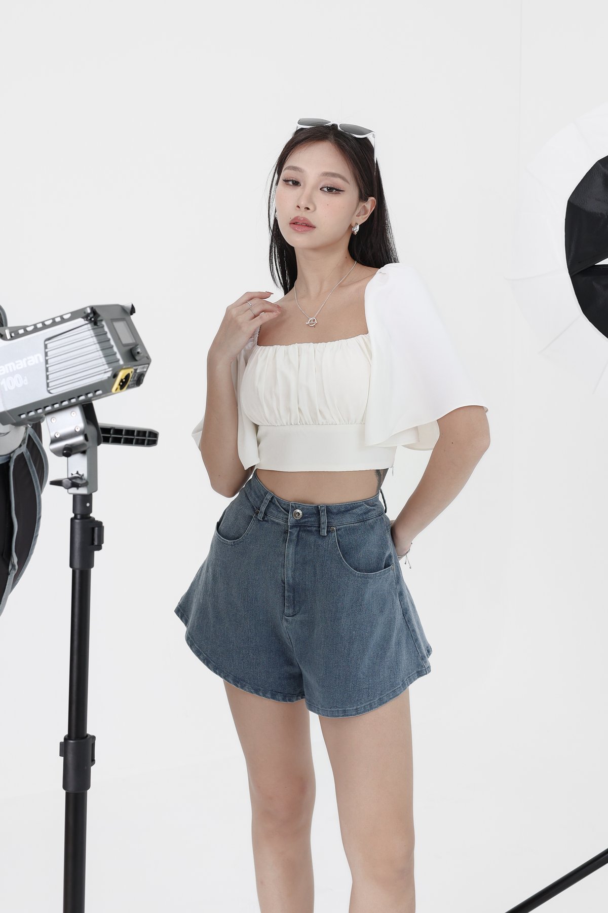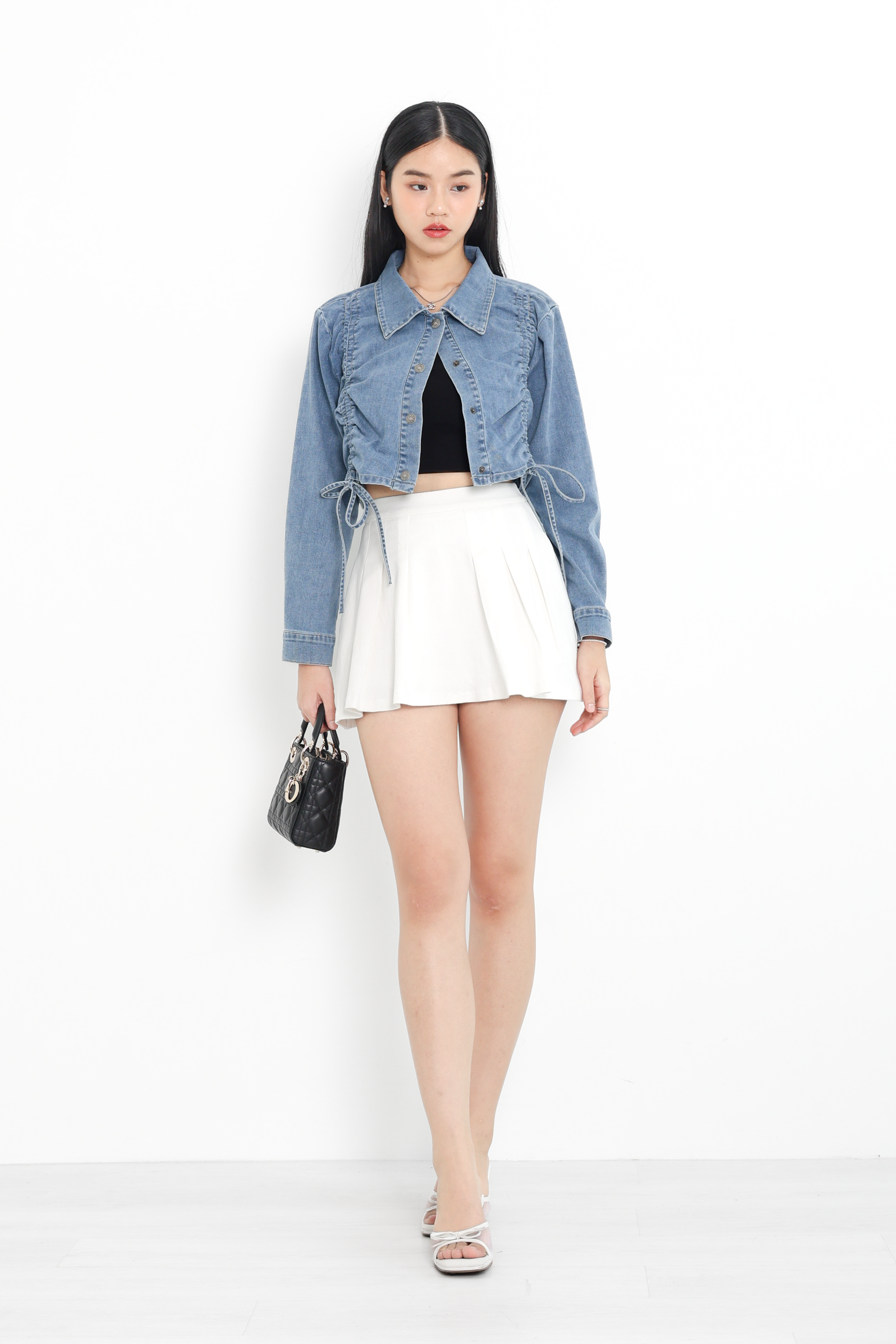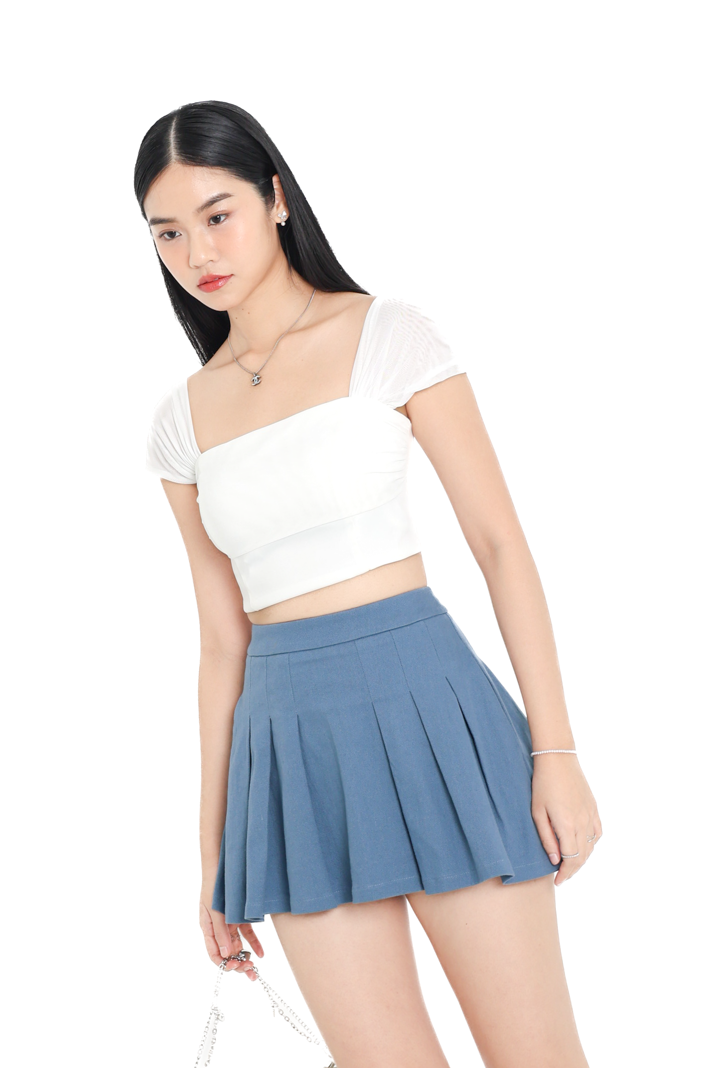 *TPZ* REVIVE DENIM PLEATED SKORTS IN WHITE