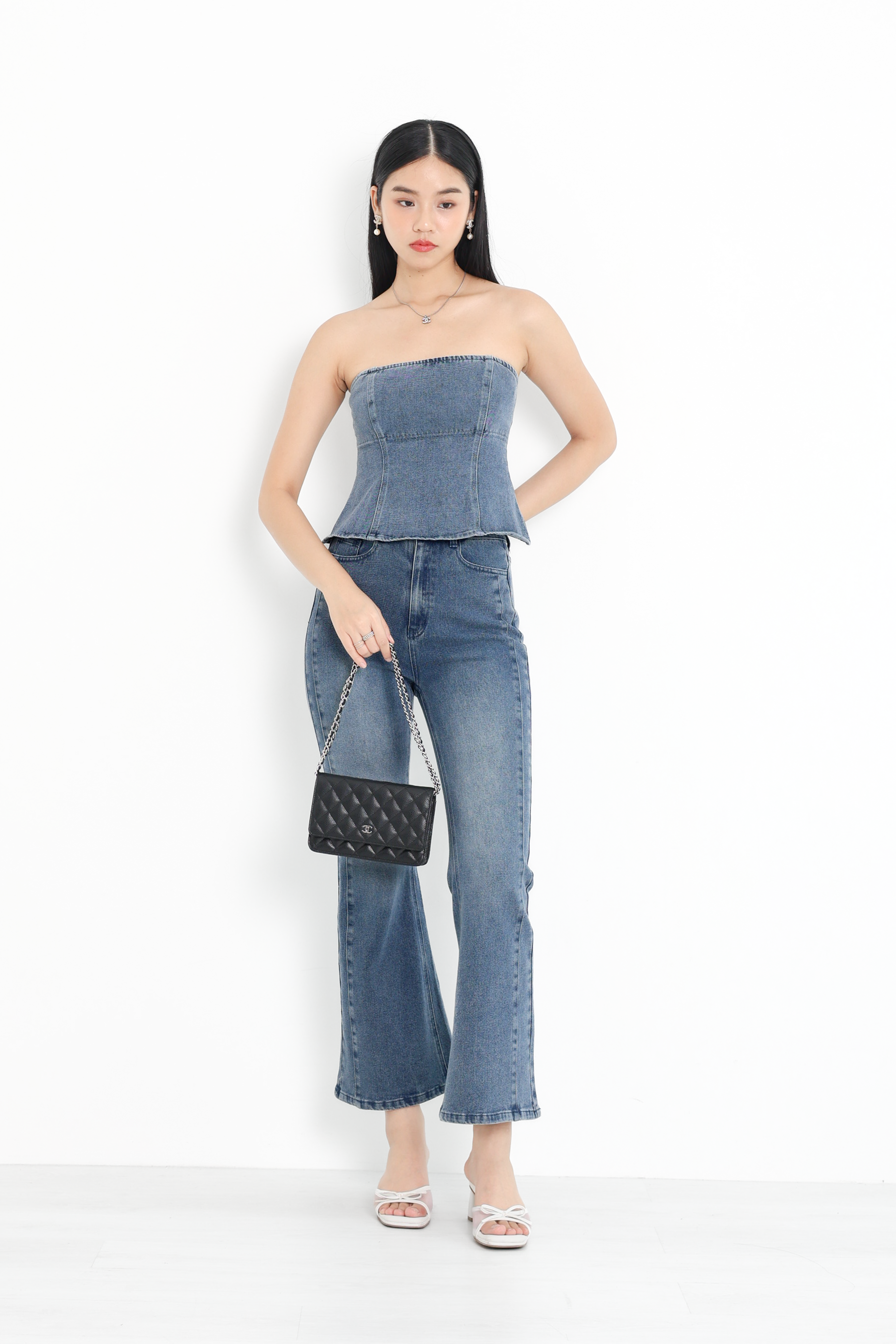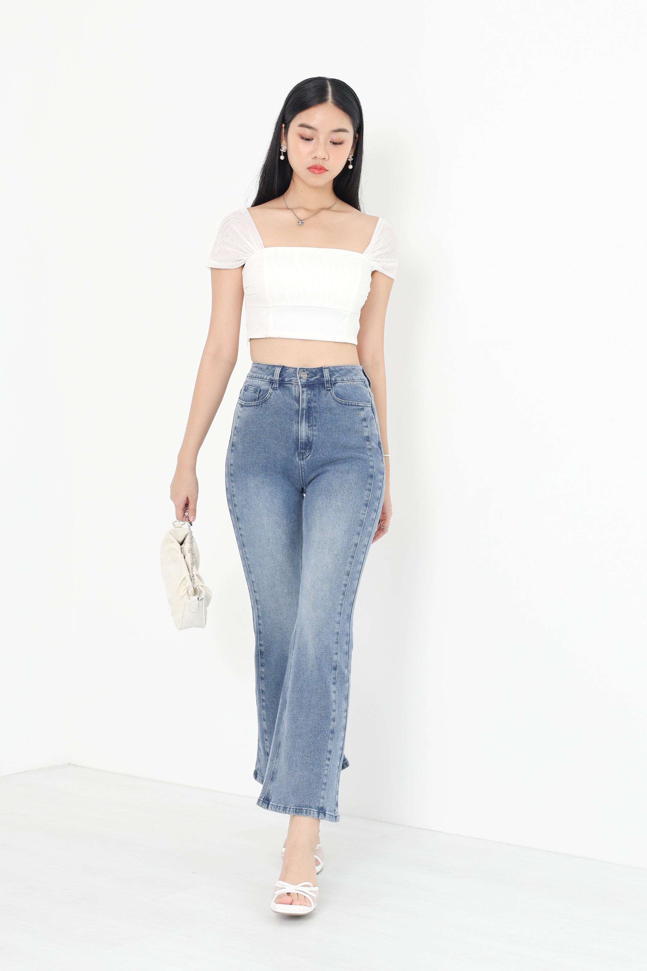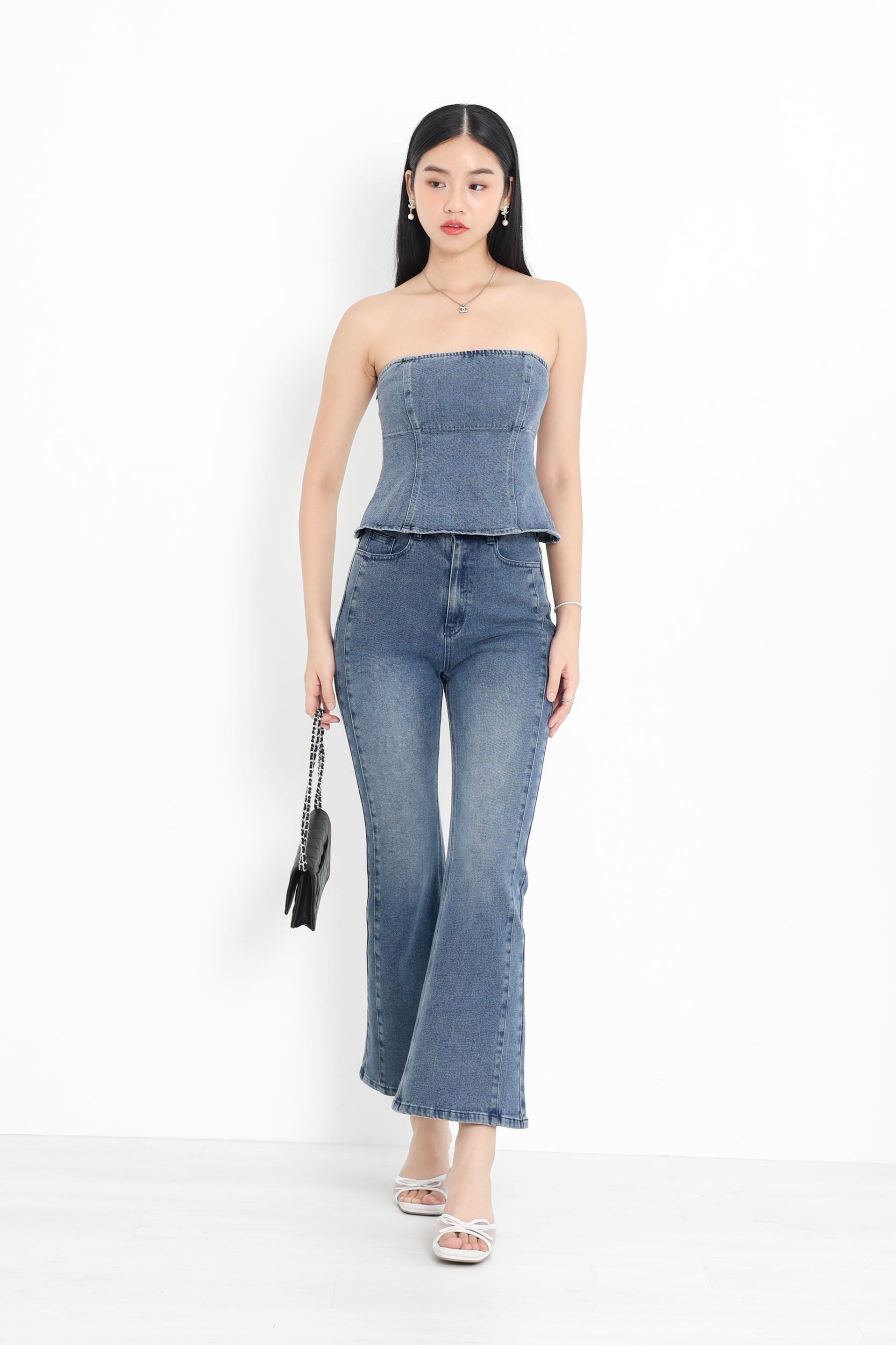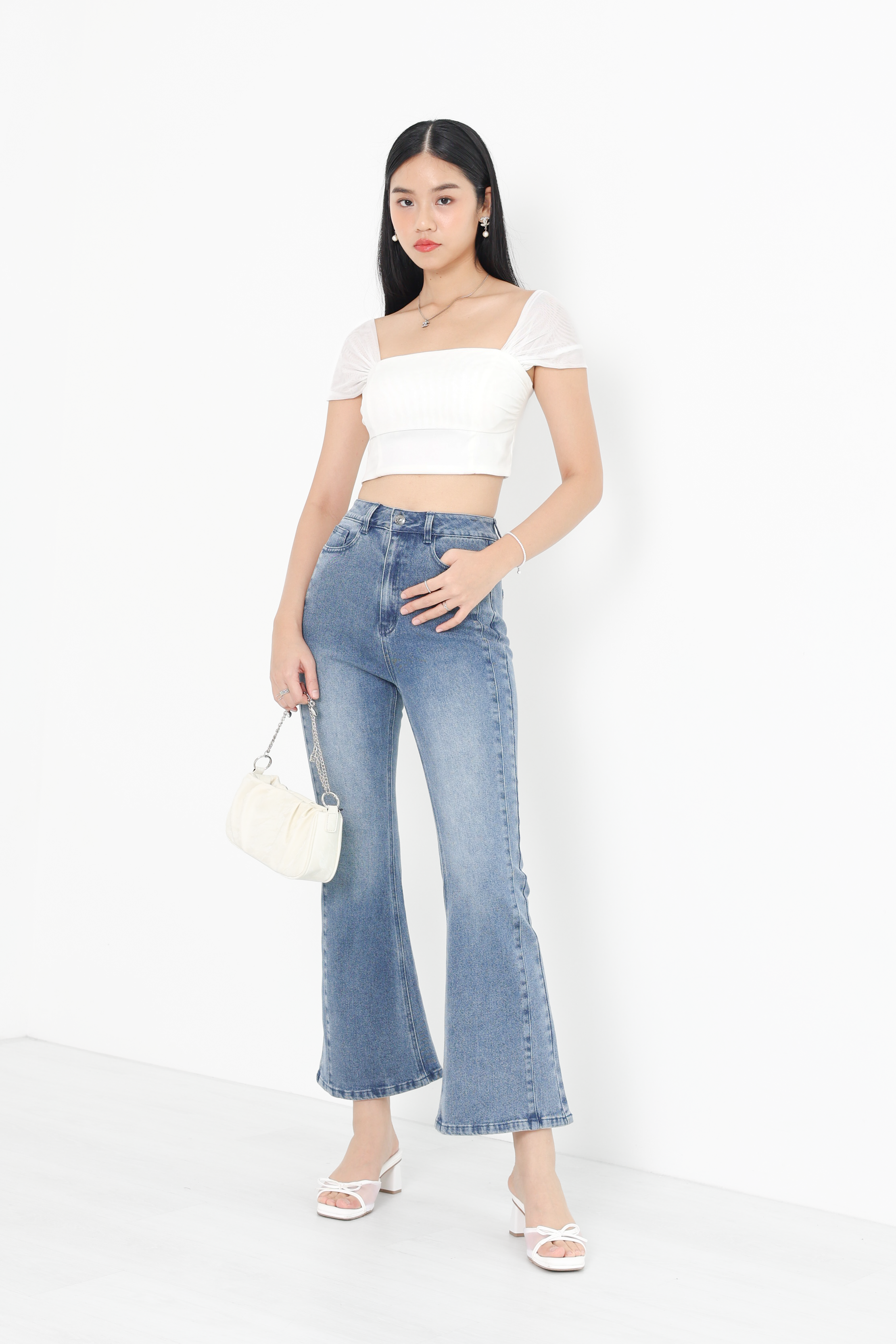 *TPZ* VERTEX BELL BOTTOM JEANS (PETITE) IN MID WASH