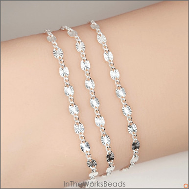 Sterling Silver Figaro Starburst Chain 3mm x 4.5mm 1:1 Ratio