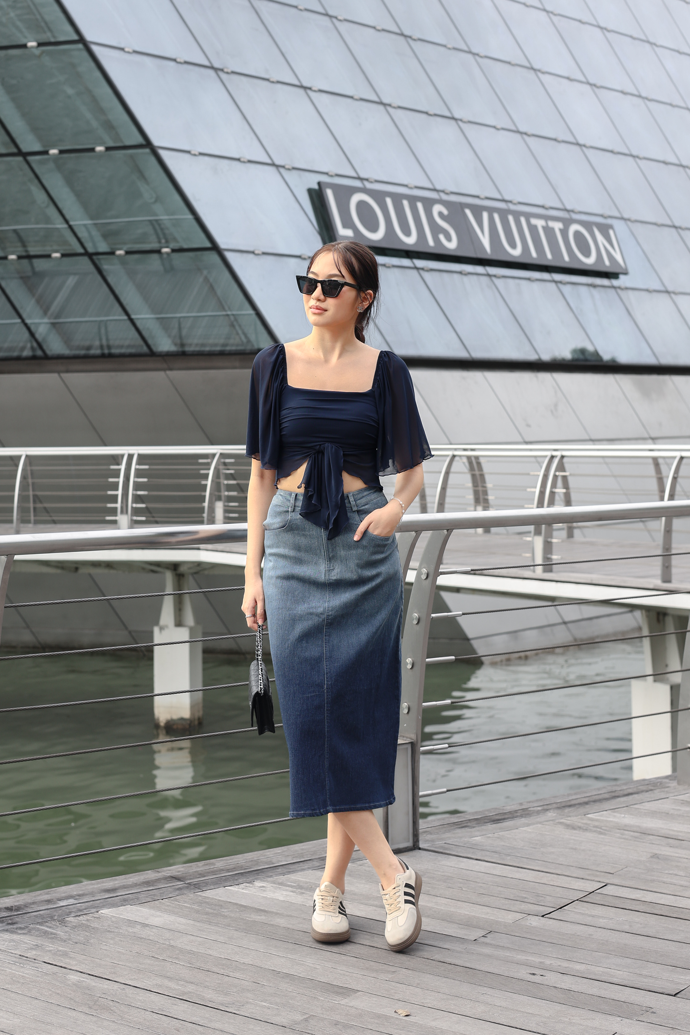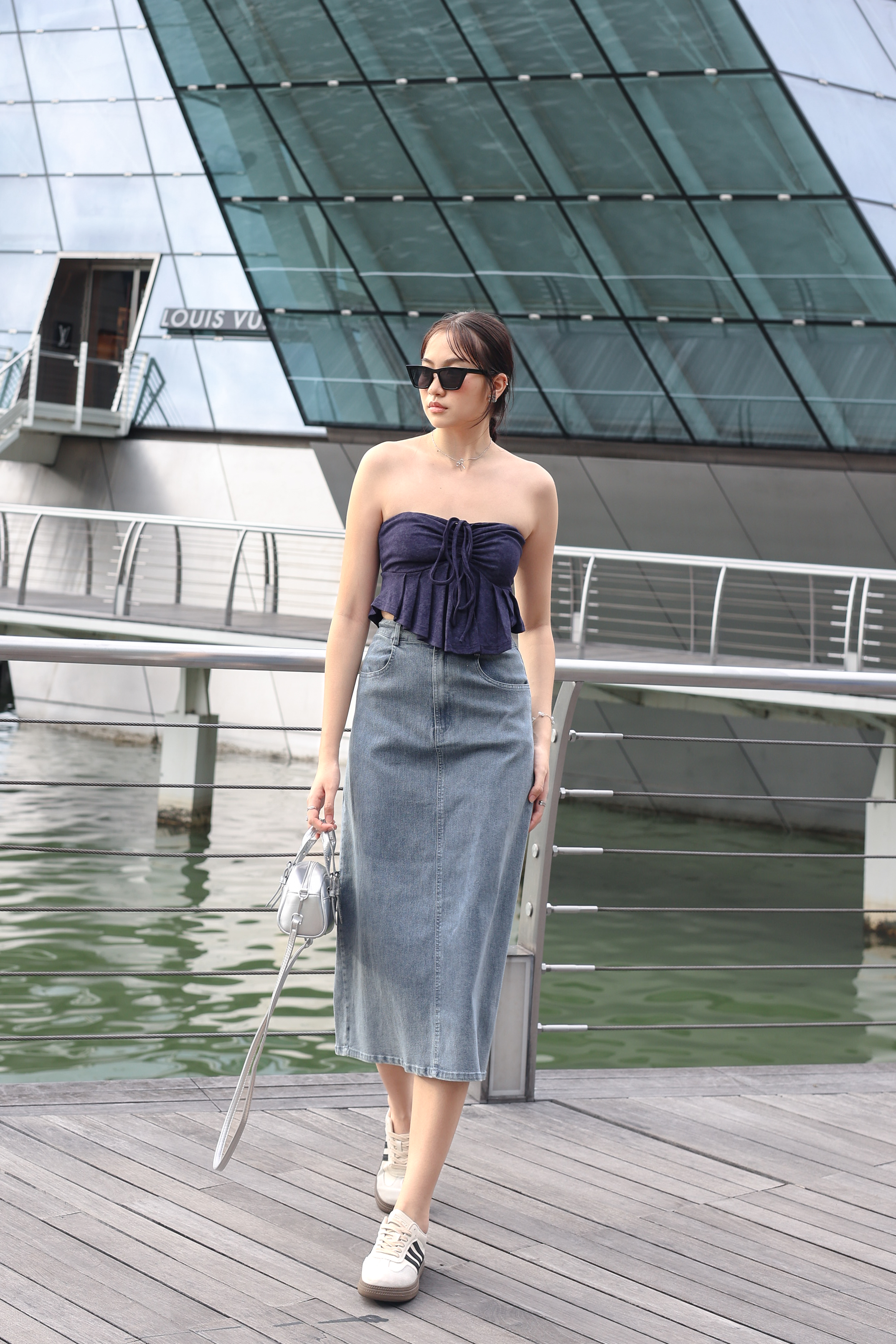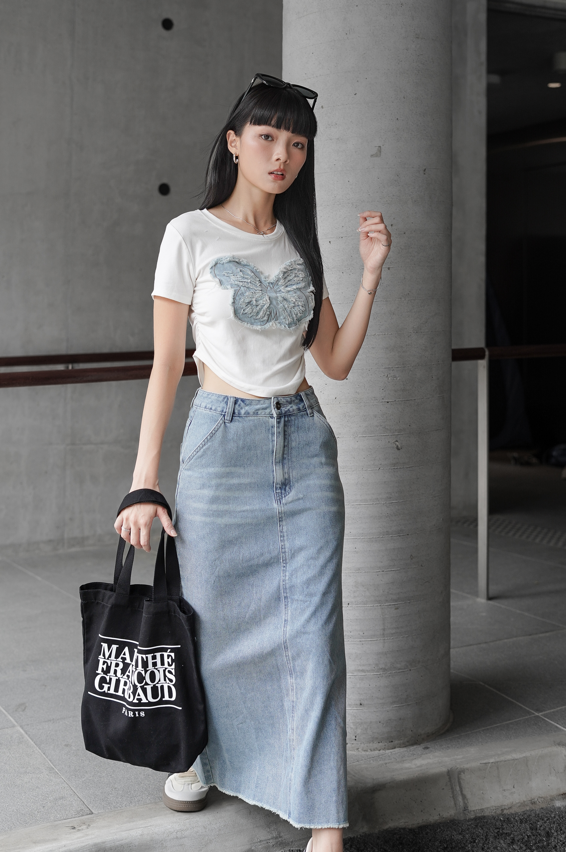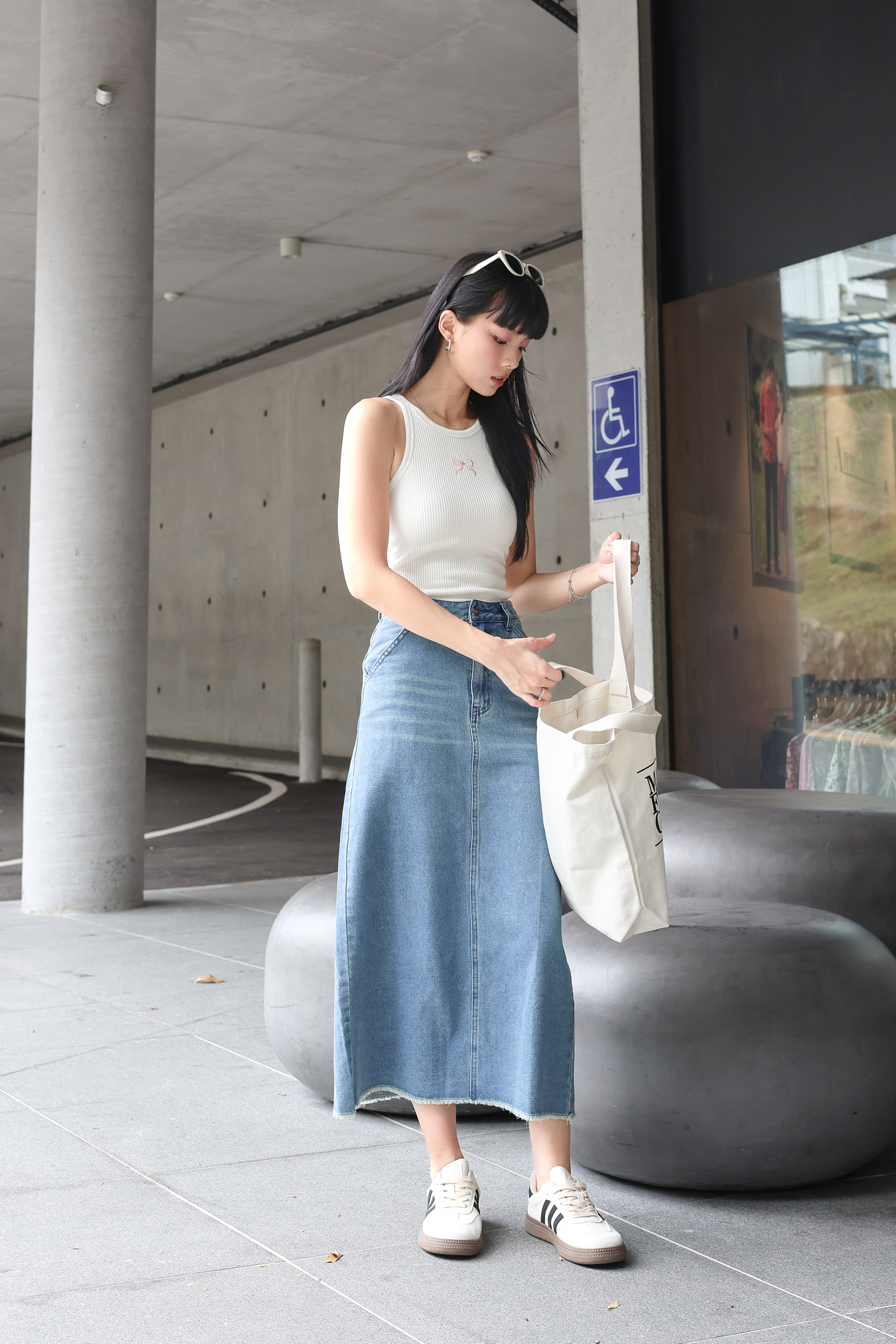 *TPZ* BASE DENIM MAXI SKIRT IN MID WASH