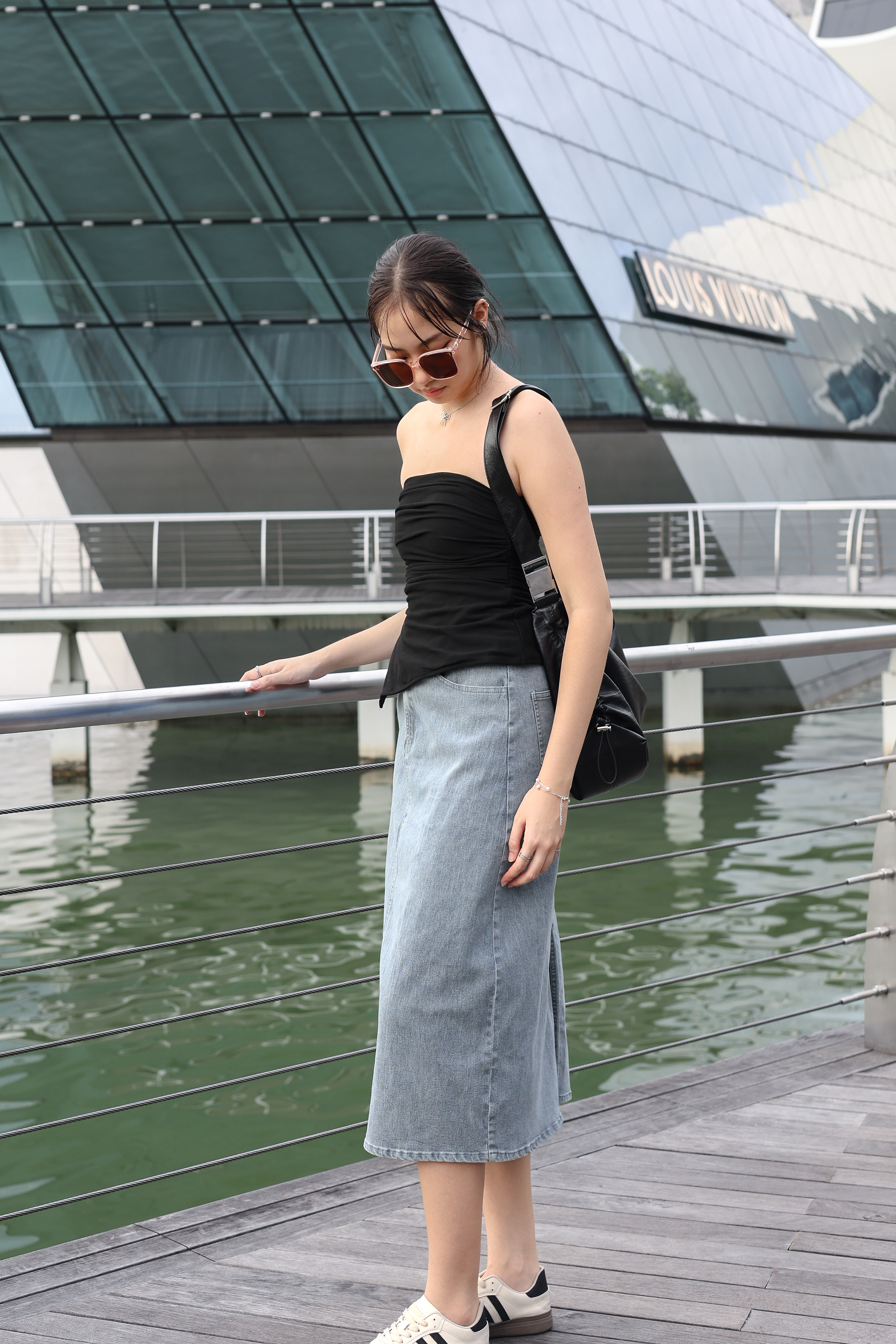 *TPZ* GAME CHANGER DENIM MAXI SKIRT IN BLACK