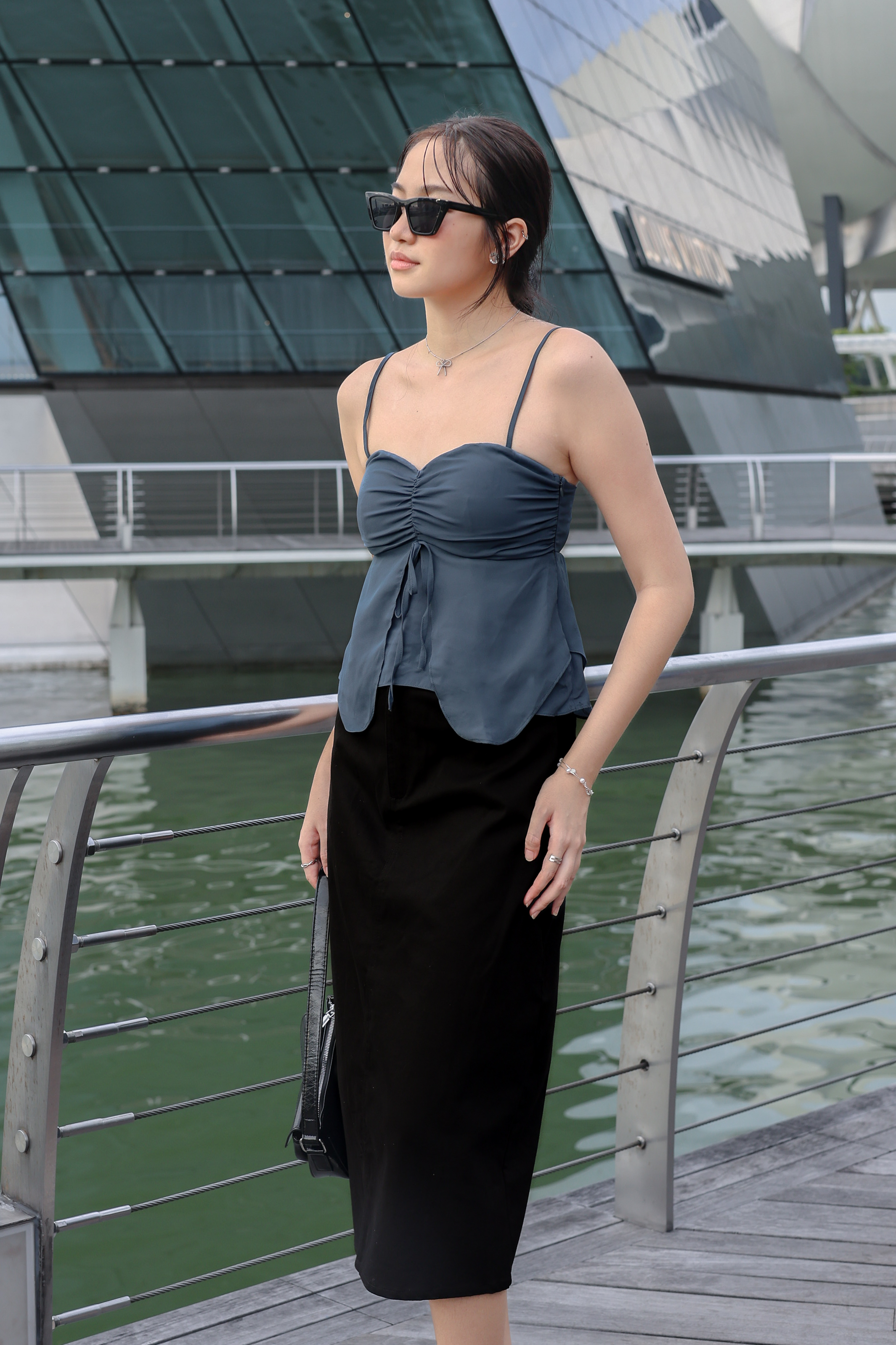 *TPZ* GENIE TIERED MAXI SKIRT IN GUNMETAL