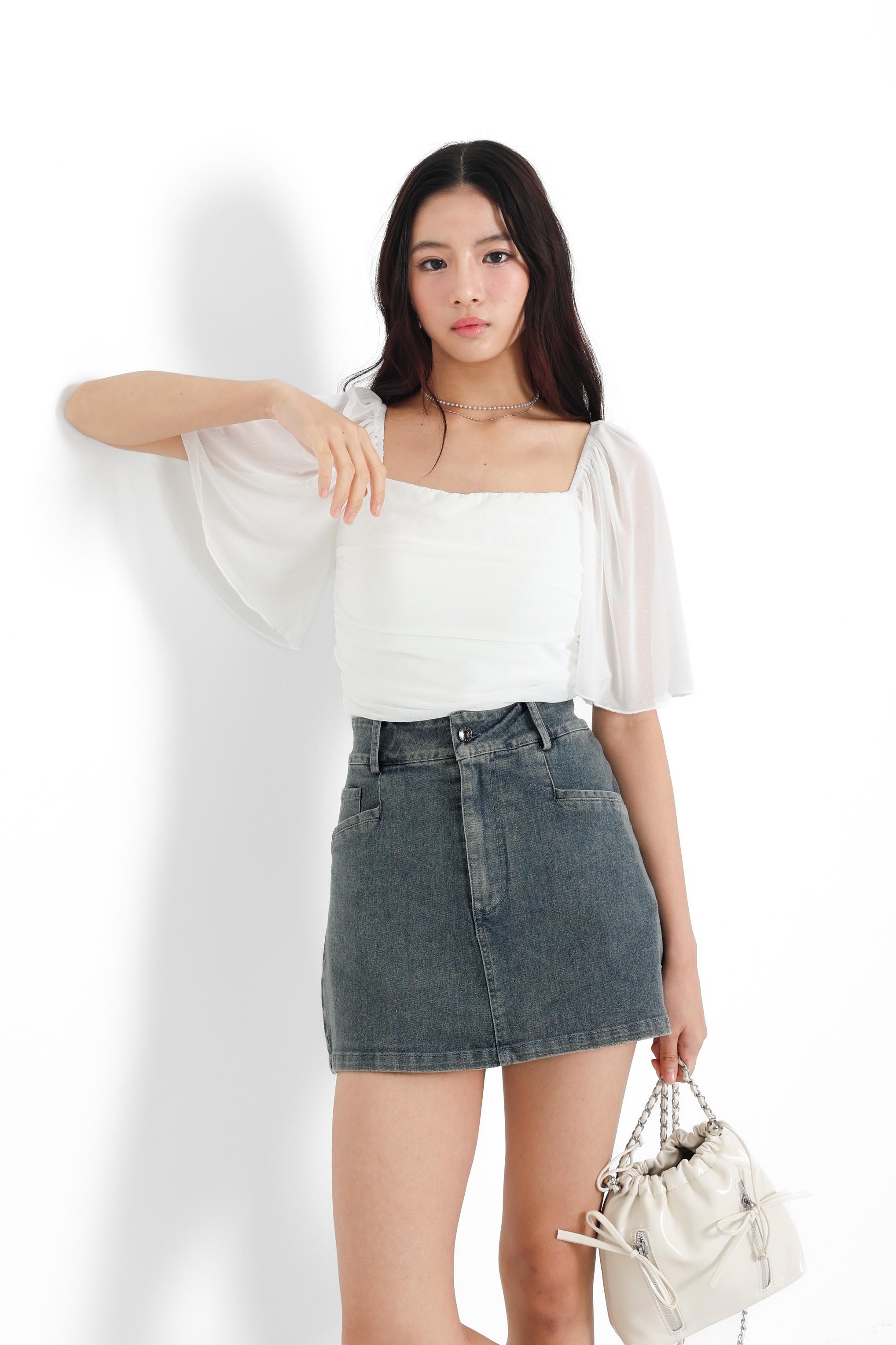 *TPZ* ENDEAR DENIM SKORTS (PETITE) IN WHITE