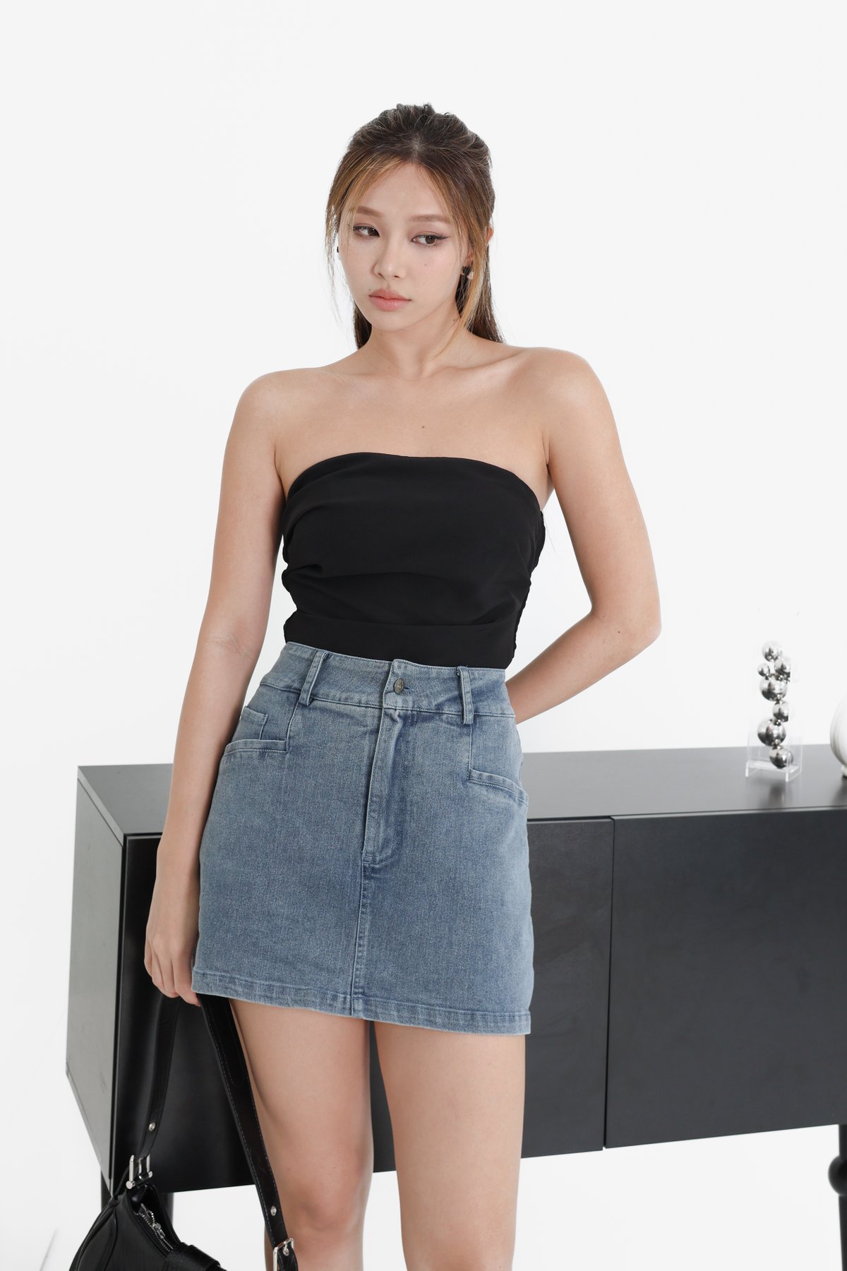 *TPZ* ENDEAR DENIM SKORTS (PETITE) IN BLACK