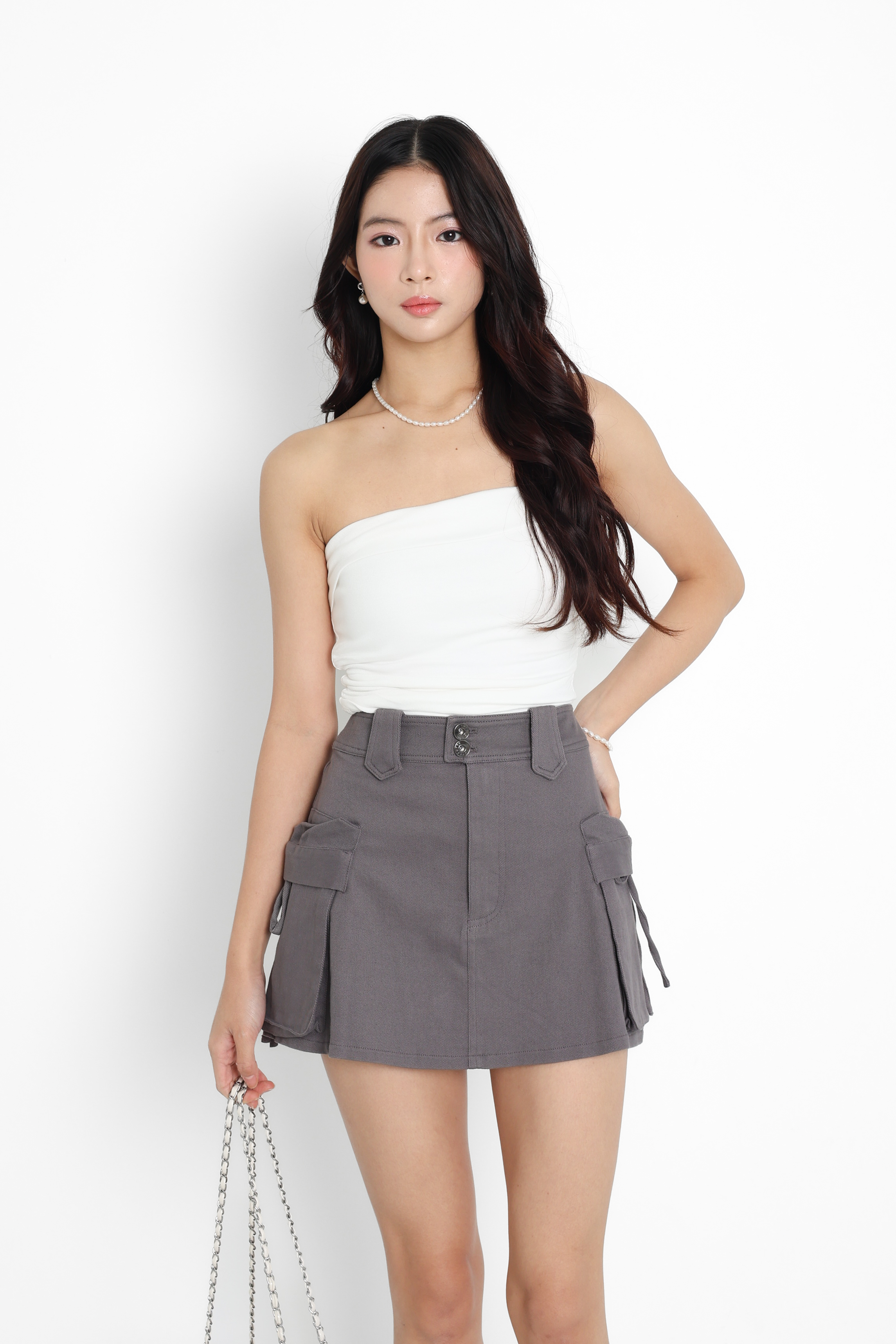 *TPZ* RIVELLE DENIM CARGO SKORTS (REGULAR) IN WHITE
