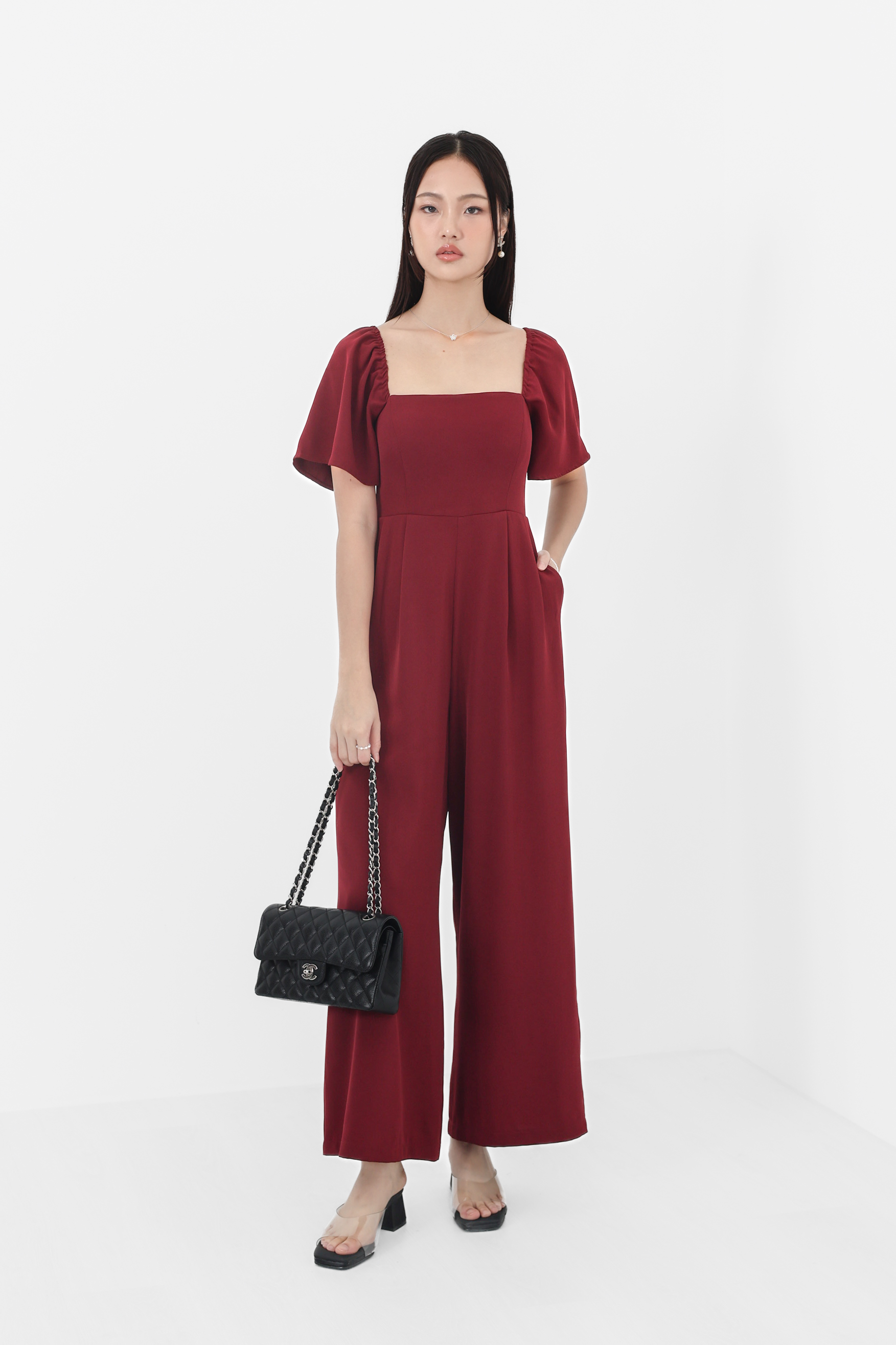 *TPZ* VENNA FLUTTER SLEEVES JUMPSUIT (REGULAR) IN WINE