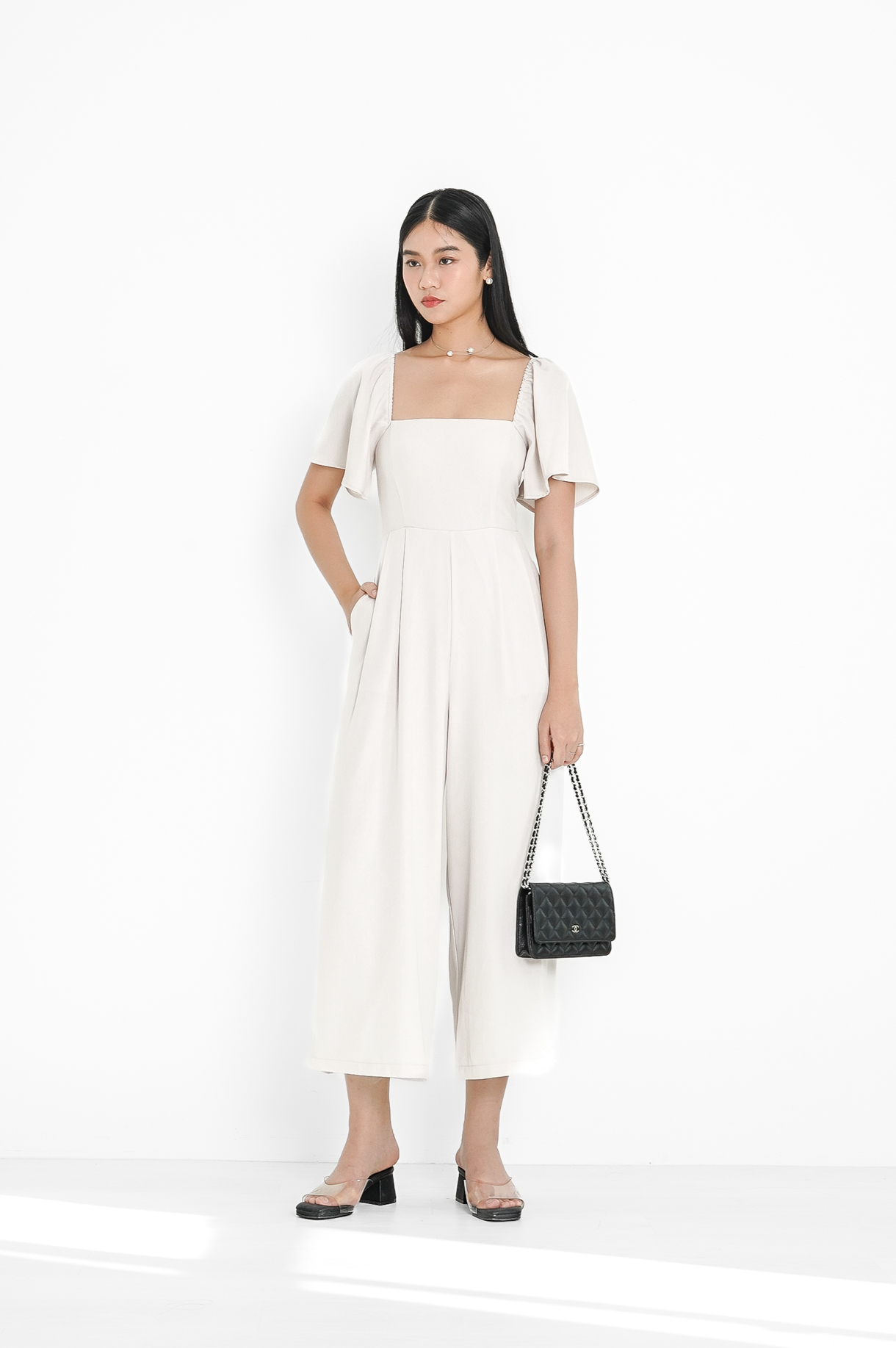 *TPZ* VENNA FLUTTER SLEEVES JUMPSUIT (REGULAR) IN IVORY PEARL
