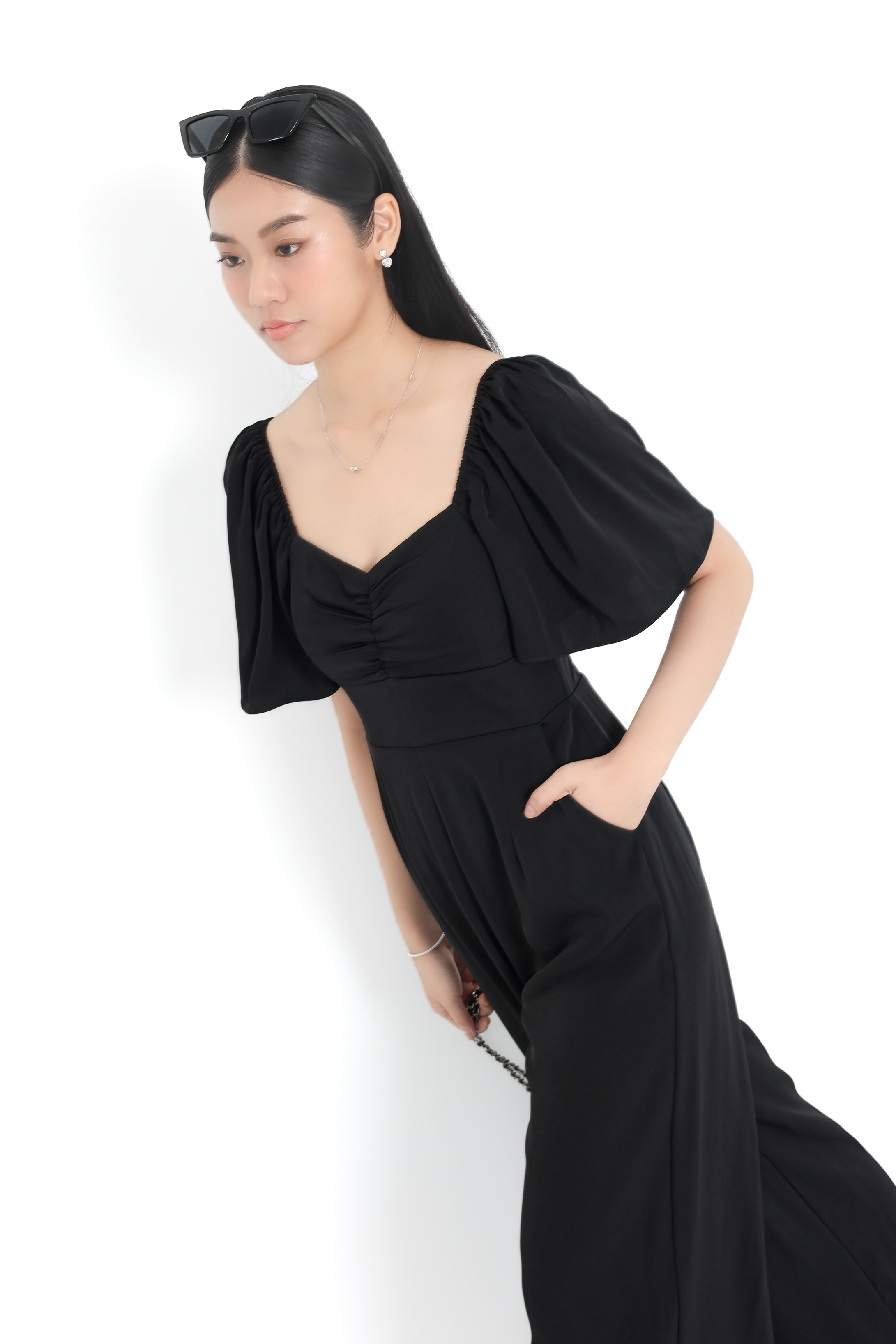 *TPZ* DYNASTY FLUTTER SLEEVES JUMPSUIT (REGULAR) IN BLACK