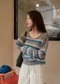 Oreo Horizontal Striped Y Neck Knitwear