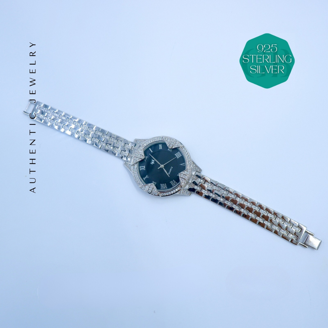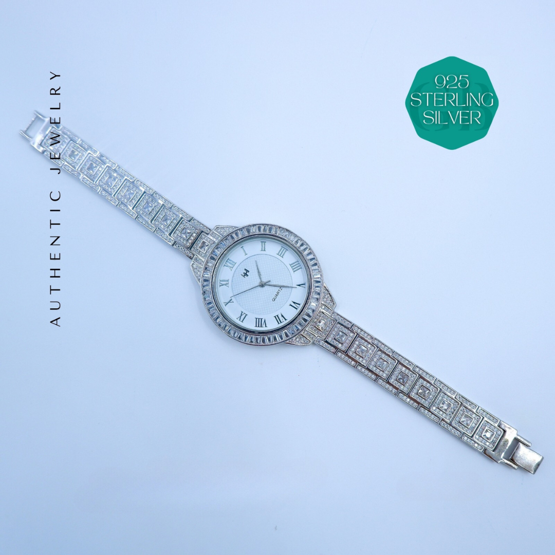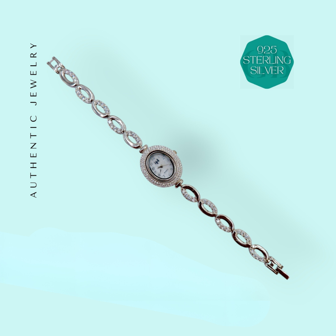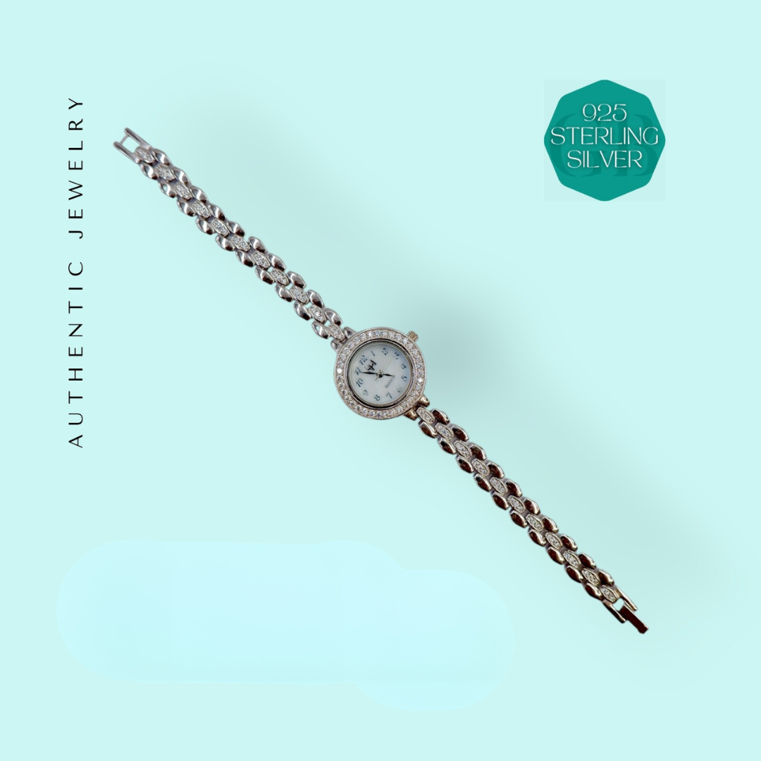 Ivory Elegance Silver Watch with Premium CZ Stones