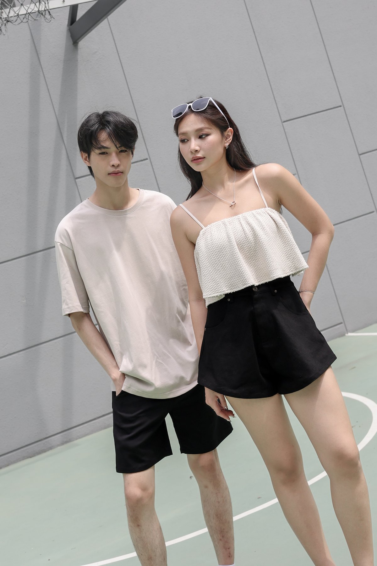 *TPZ* GOLDEN DAYS SLANT HEM SHORTS 5.0 IN MILK TEA (196)