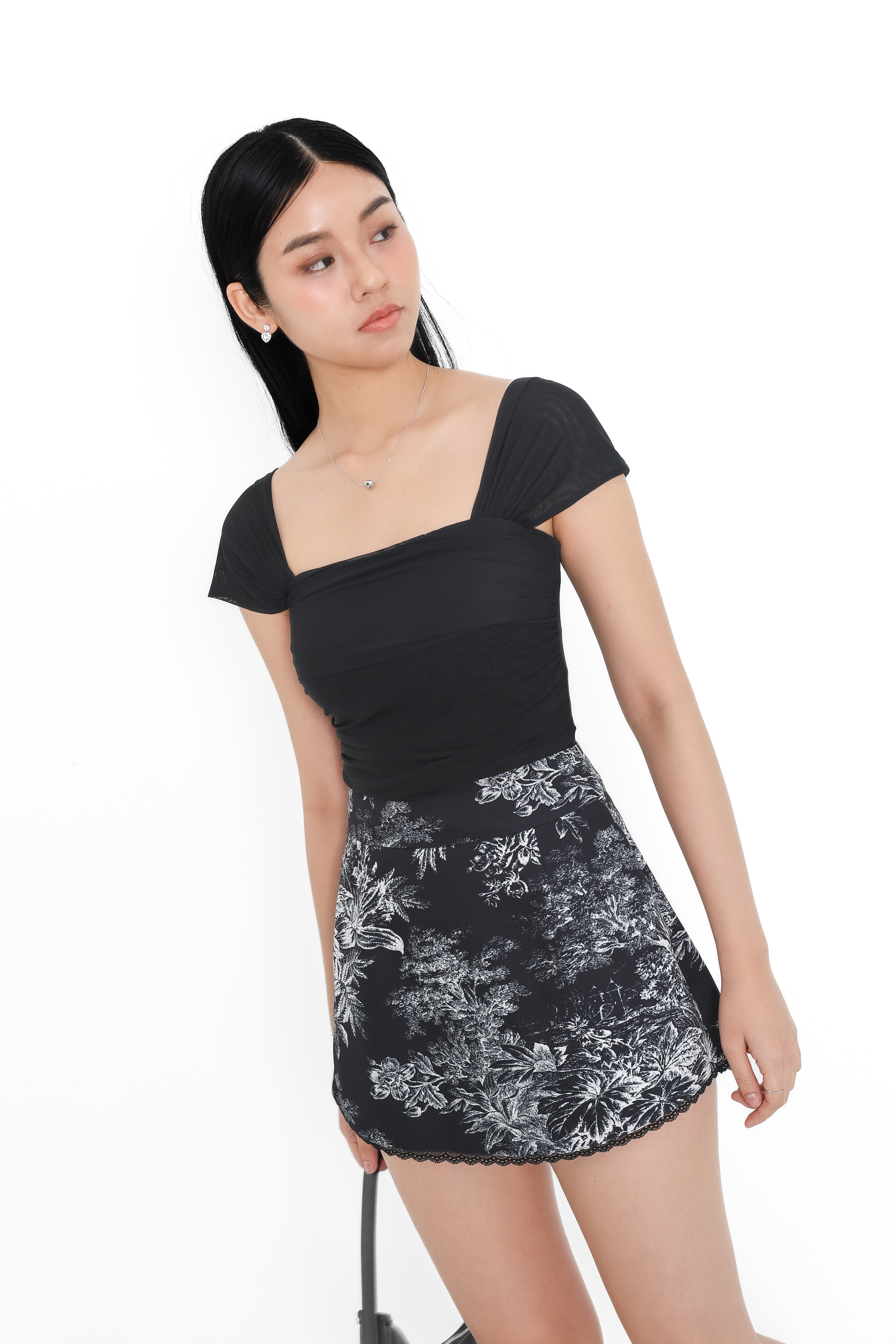 *TPZ* BAMBI LACE TRIM SKORTS IN SIGNATURE BLACK TOILE
