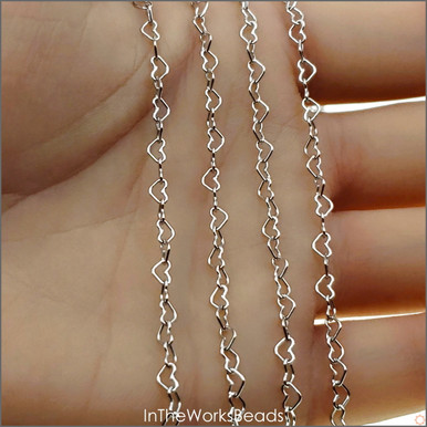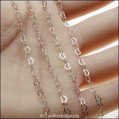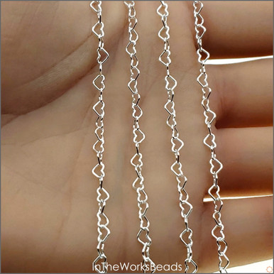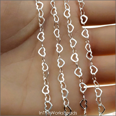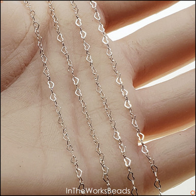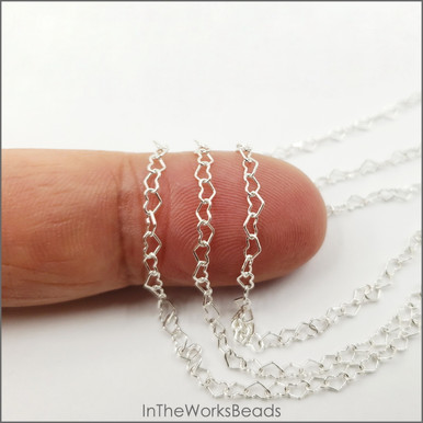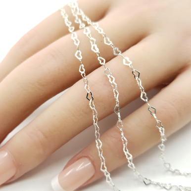 Sterling Silver 3mm Heart Link Chain. 24 Gauge
