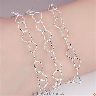 Sterling Silver Heart Link Chain 4mm x 5mm