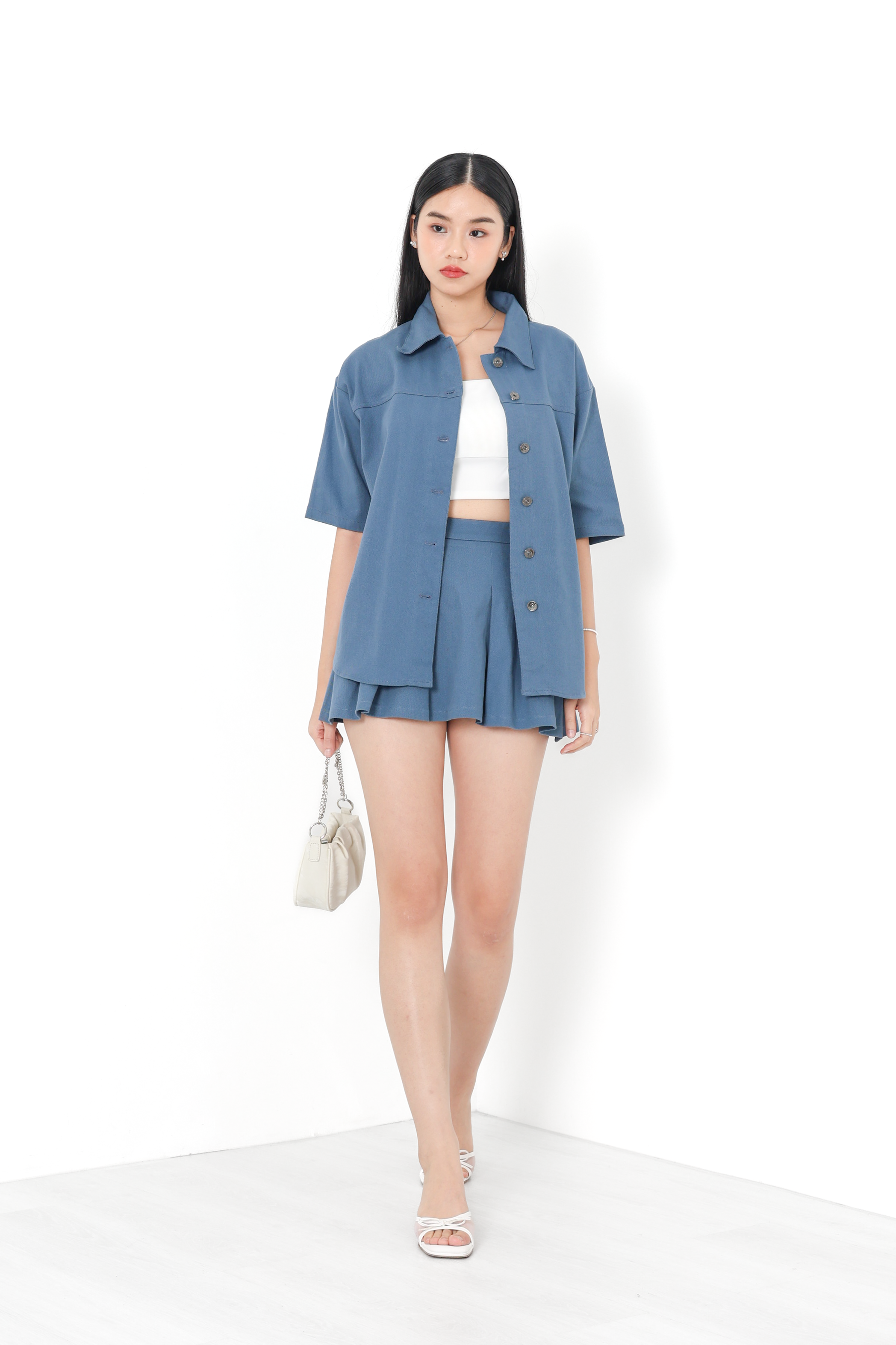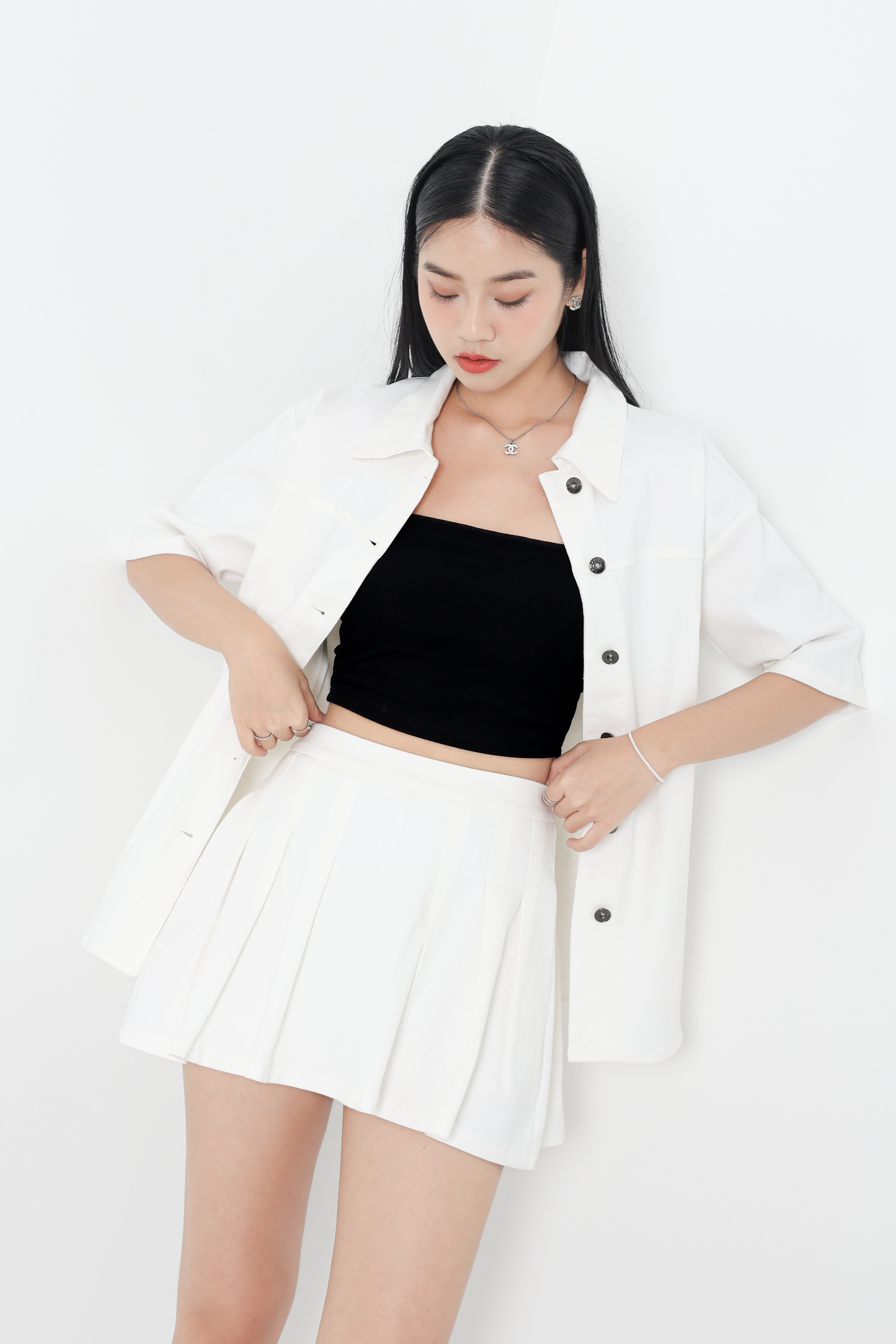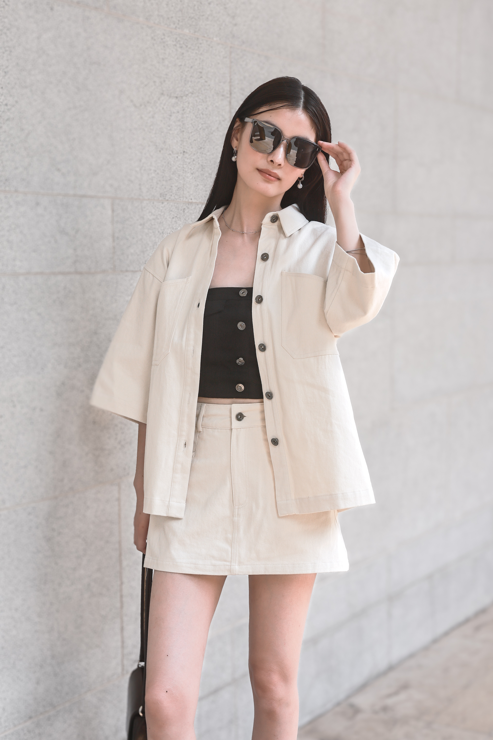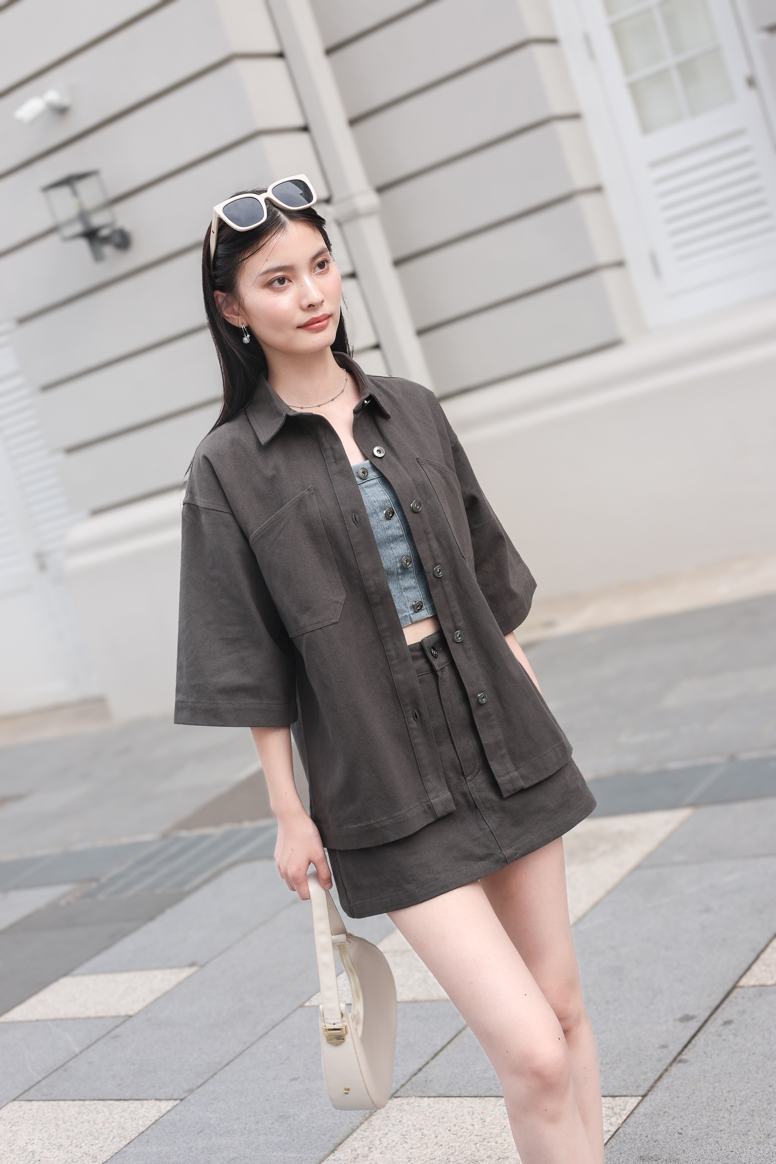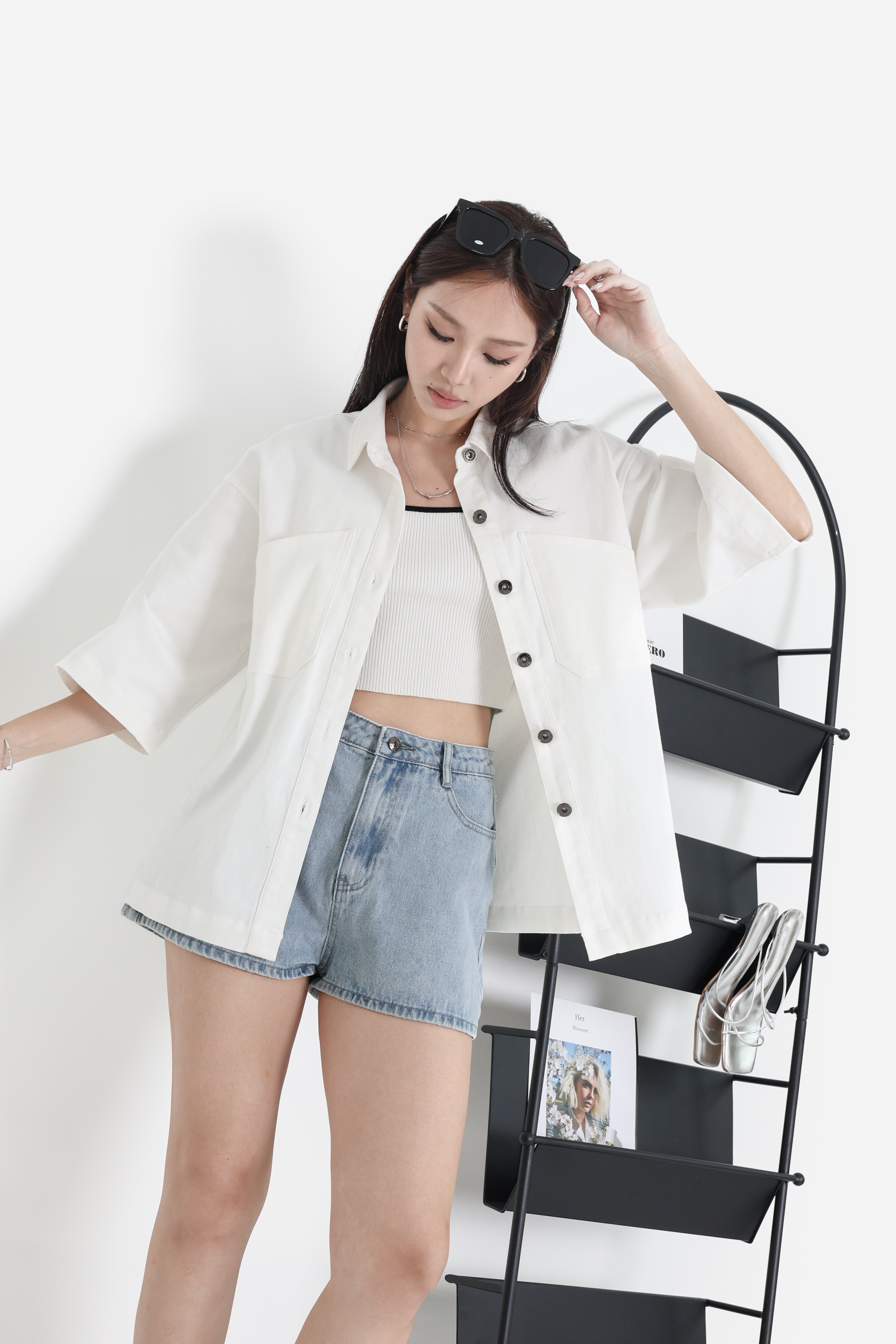 *TPZ* APEX UNISEX DENIM SHORT SLEEVES SHIRT/ JACKET IN WHITE