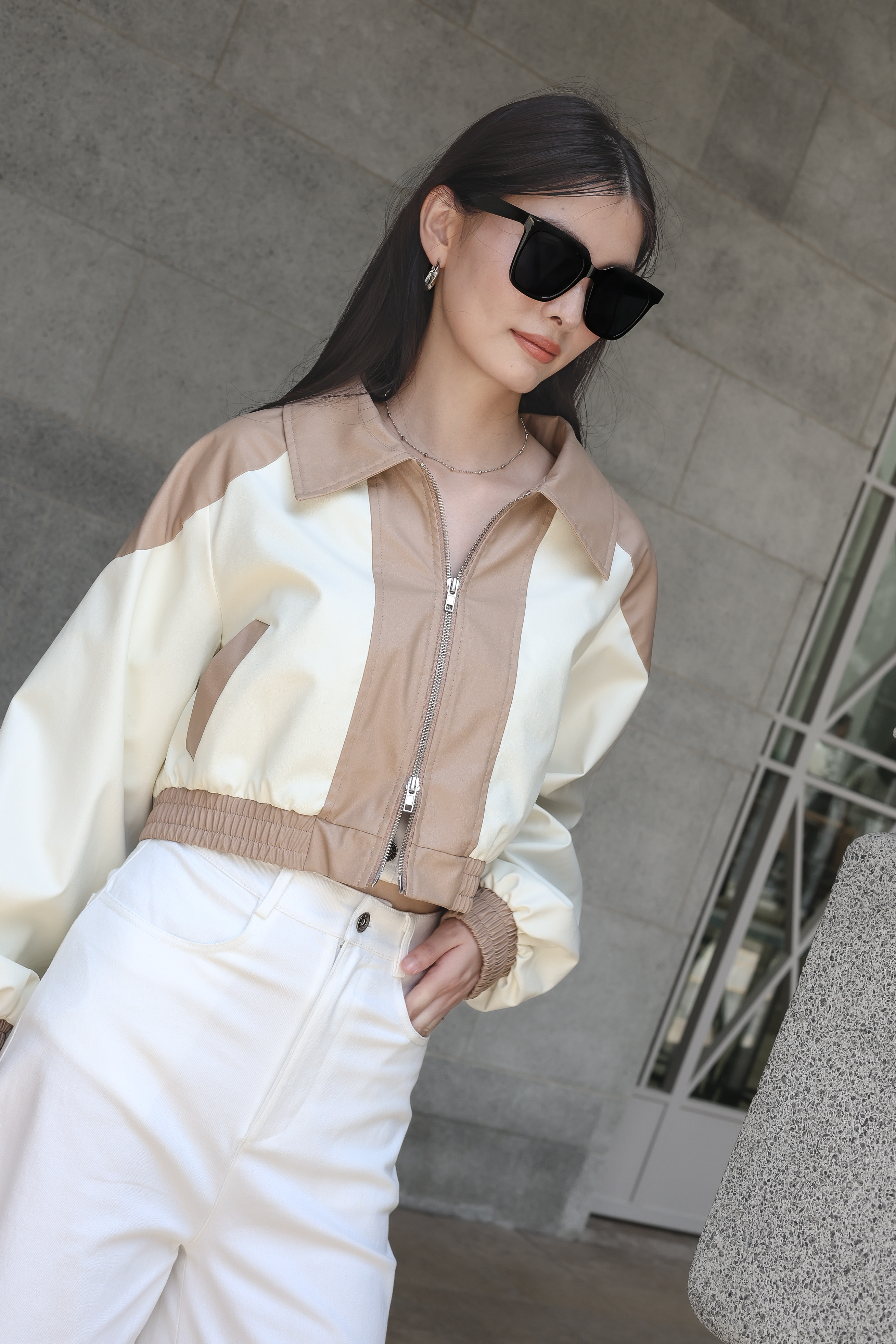 *TPZ* BOSTON FAUX LEATHER JACKET IN CREAM WHITE