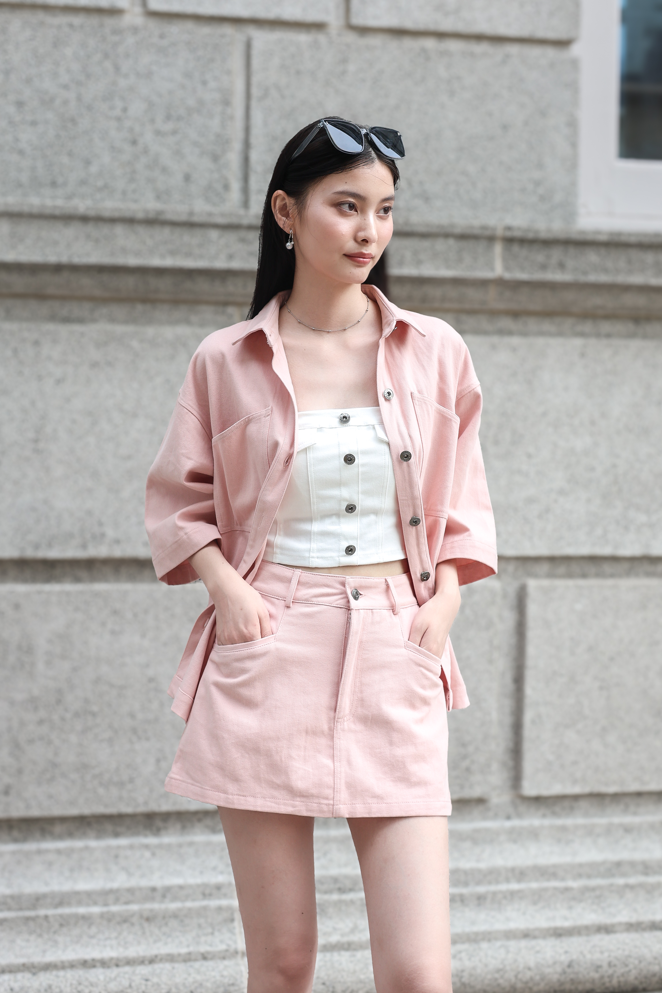 *TPZ* TADASHI DENIM KIMONO JACKET TOP IN BABY PINK