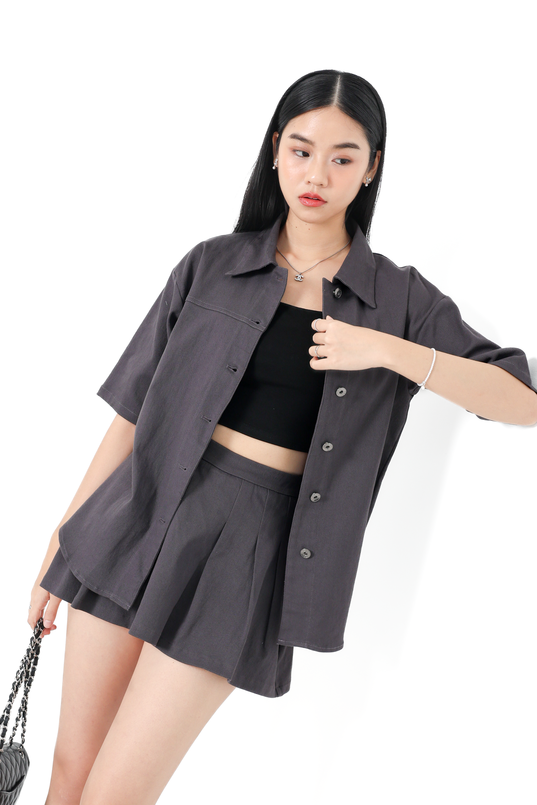 *TPZ* APEX UNISEX DENIM SHORT SLEEVES SHIRT/ JACKET IN GUNMETAL LAVENDER