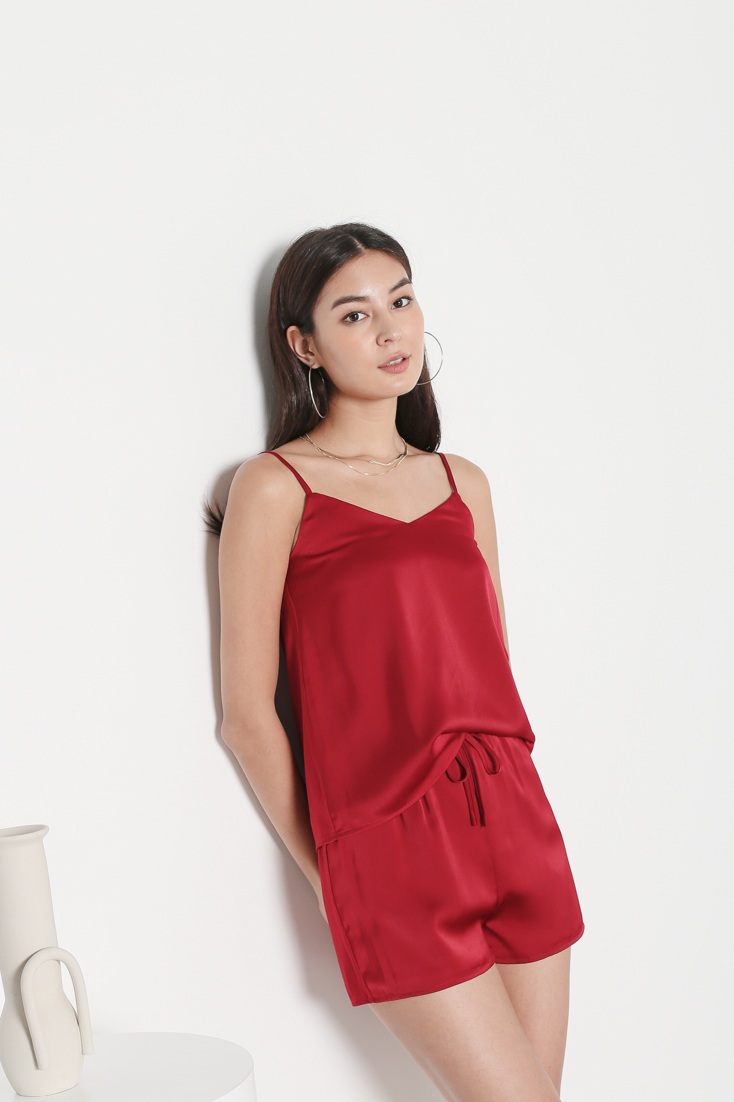 *TPZ* AVERY SATIN LOUNGE SHORTS IN WINE RED