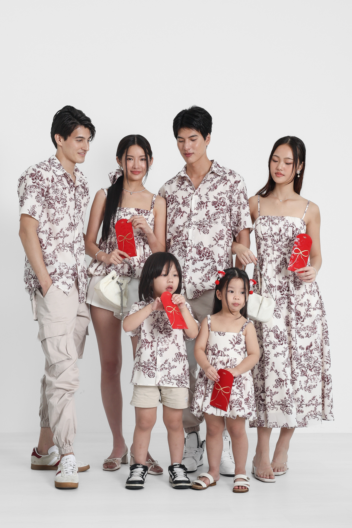 *MINI TOPAZETTE* LITTLE DREMY SHIRT IN TOILE DE HAPPINESS IVORY WINE