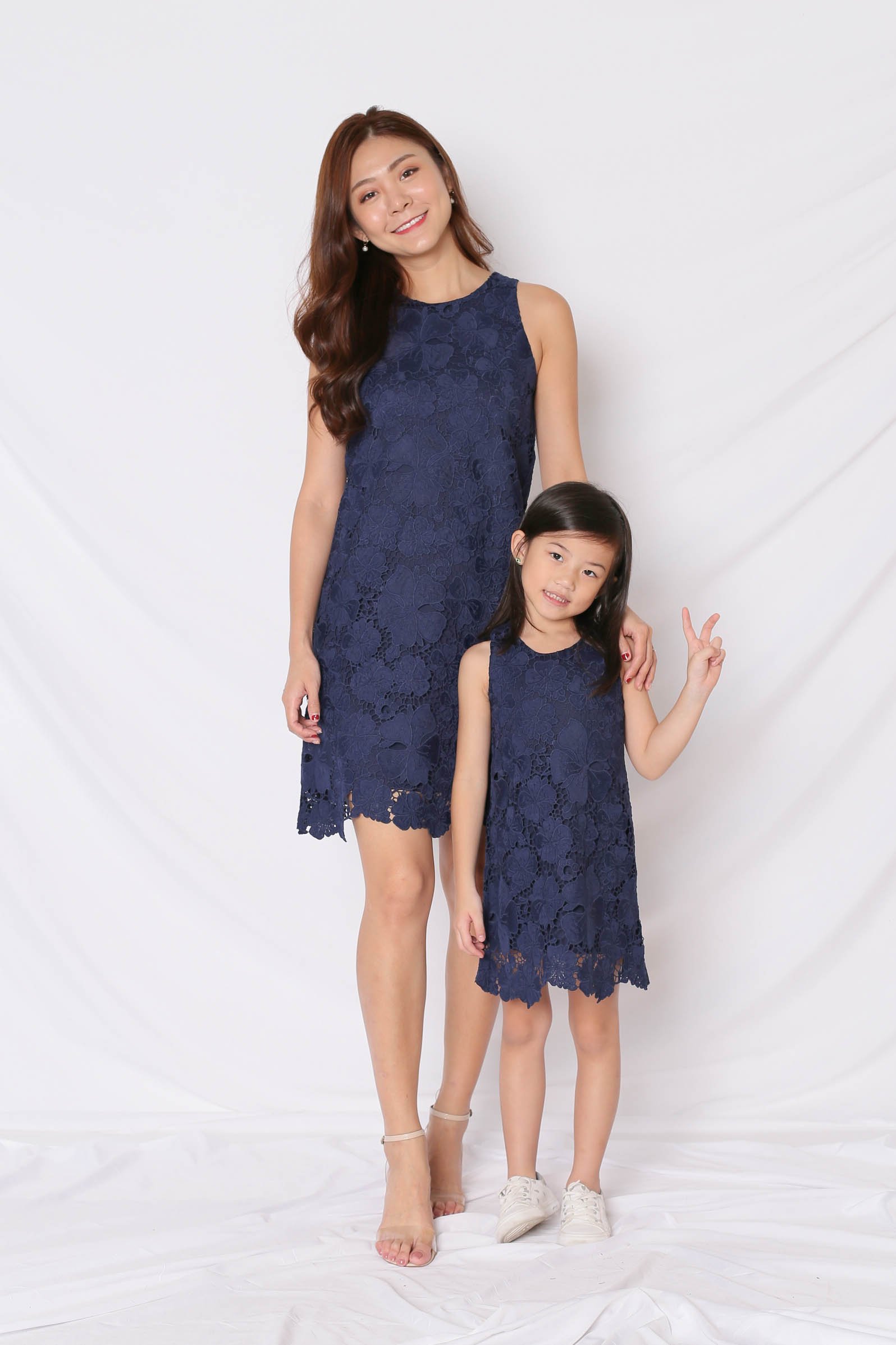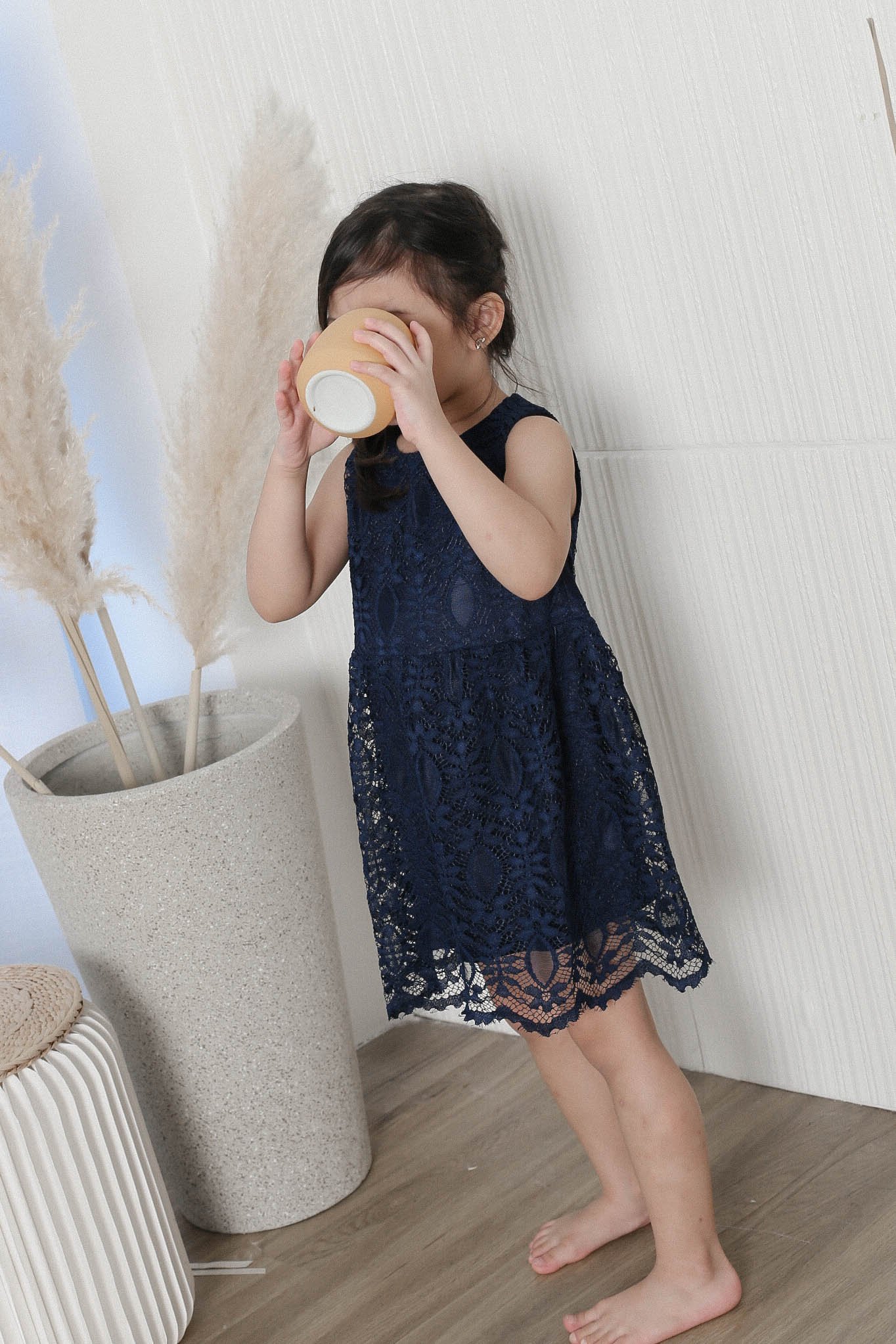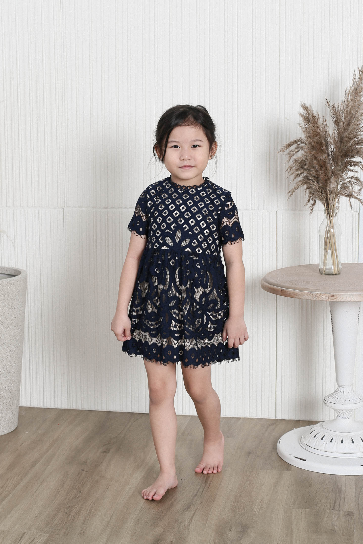 *LITTLE TOPAZETTE* WENDI LACE SKATER DRESS IN NAVY