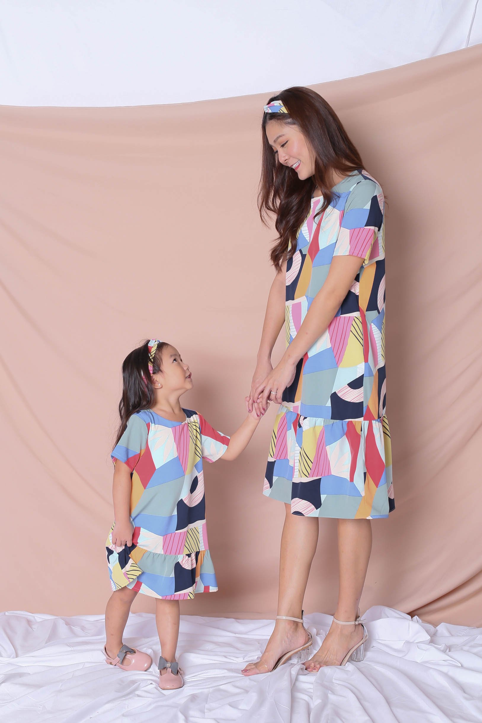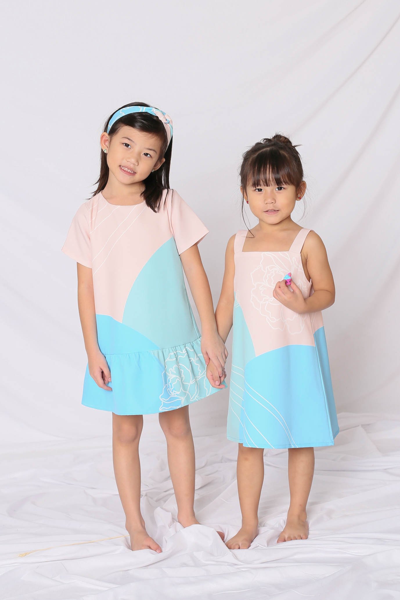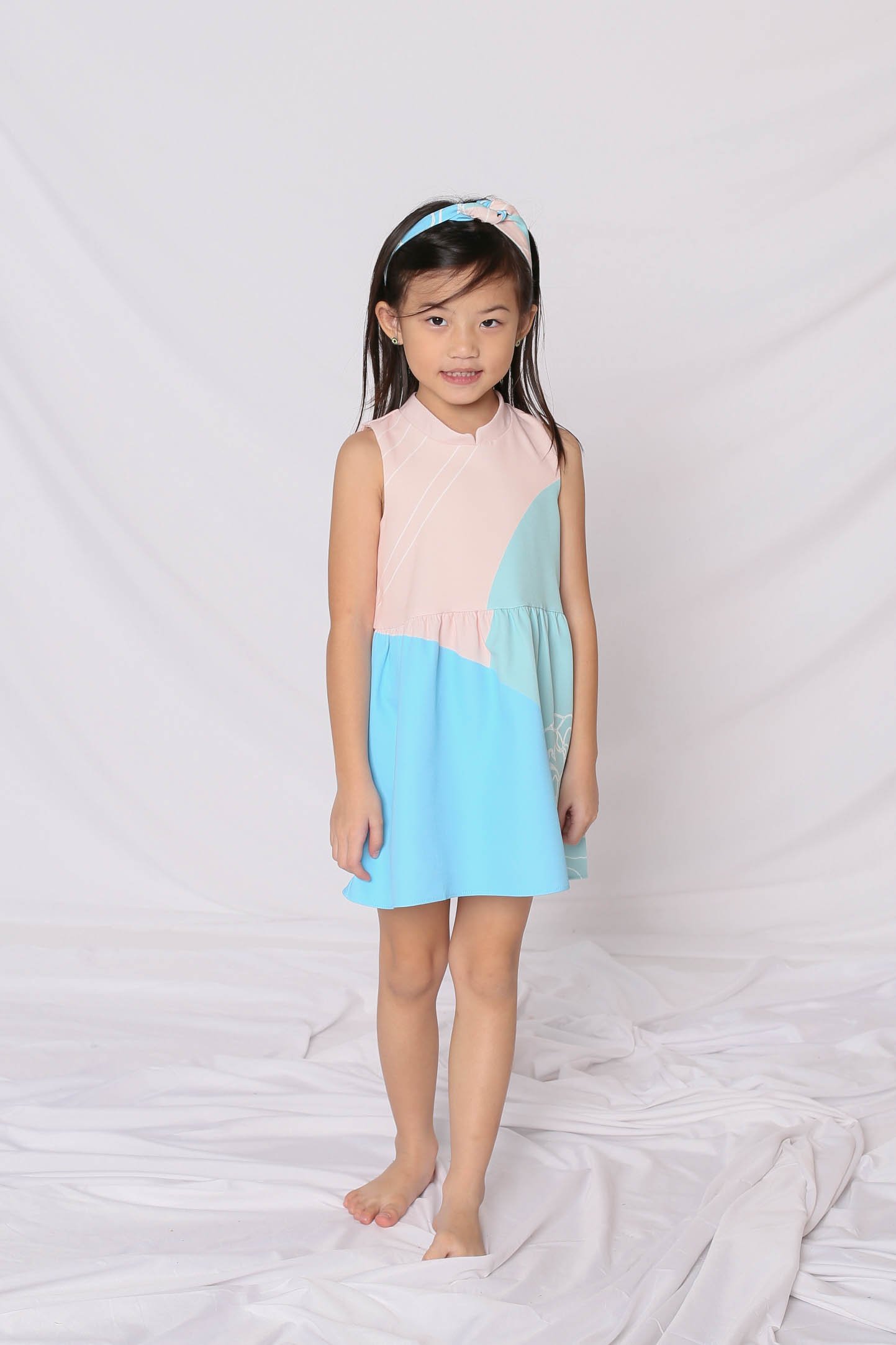 *LITTLE TOPAZETTE* THE COLOURFUL ABSTRACT DROP WAIST DRESS (VERSION 1) BLUE/PINK