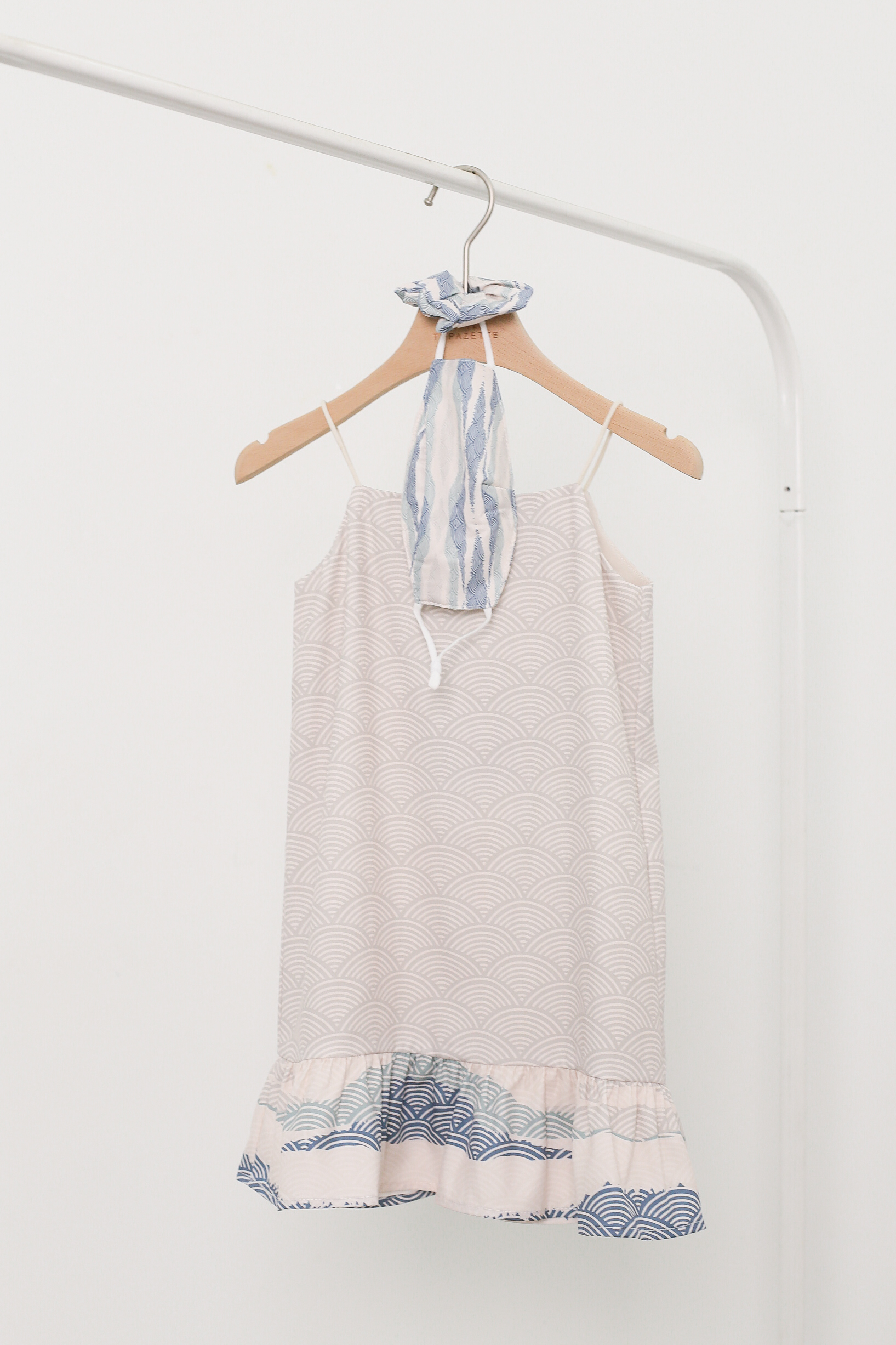 *LITTLE TOPAZETTE* JAP PRINTED SERIES TRAPEZE DRESS (KIDS) IN KANAGAWA WAVE *WITH MASK & SCRUNCHIE*