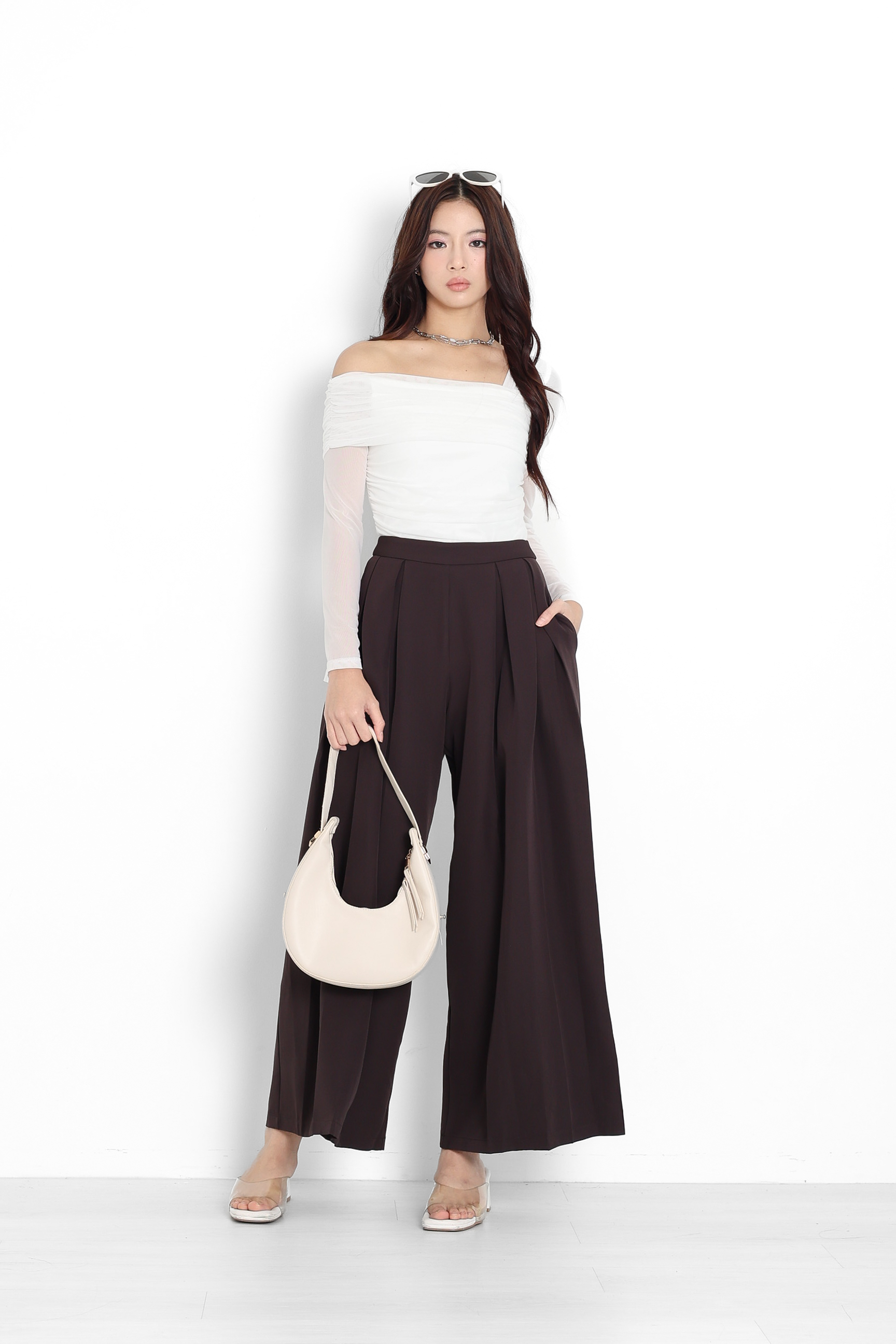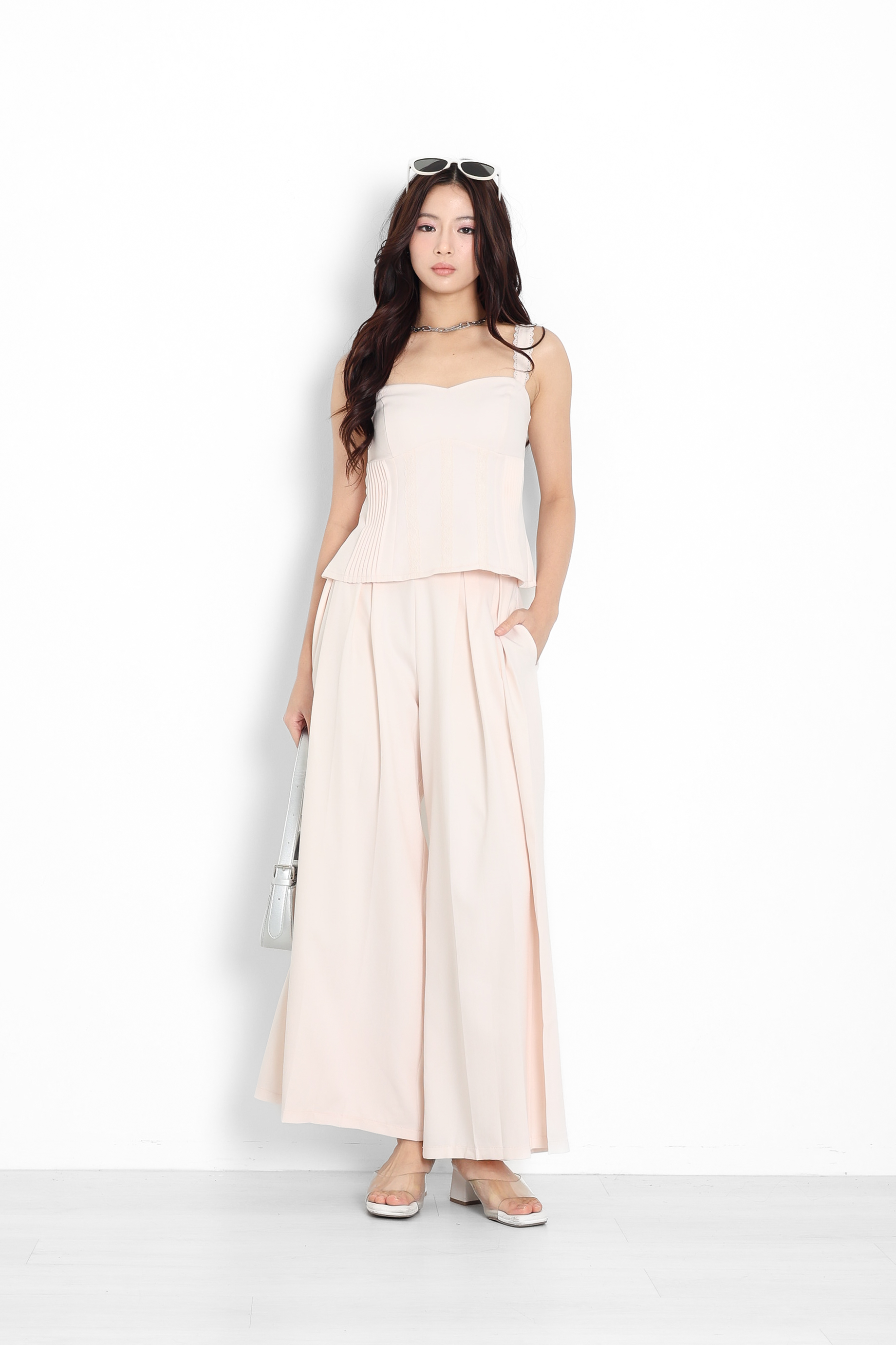 *TPZ* KALA HIGH WAISTED PLEATED PANTS (REGULAR) IN CHAMPAGNE PEARL