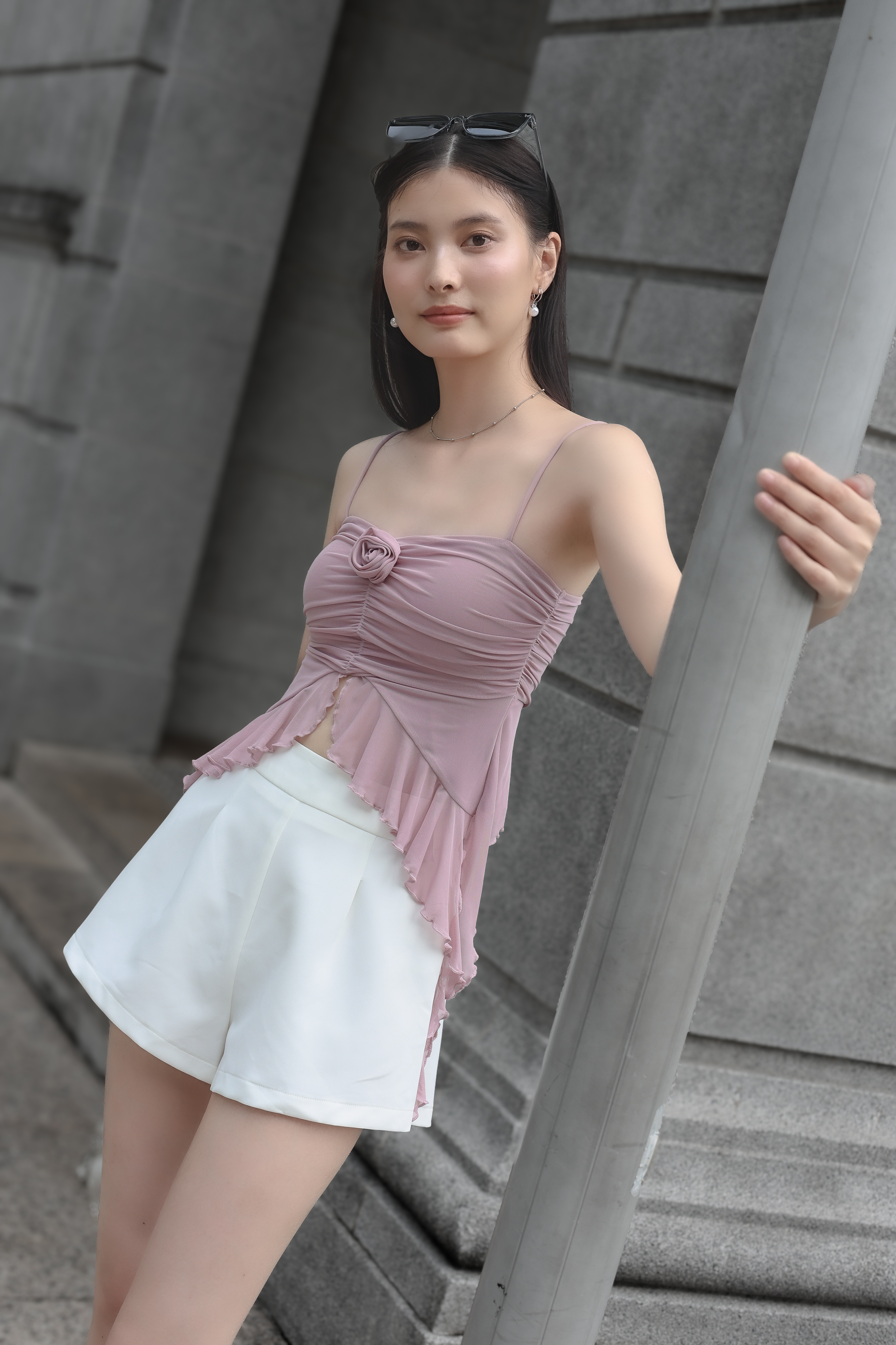 *TPZ LUXE MESH* DYNASTY FLUTTER SLEEVES TOP 5.0 IN ICE PINK
