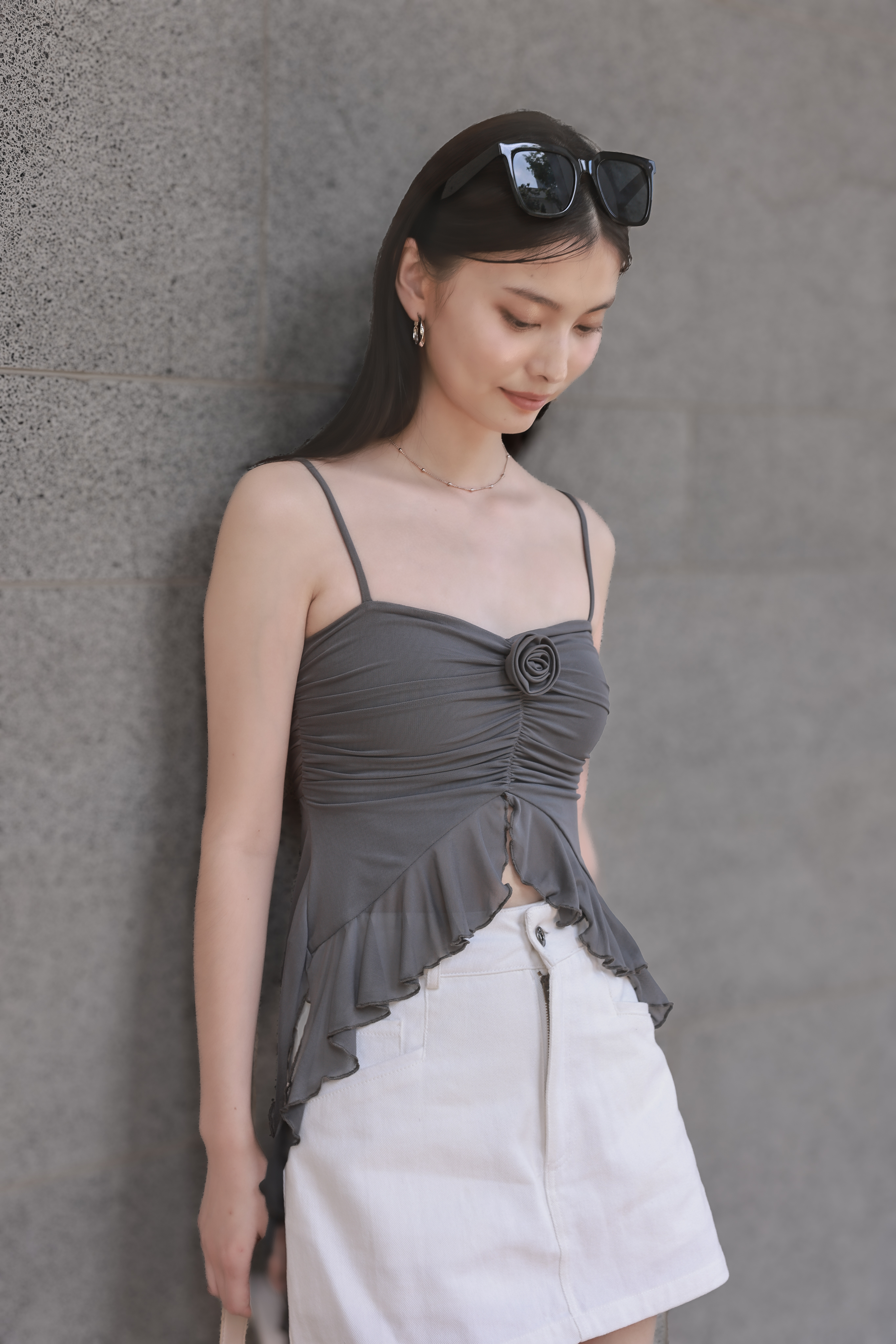 *TPZ LUXE MESH* JELLYFISH ROSE MESH PADDED TOP IN GUNMETAL GREY