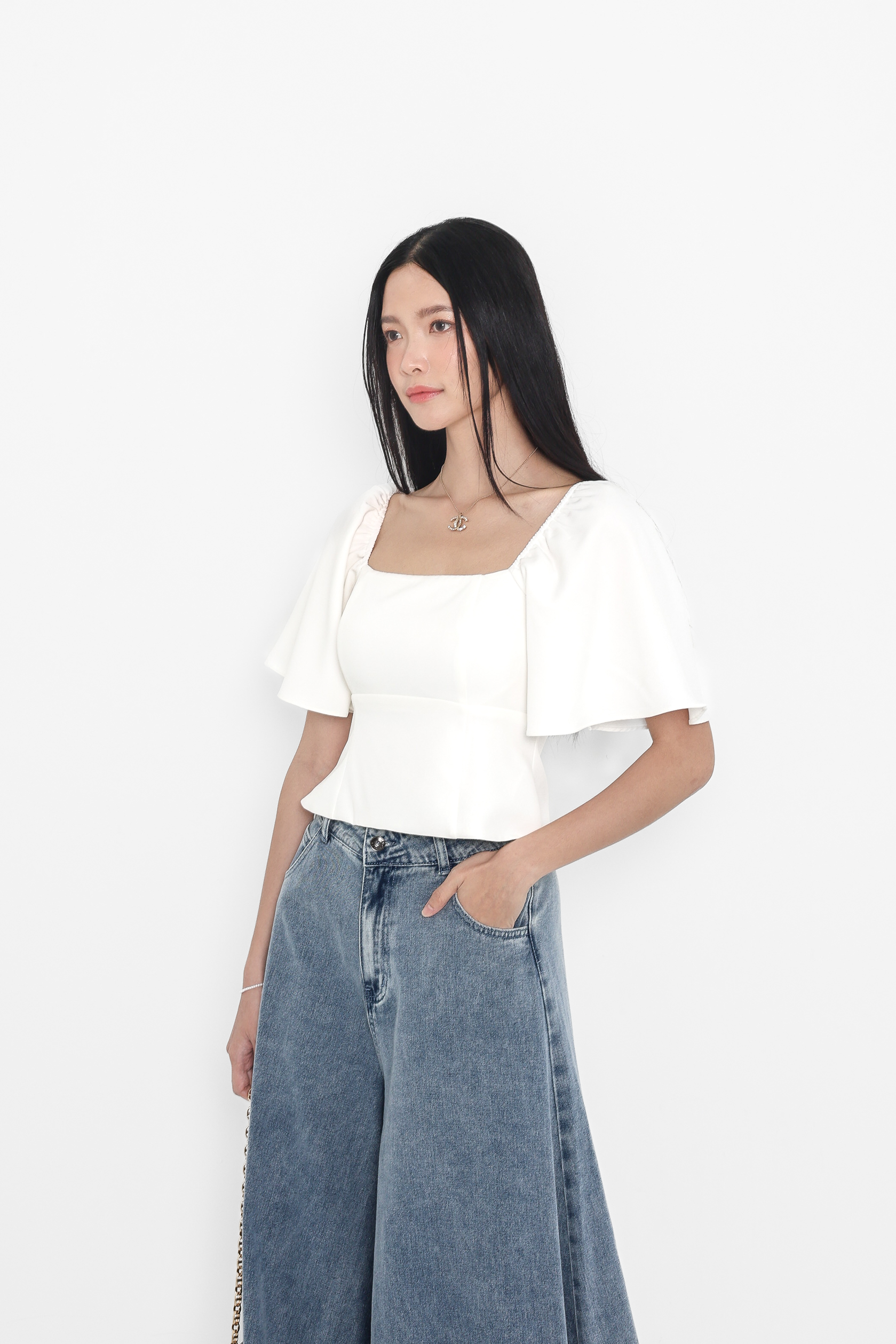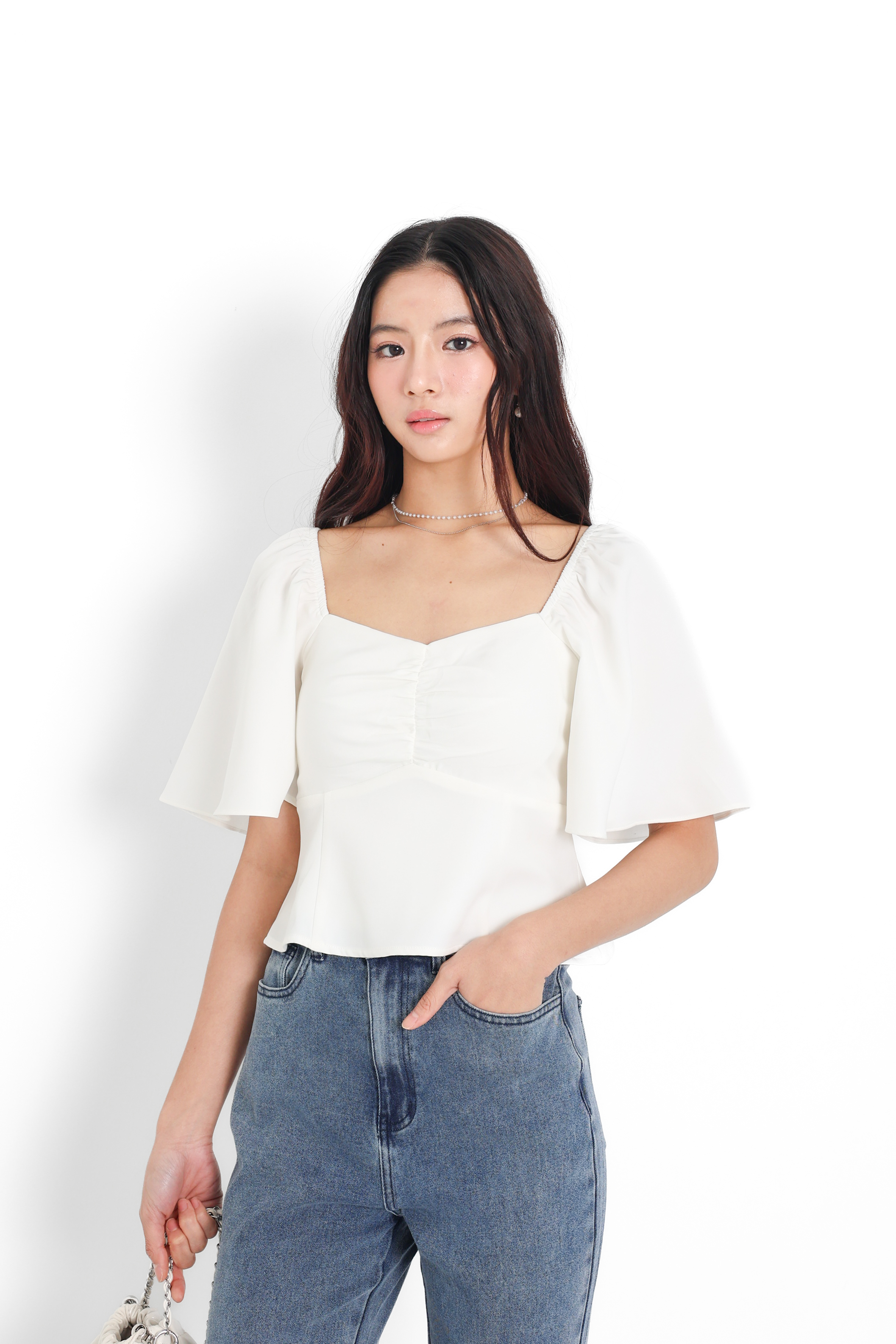 *TPZ* BLAIR FLUTTER SLEEVES TOP IN WHITE