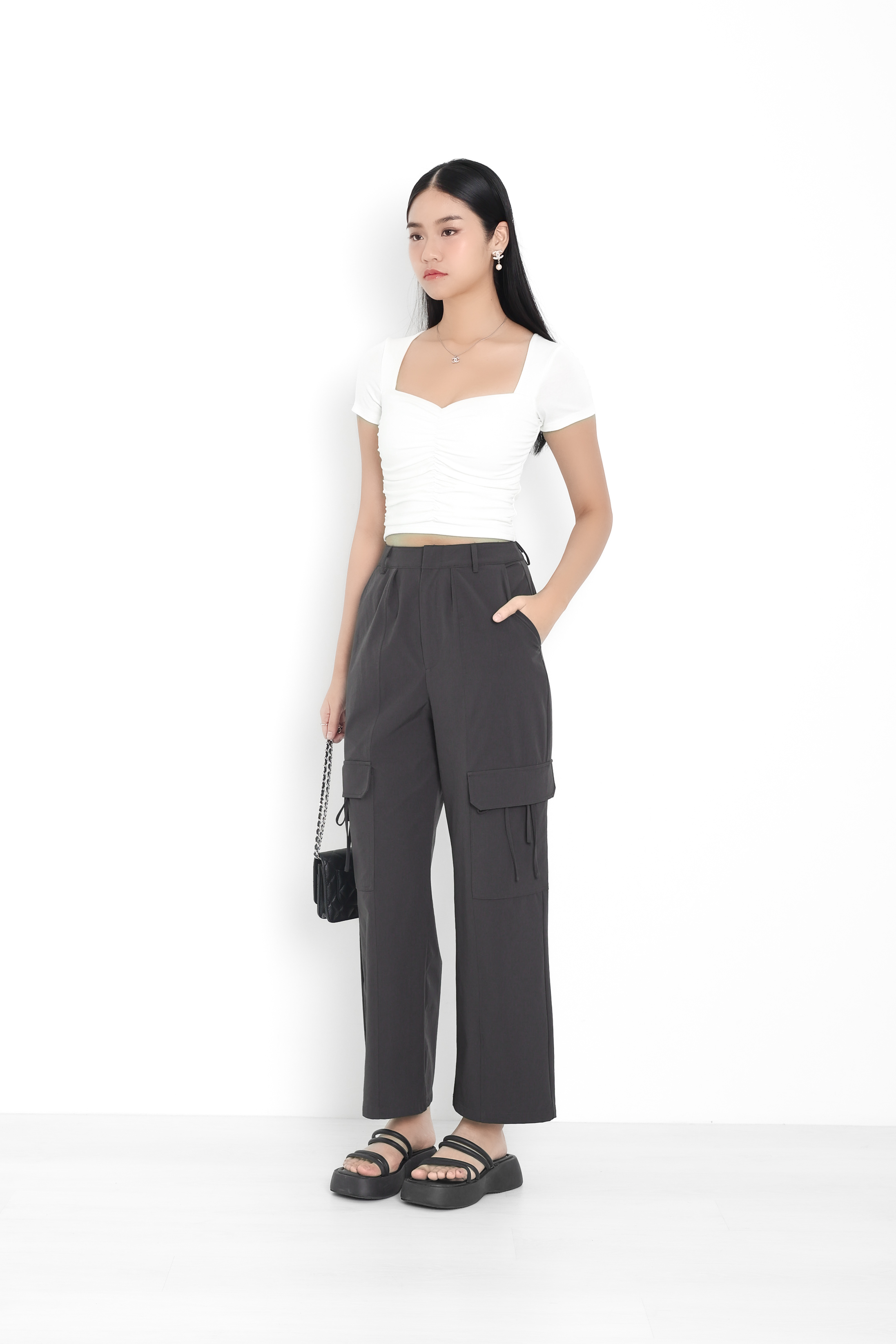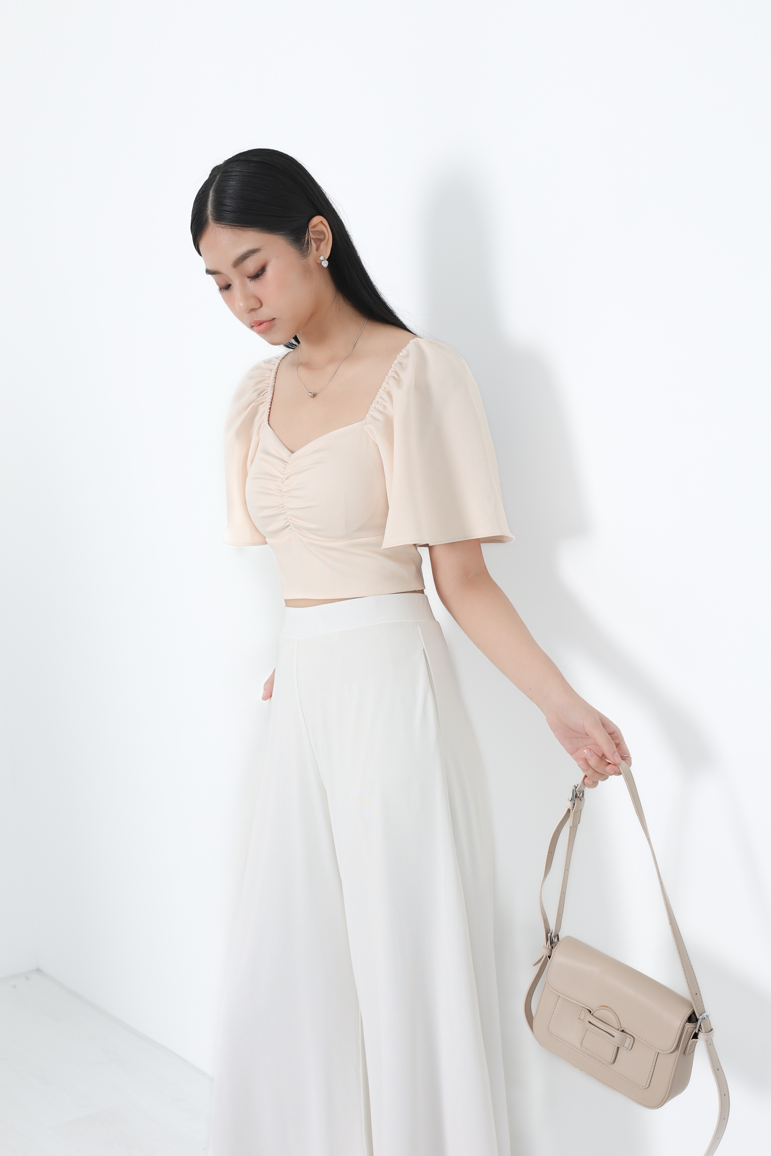 *TPZ* PERFECT RUCHED SWEETHEART BASIC TOP IN WHITE