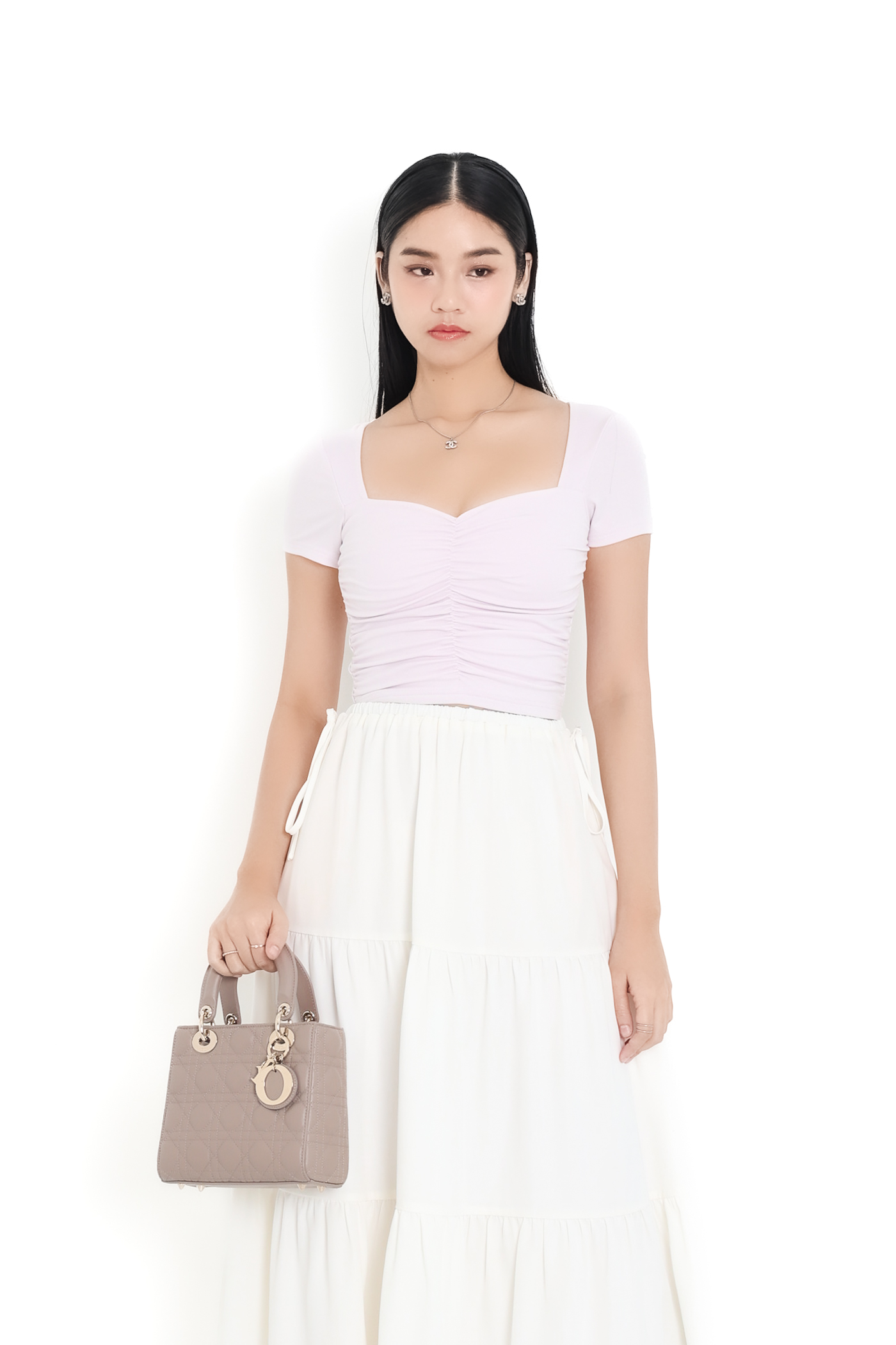 *TPZ* PERFECT RUCHED SWEETHEART BASIC TOP IN ICE LILAC