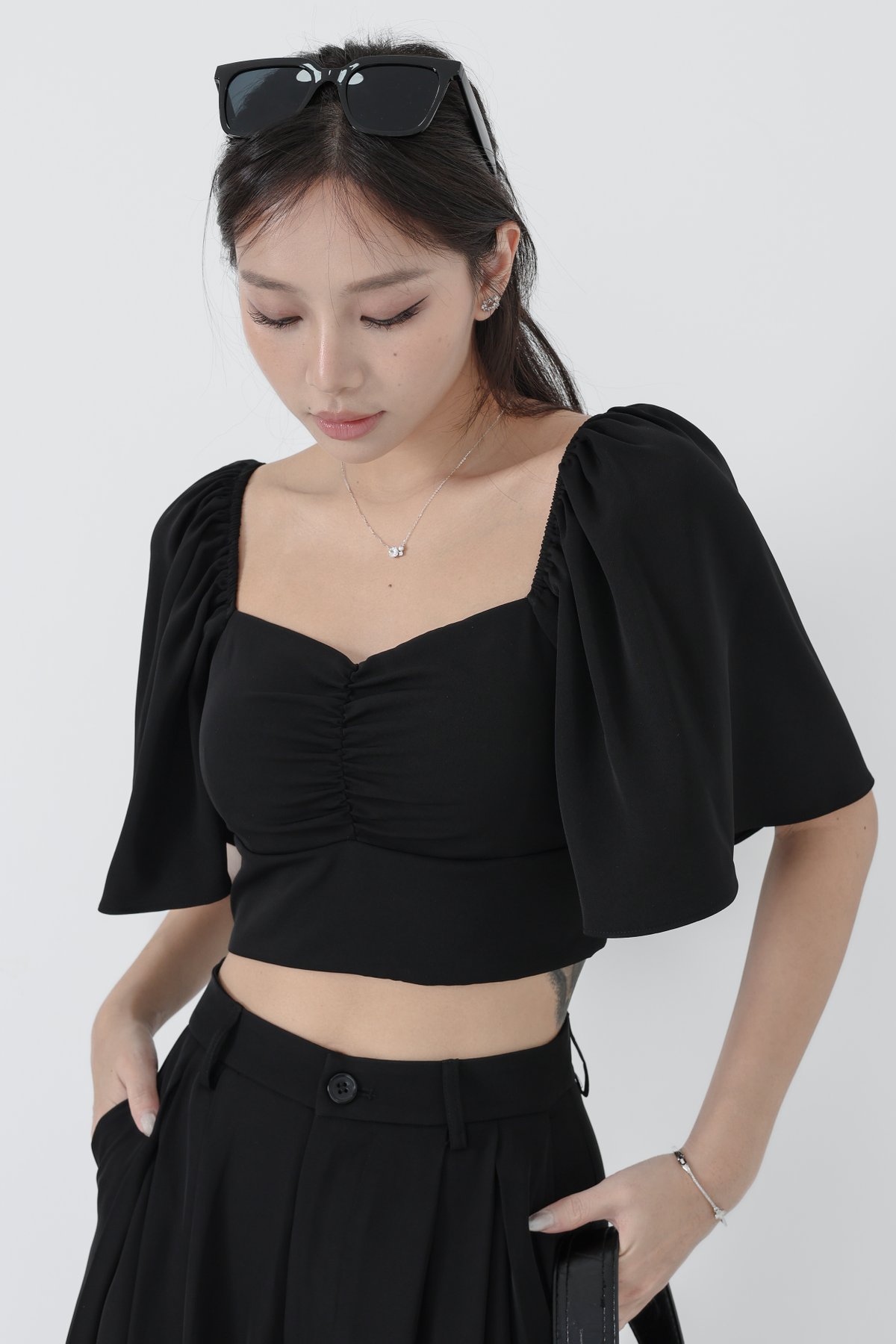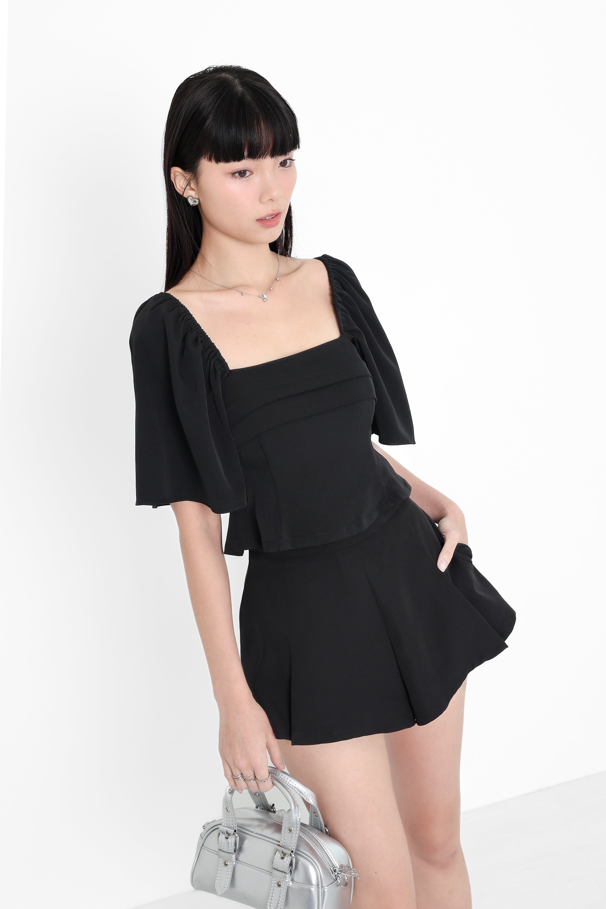 *TPZ* DYNASTY FLUTTER SLEEVES TOP 4.0 IN BLACK