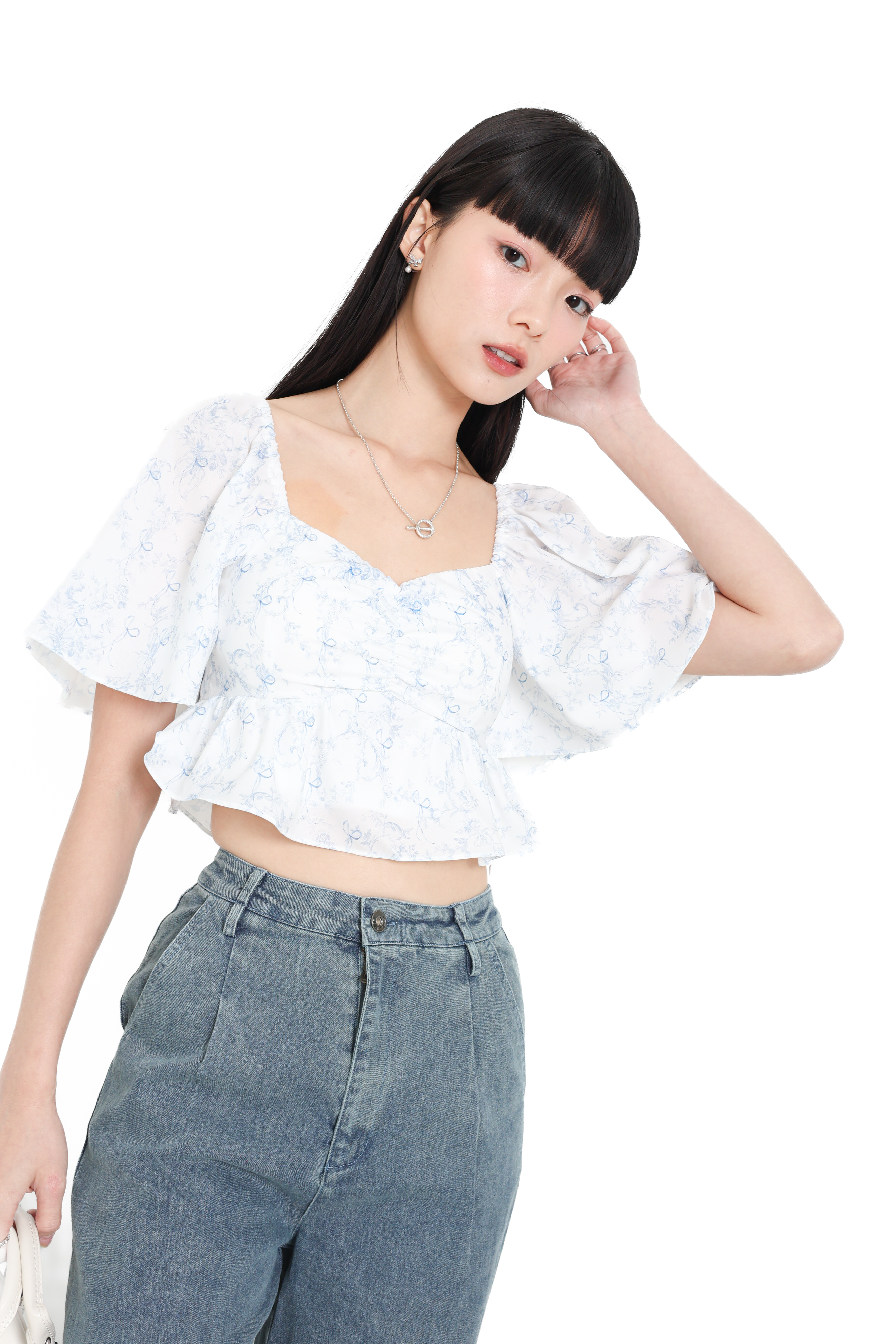 *TPZ* BLAIR FLUTTER SLEEVES TOP IN TOILE DE FORTUNE FROSTED BLUE